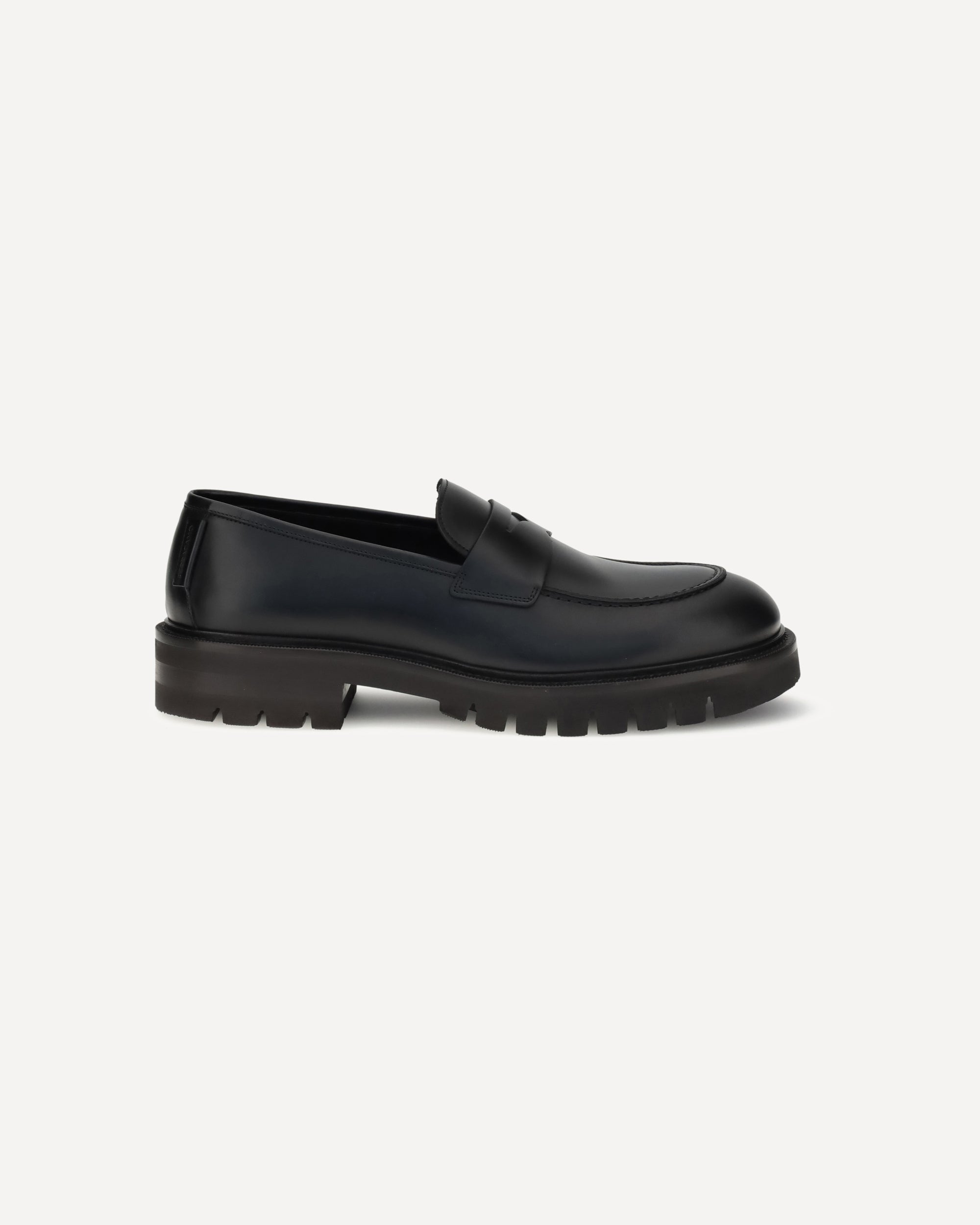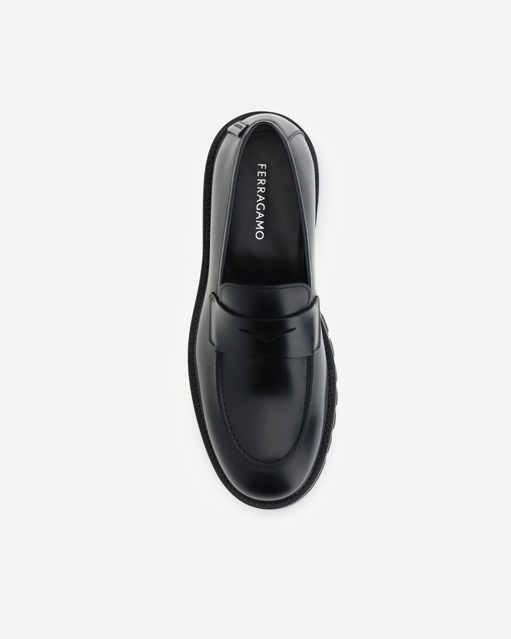 Ferragamo's Penny Loafers reinterpret a classic with a contemporary twist. Featuring a slightly rounded toe and a brushed calfskin upper, they offer the perfect balance of elegance and comfort. Iconic details, such as the contoured ornament and embossed stitched tray, add sophistication to the design. The bold rubber sole with lug tread lends ruggedness and a modern allure, ideal for bold, sophisticated style.