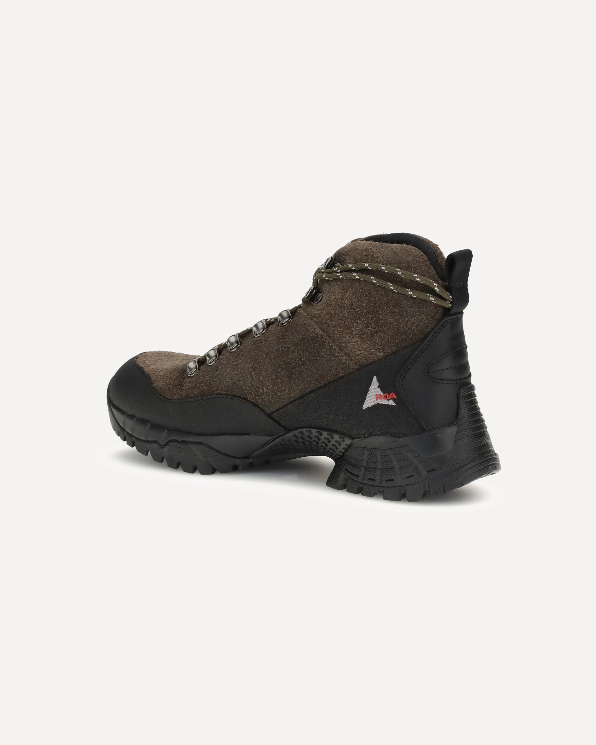 ROA's Andreas Boots combine outdoor aesthetics and technical performance. Equipped with a Vibram® Megagrip sole with notched Vybrid tread, they offer excellent grip on slippery and uneven surfaces. The untreated kudu leather upper is water-repellent, while the padded high collar ensures comfort and support. The rugged lacing system ensures a stable and secure fit, ideal for tackling any terrain with style and functionality.