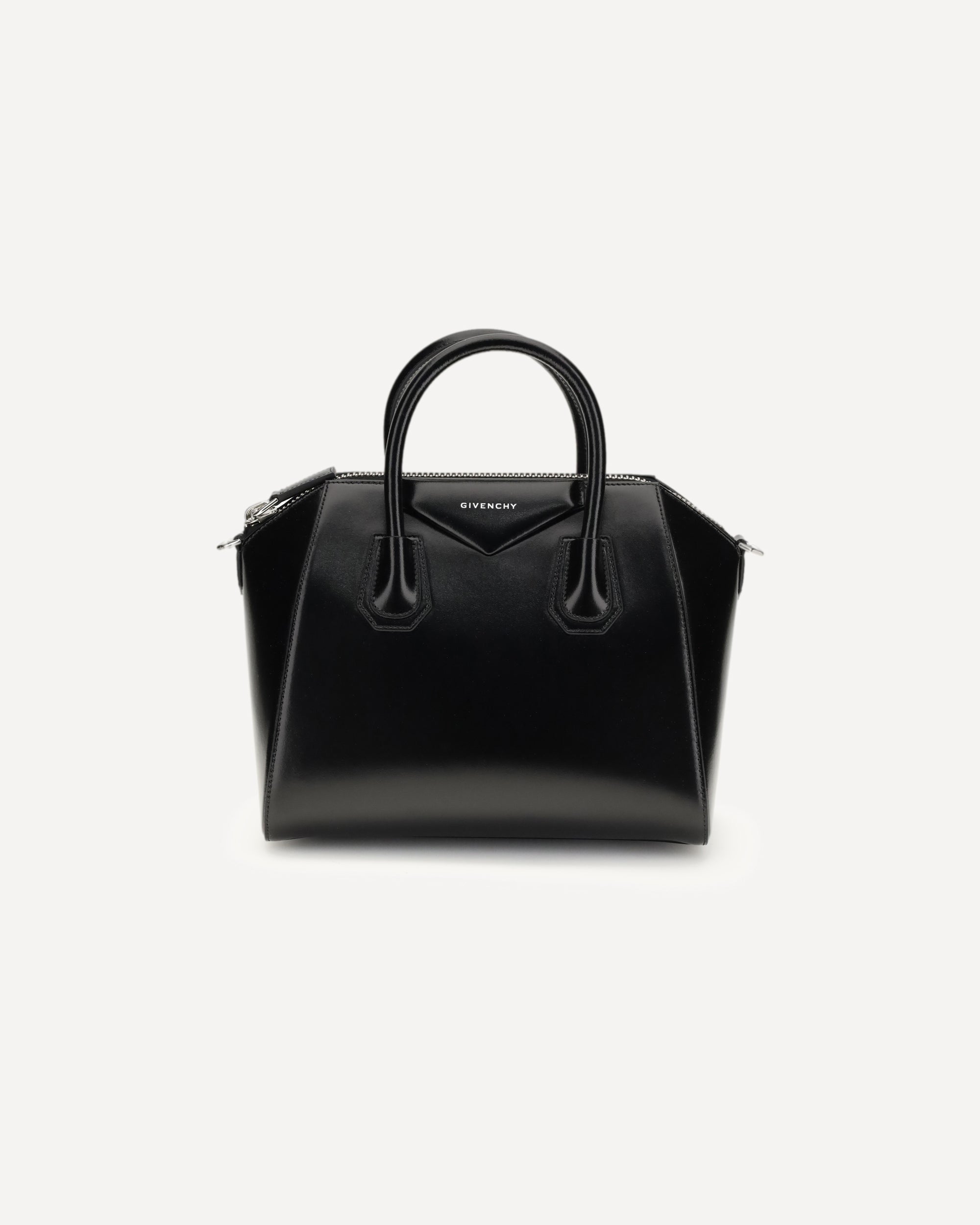 The Antigona small leather Box Handbag by Givenchy is a refined and versatile accessory made of fine Box calfskin. The zippered closure provides security and practicality, while the adjustable and removable leather shoulder strap offers the option of wearing it by hand or on the shoulder. The distinctive detail is the pentagonal applique with the GIVENCHY signature embossed in gold, which lends an elegant touch. Metallic details in a gold finish add an extra touch of luxury. Inside, a large main compartment, two flat pockets and a zippered pocket provide space and organization, making this bag not only stylish but also functional.