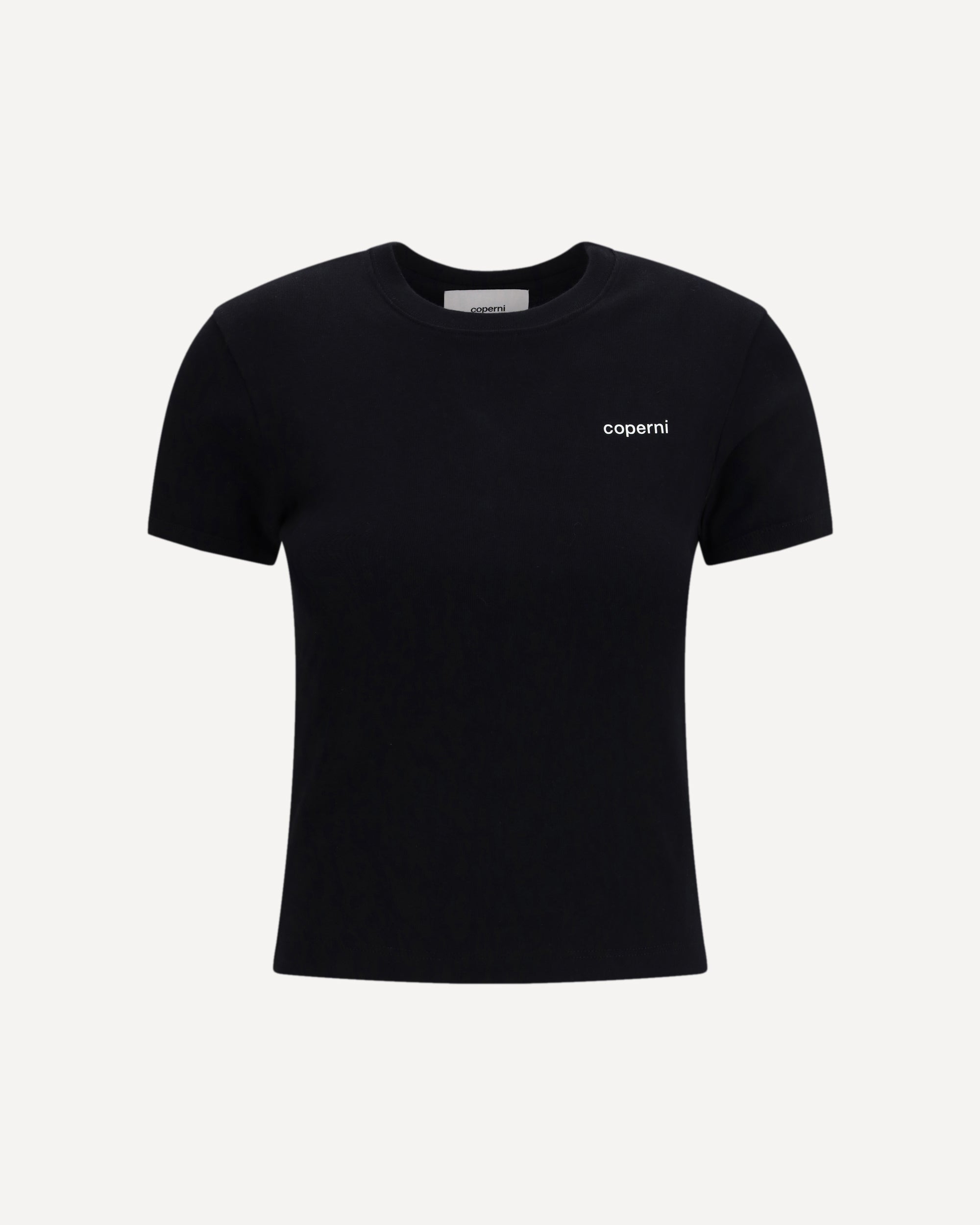 The Baby Tee by Coperni is crafted from soft cotton jersey and features a slim fit with a cropped hem that shapes a clean, contemporary silhouette. The design showcases a simple round neckline, subtly dropped shoulders, and short sleeves, while the chest logo print adds a distinctive graphic touch. A minimal, modern staple ideal for everyday styling.
