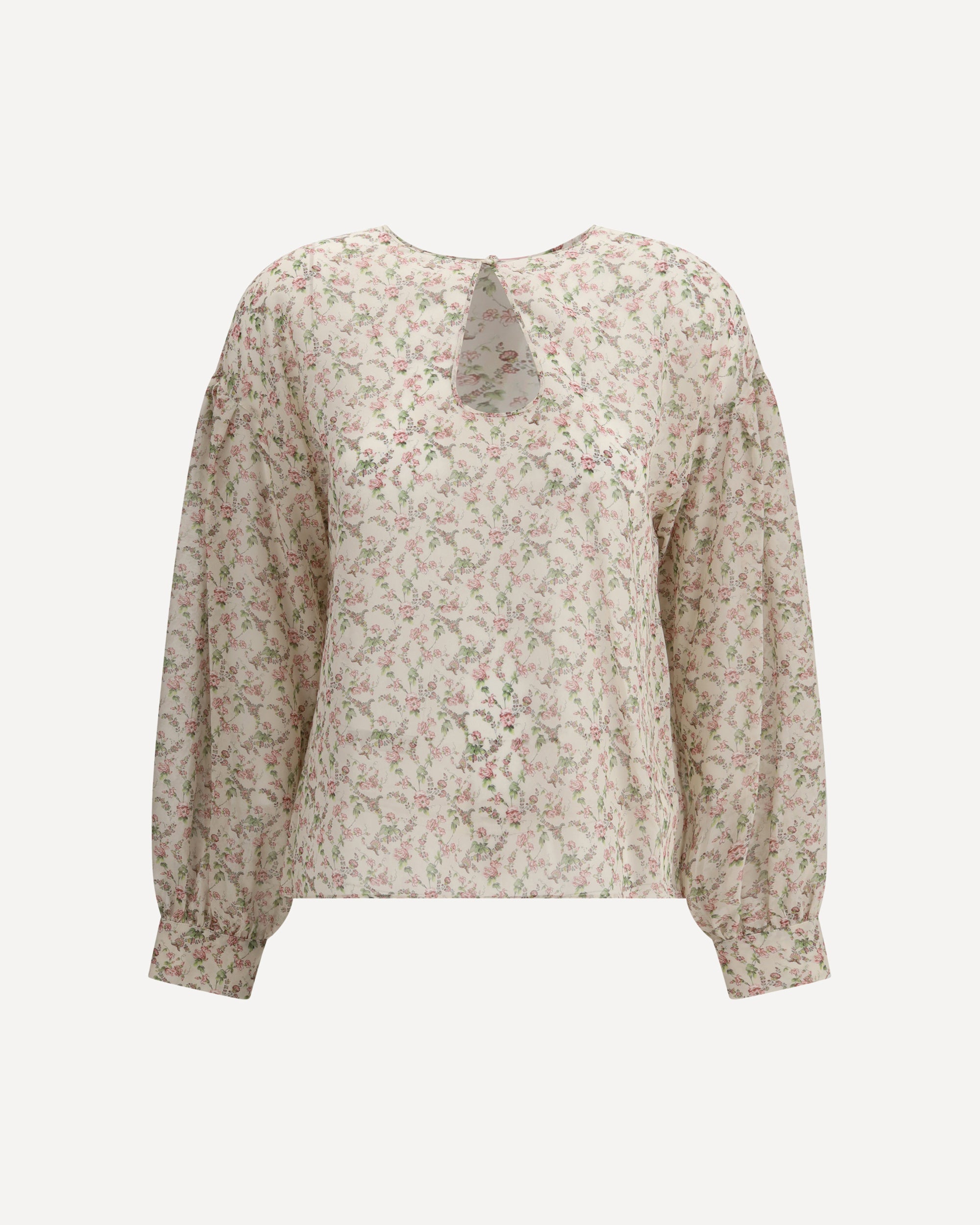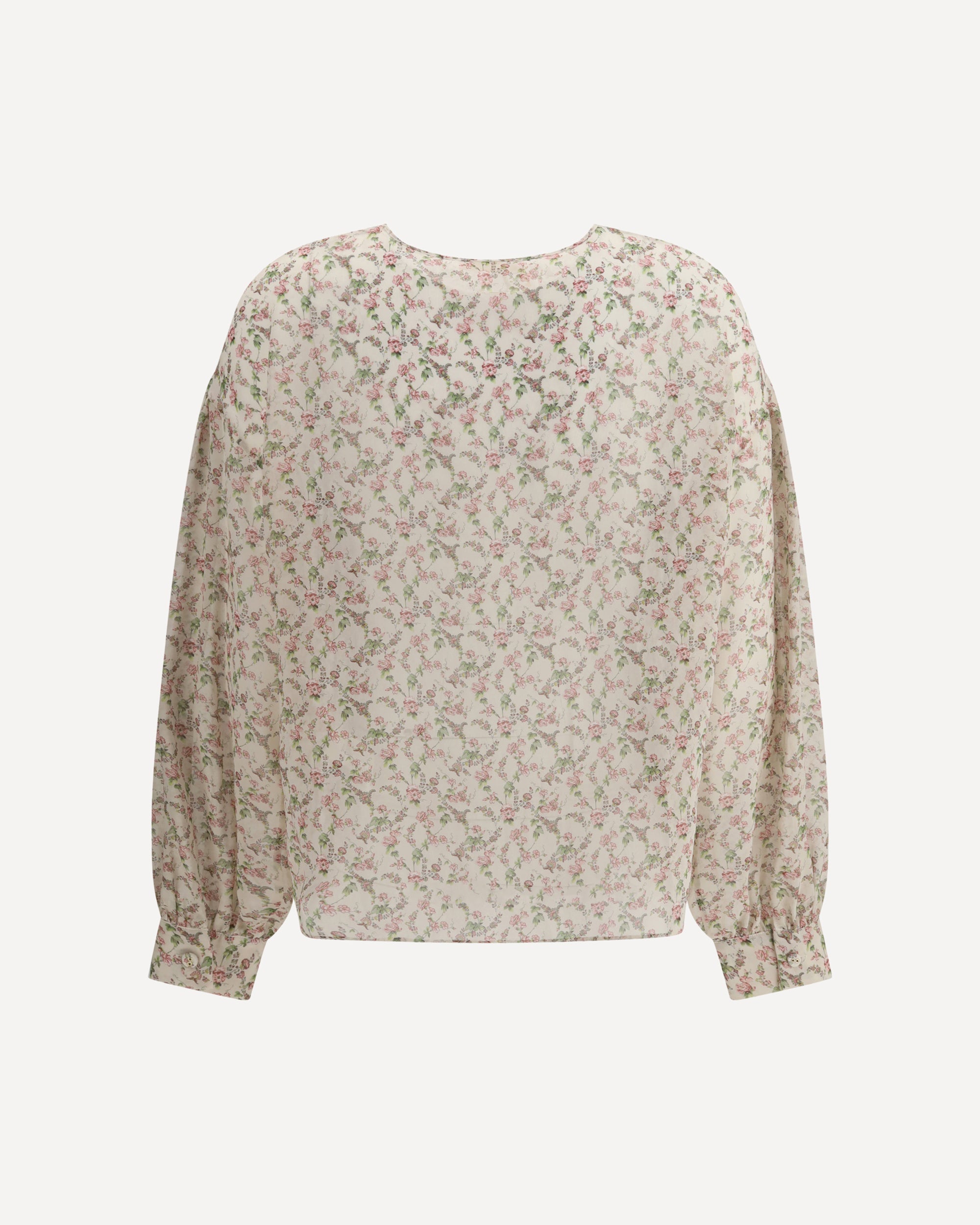 Kristina Ti's silk blouse expresses delicate femininity through a refined floral print. The wide sleeves lend lightness to the design, while the button closure at the neck adds a discreet and sophisticated detail.