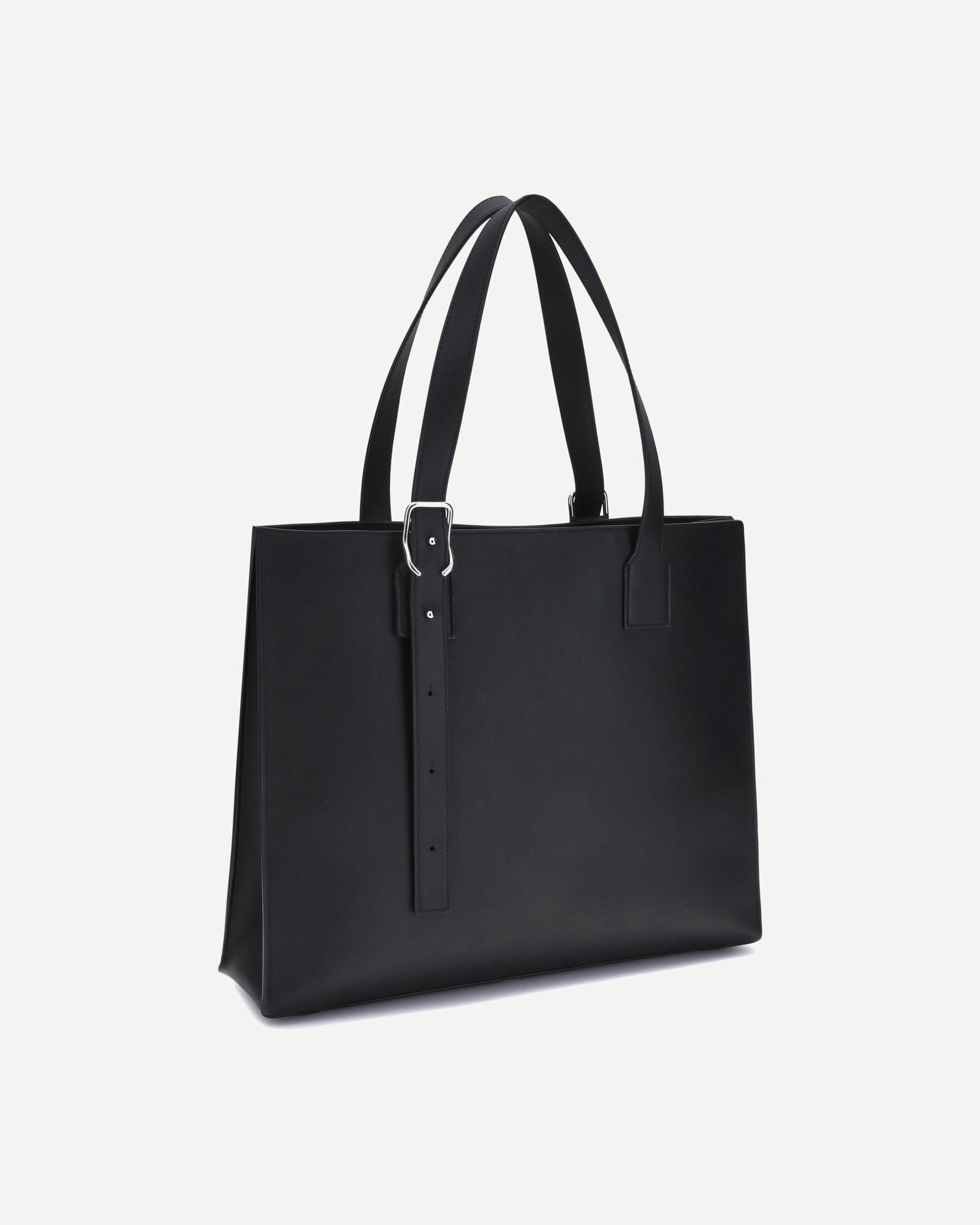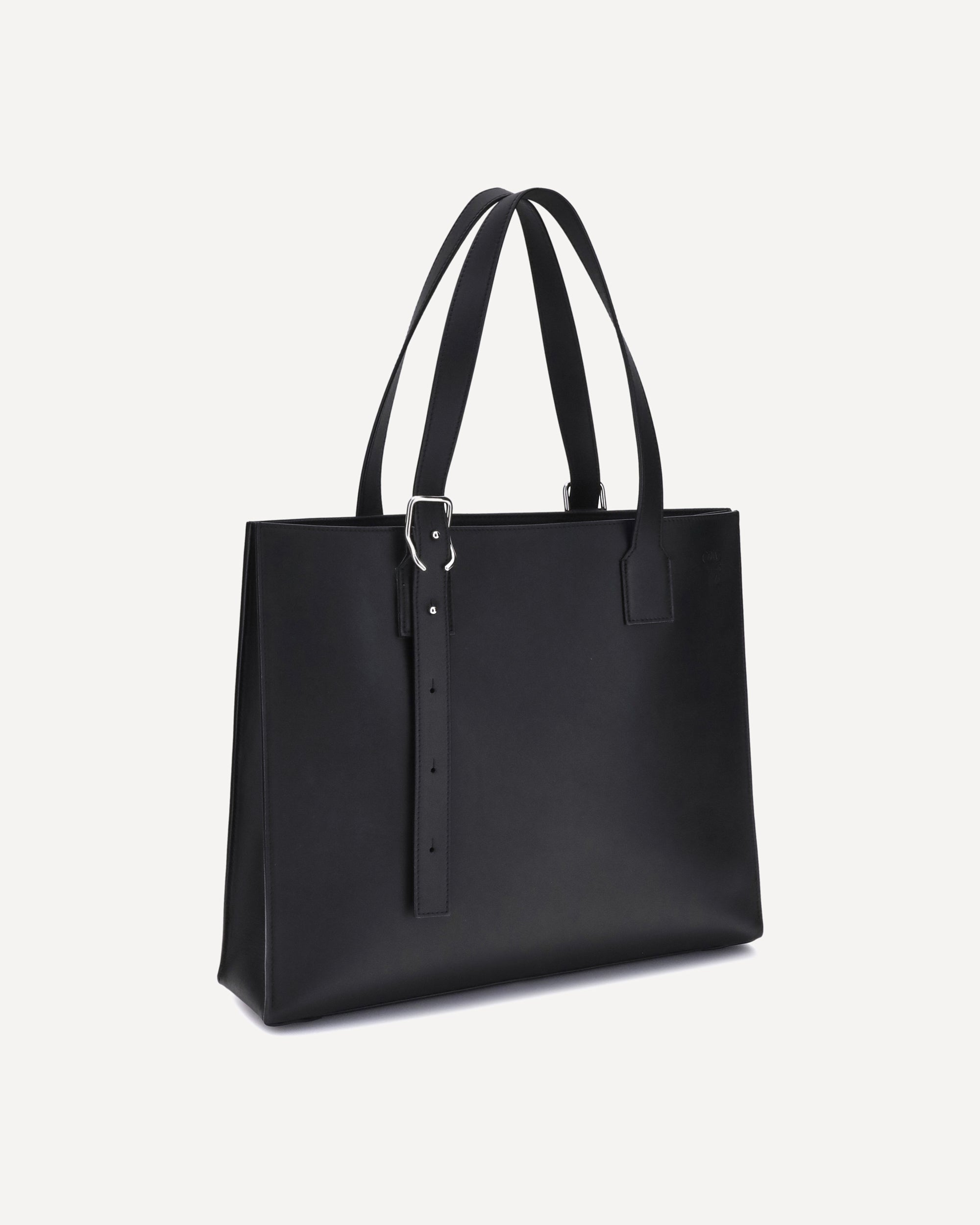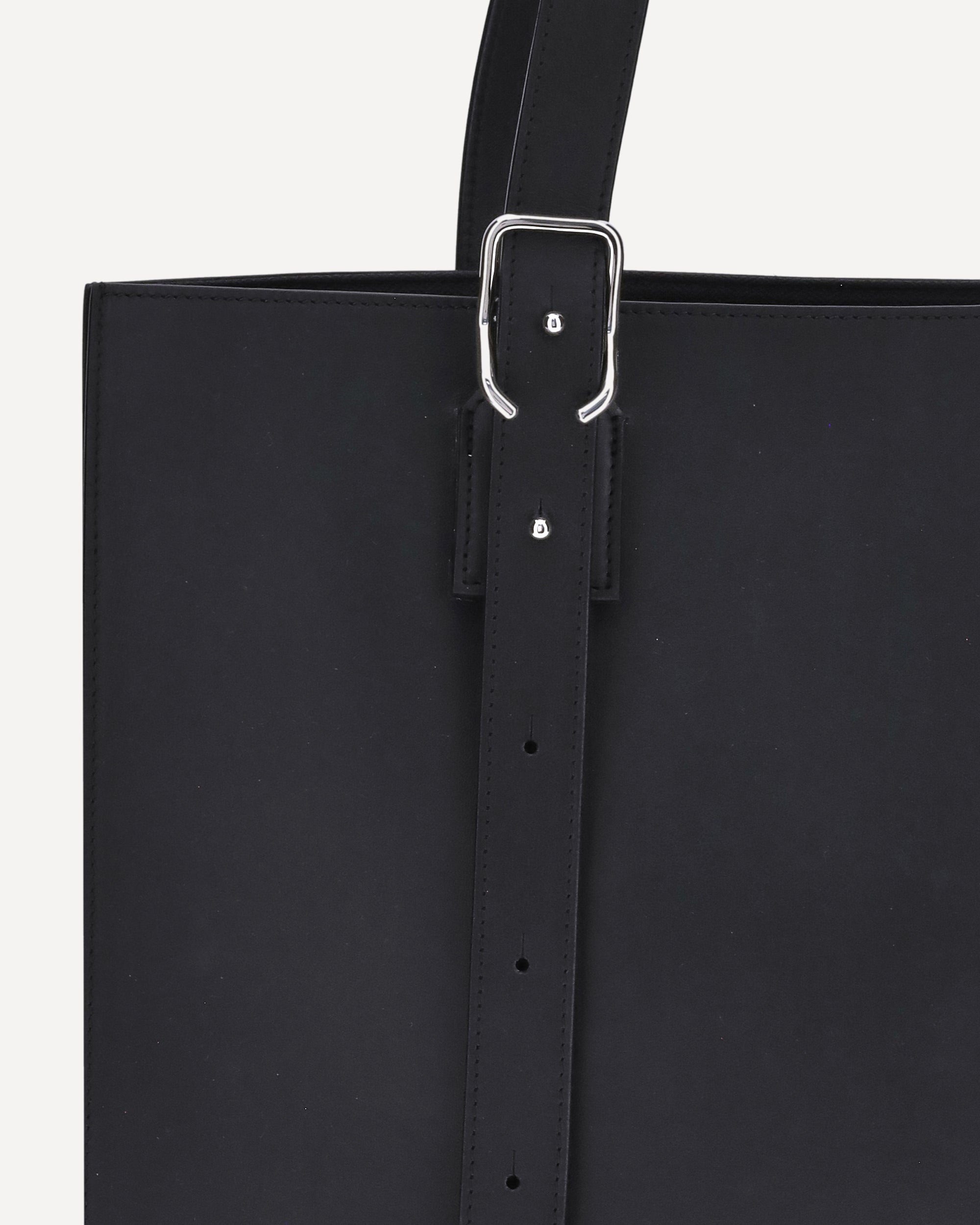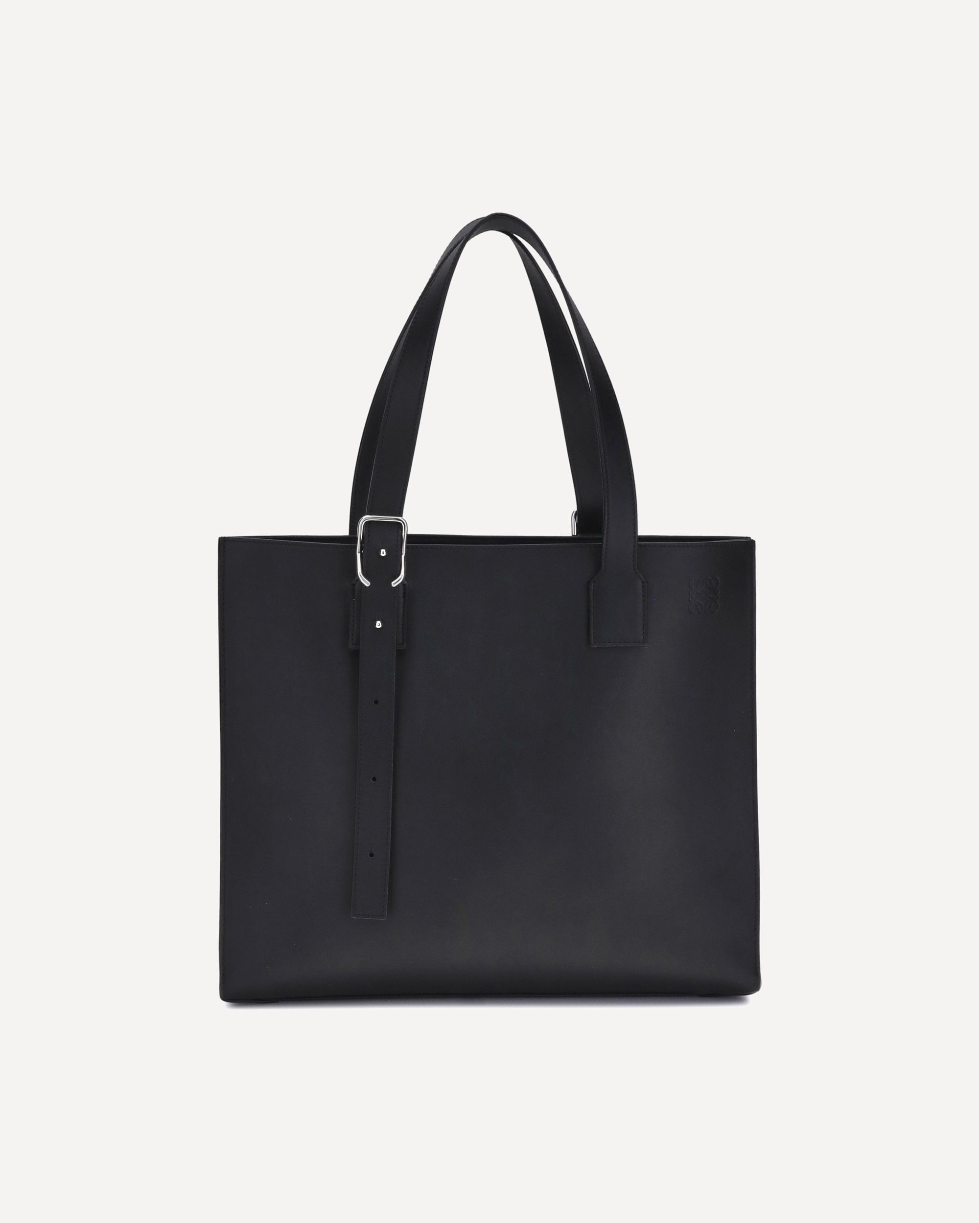 The Loewe Buckle Horizontal Tote Bag is a slim and elegant proposal, designed for refined everyday use. Characterized by asymmetric top handles with buckles, from which it takes its name, it is suitable for holding a 13-inch laptop. It can be carried by hand or over the shoulder thanks to the adjustable handles. Equipped with a magnetic closure with a leather tab, it includes an internal zip pocket and a herringbone cotton canvas lining. The Anagram motif embossed on one side completes the design with an iconic touch.
