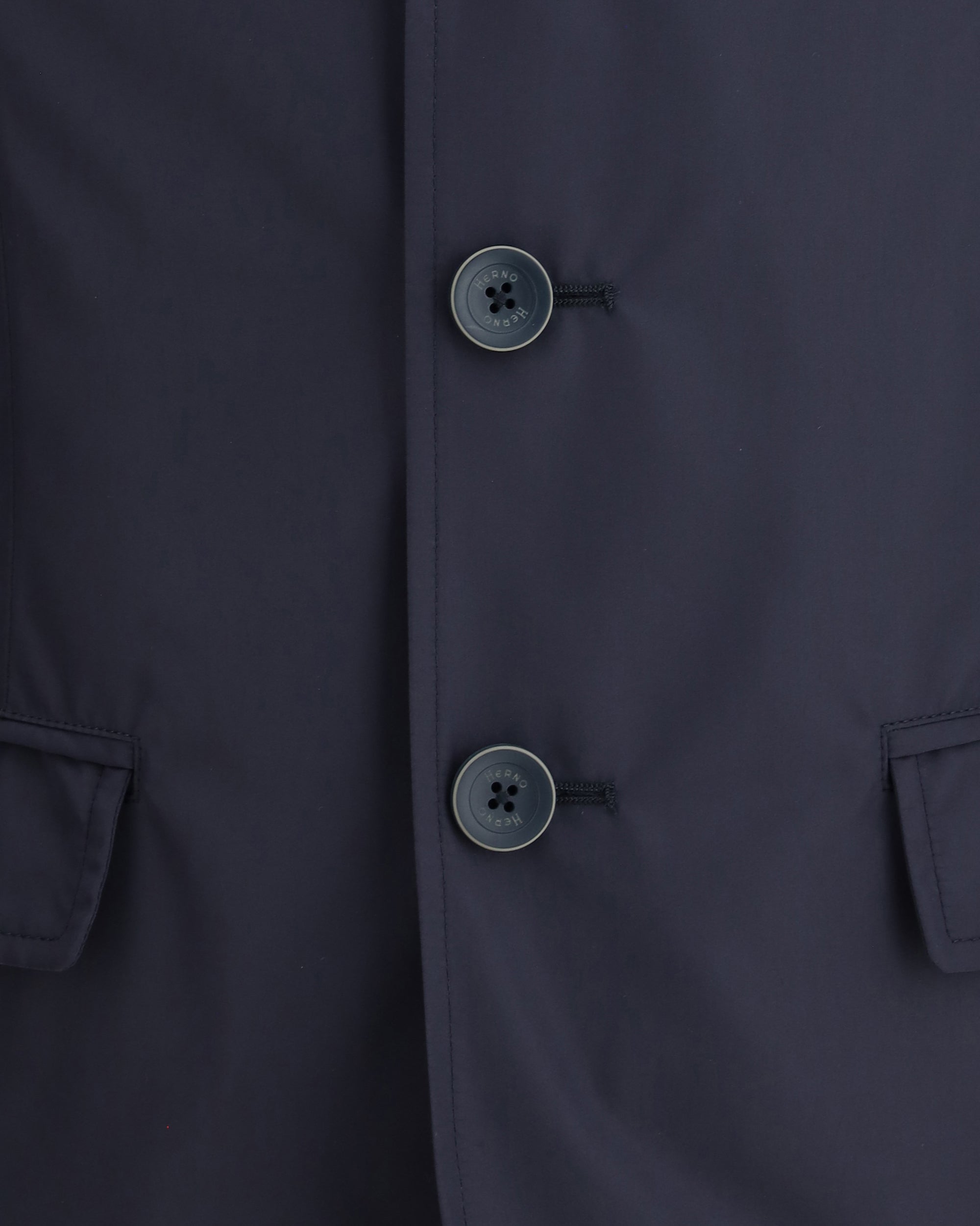 Herno's Byron Waterproof Blazer is an elegant and practical garment that combines style and functionality. The classic lapels and front button closure lend a sophisticated design, while the double zipper closure adds an element of modernity and practicality. The two front welt flap pockets complete the look, offering both functionality and a touch of sophistication. This blazer is perfect for those seeking a versatile garment that offers protection from the elements without sacrificing contemporary elegance.
