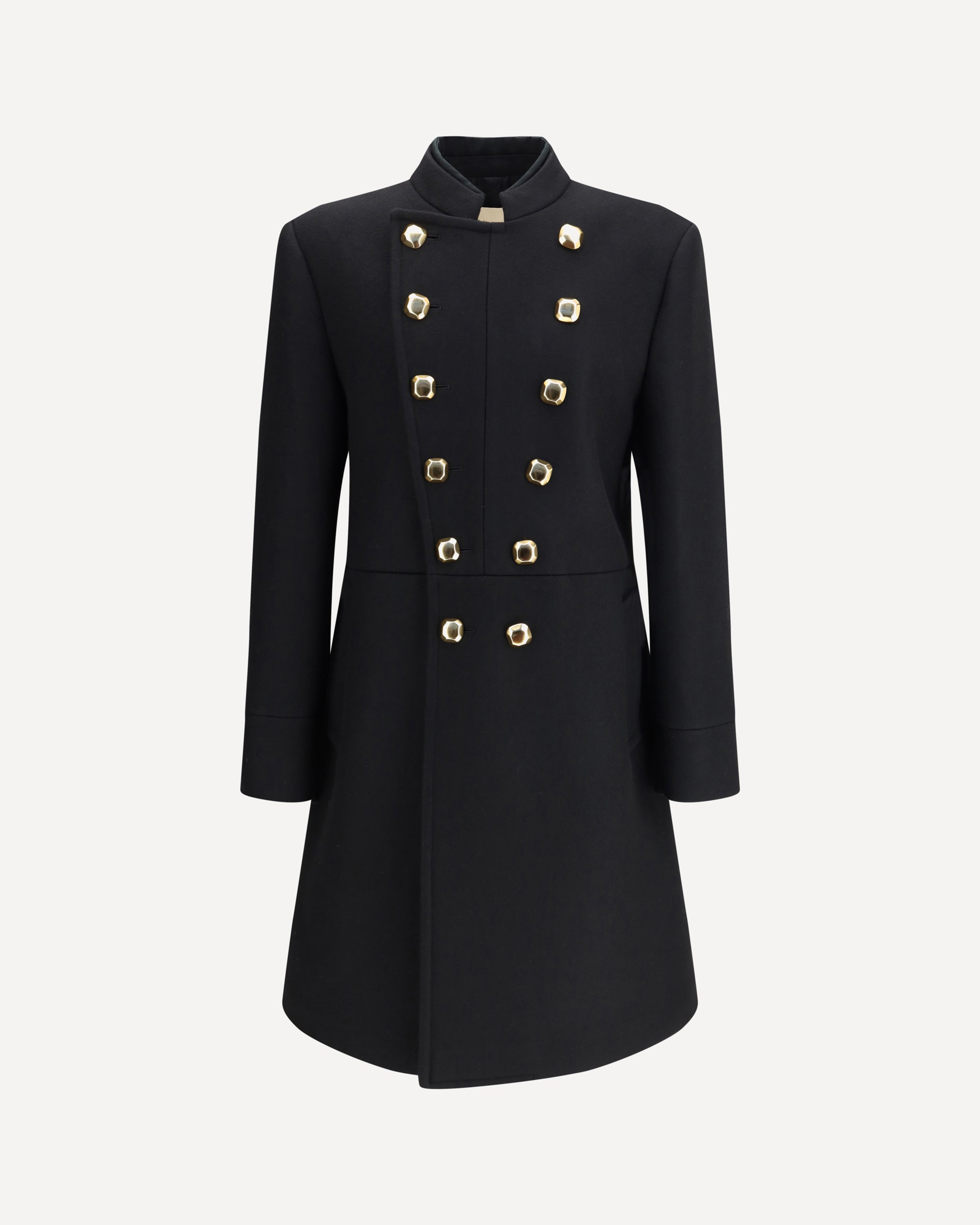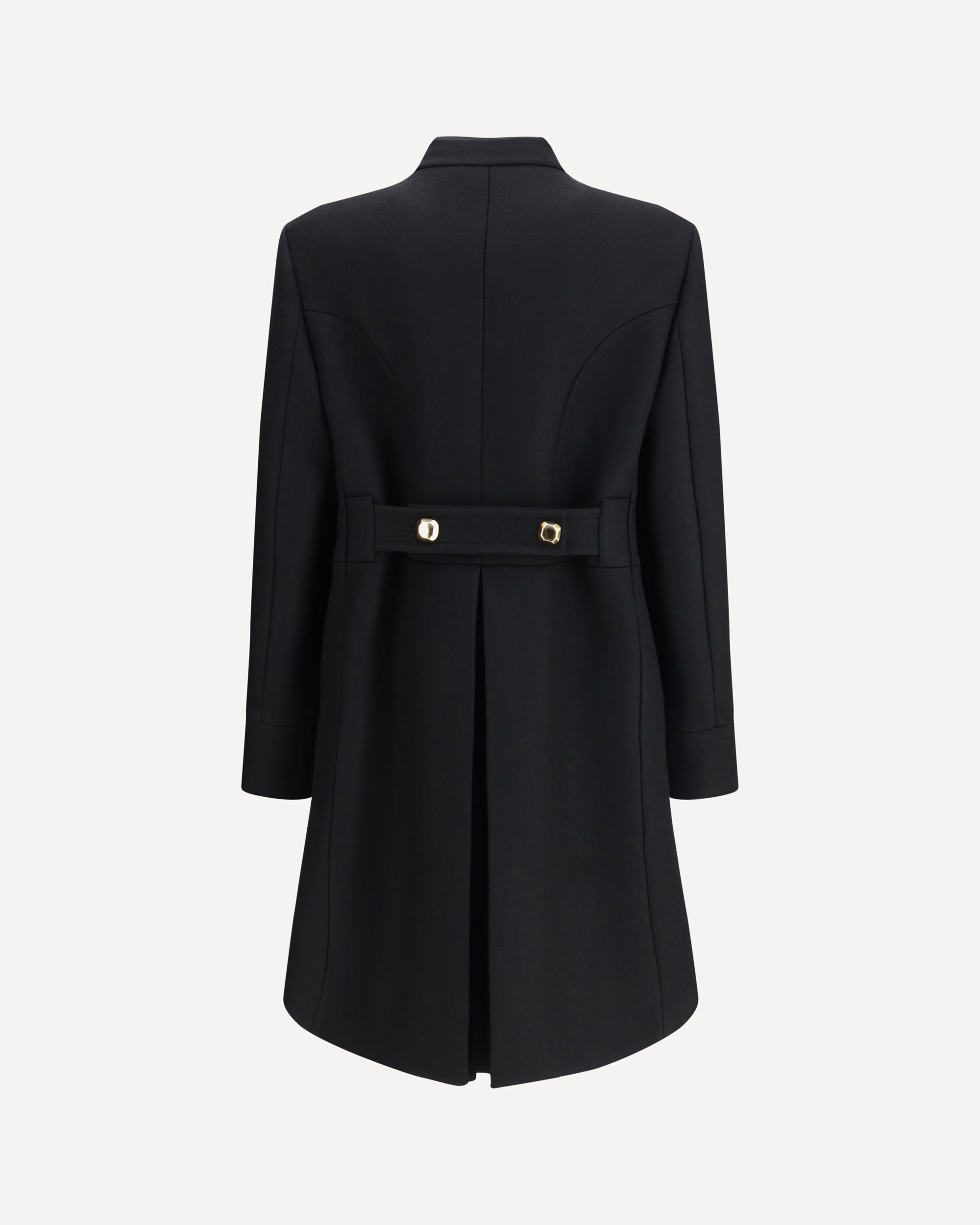 The double-breasted wool double Coat by Valentino captures the house’s timeless elegance. Crafted from fine double wool, it features a regular fit and a fully lined construction for comfort and sophistication. The design is completed by a Mandarin collar, double-breasted front, and two side pockets. A refined piece that embodies minimalist design and impeccable tailoring.