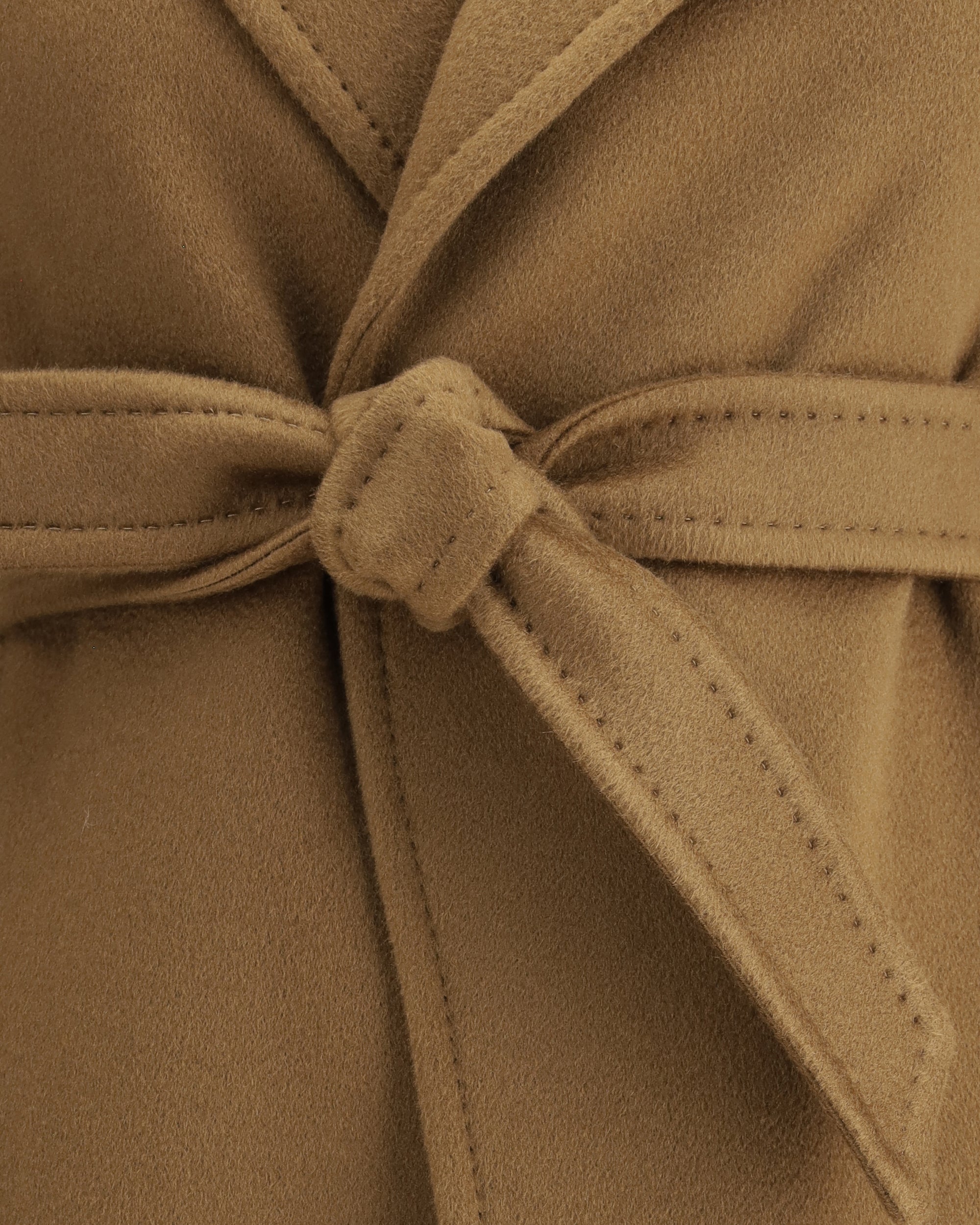 Max Mara's Melinda Coat is a luxurious garment made from soft cashmere that provides warmth and comfort without compromising style. The peaked lapels add a note of classic elegance, while the two side welt pockets offer functionality with discretion. The matching sash, which can be tied at the waist, emphasizes the silhouette and allows you to adjust the fit. A sophisticated coat, perfect for those seeking a refined and timeless look, ideal for formal occasions or to complete an everyday outfit with class.