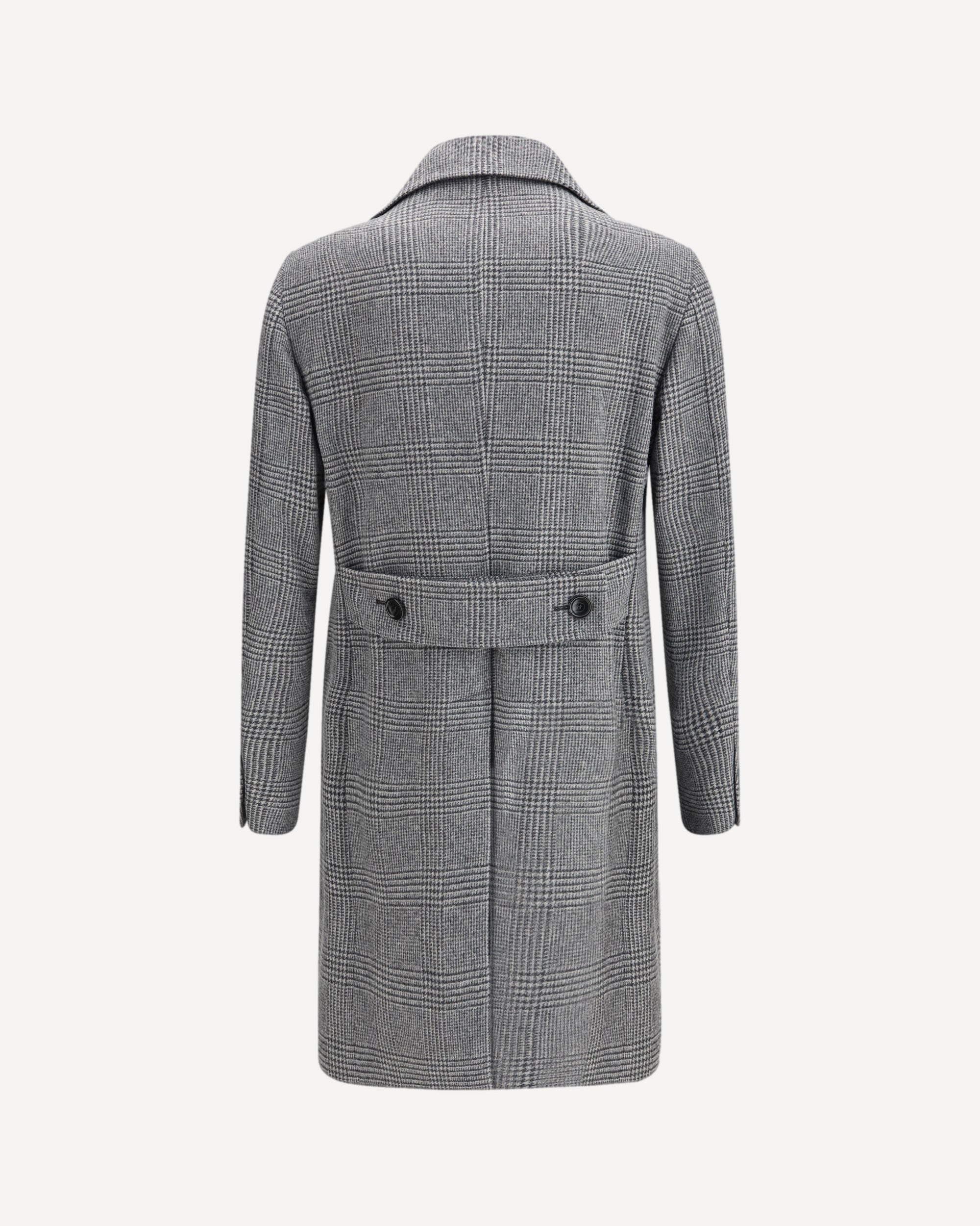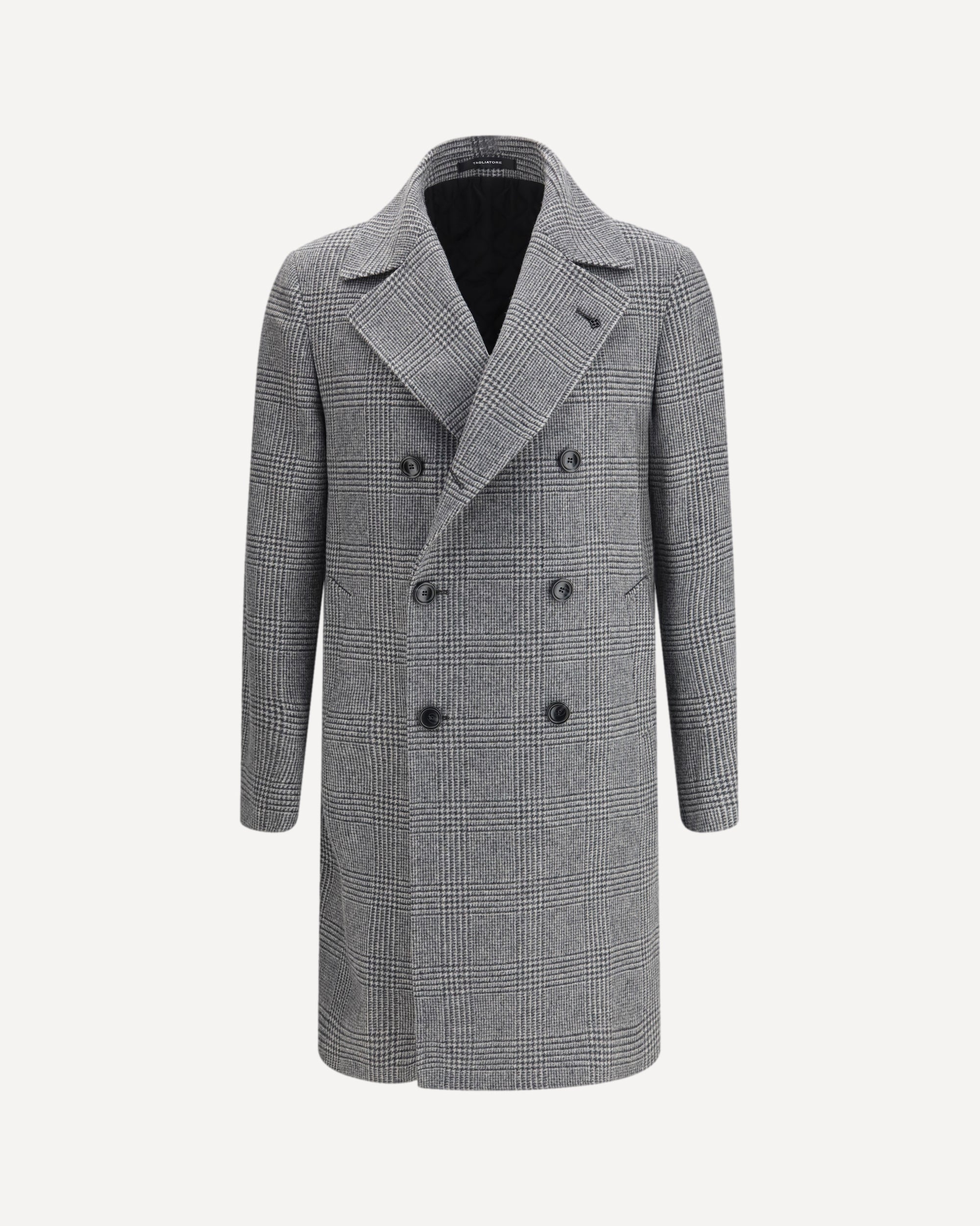 The Prince of Wales print Coat by Tagliatore is a timeless classic, featuring a wide lapel and double-breasted button closure that enhance its elegant character. The mid-length makes it versatile for a variety of occasions, while the two side welt pockets and back mantega add functional and refined details. The iconic pin on the lapel completes the look with a distinctive touch, a sign of a unique and sophisticated style.
