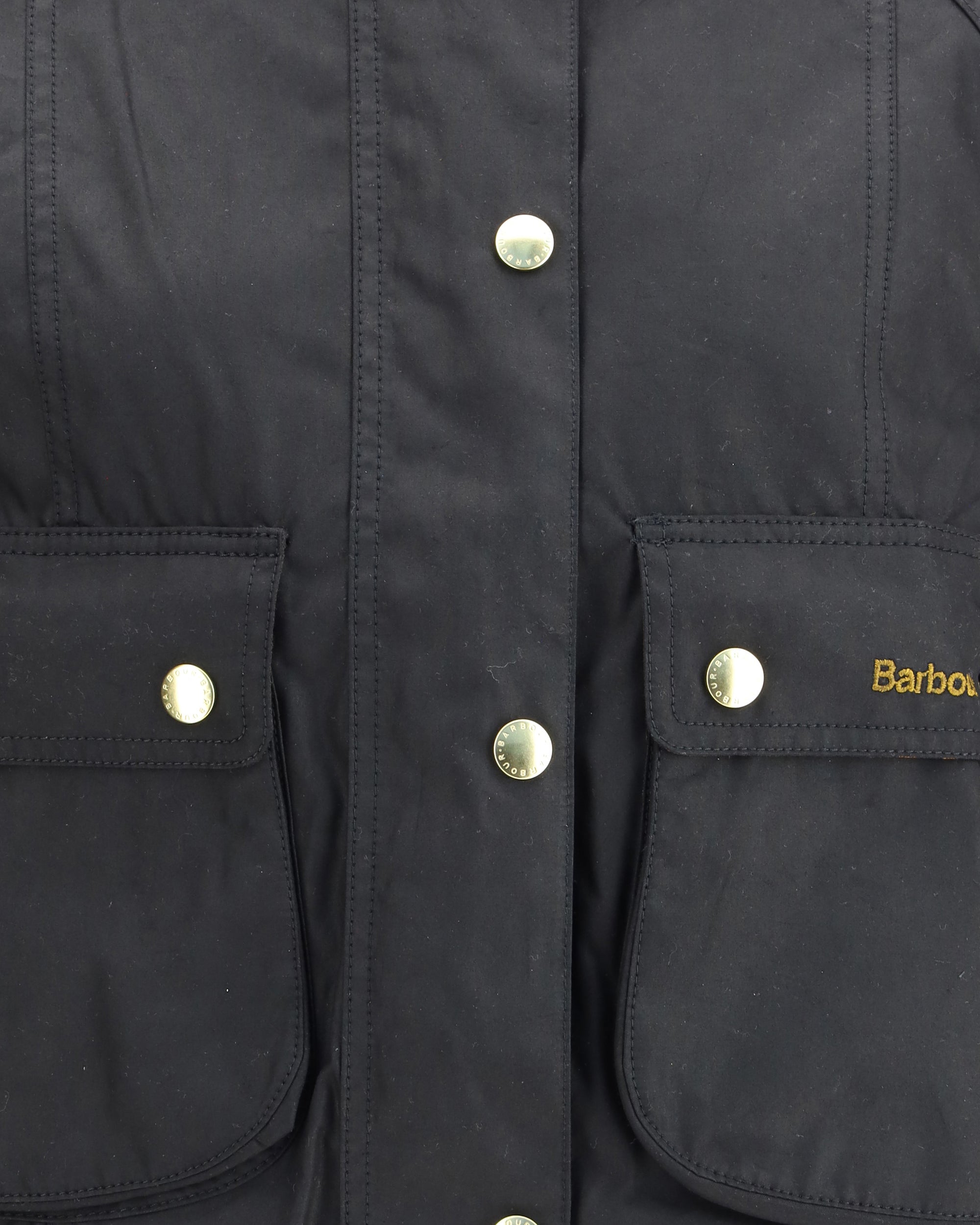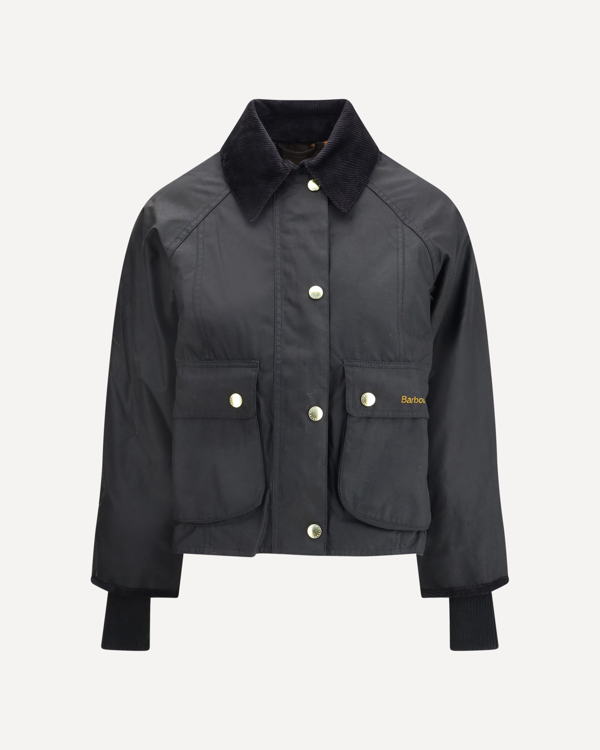 The Beadnell Waxed Jacket is reimagined with a modern take on the cropped fit, designed by Barbour to create a new, contemporary outerwear piece. It retains the iconic elements of the original—such as the signature pouch pockets and finely ribbed collar—but reinterprets them in an oversized format. Featuring large gold logo snaps and maxi elasticated cuffs, it blends tradition and modernity in a bold and versatile design.