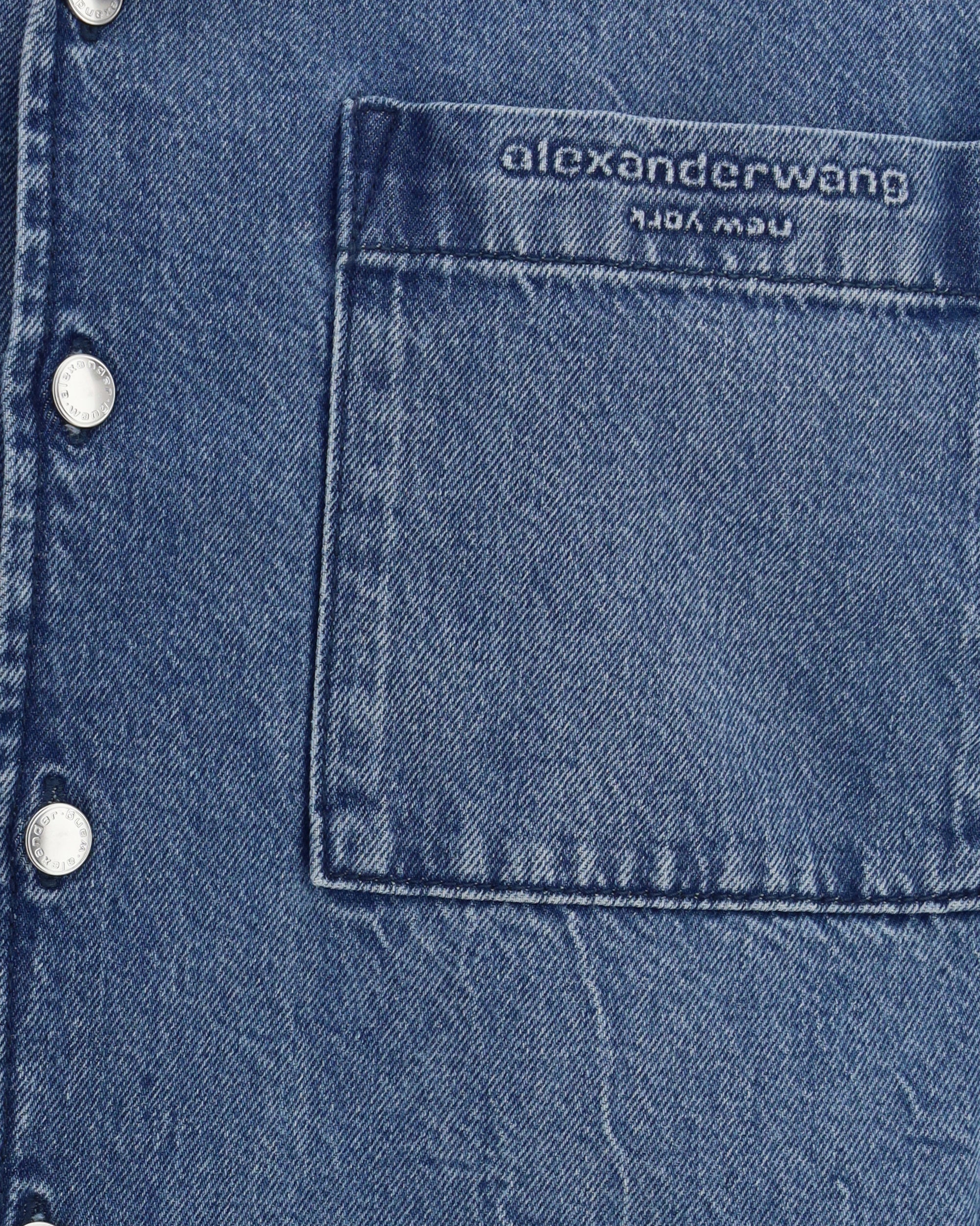 The cropped denim Shirt by Alexander Wang features an essential, shortened silhouette shaped with the brand’s signature urban attitude. The classic collar introduces structure, balanced by dropped shoulders for a relaxed feel. Two front pockets – one enhanced with embroidered branding – define the front, finished with logo-detailed button fastening. A piece that merges casual ease with sharp construction.