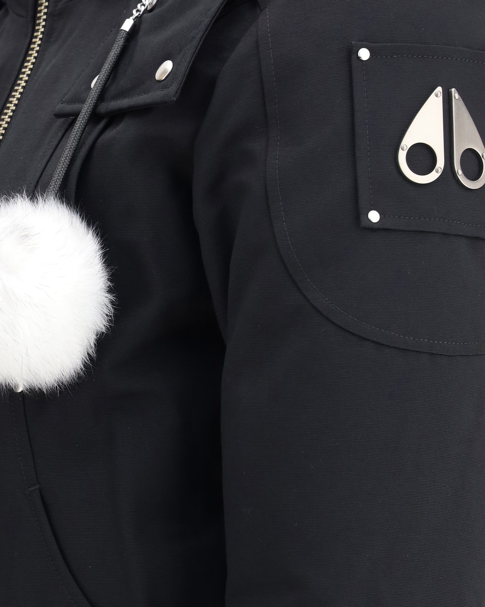 The Debbie Bomber Jacket by Moose Knuckles is a brand icon that blends high protection with a sleek, city-ready silhouette. Crafted from a durable water-repellent shell and insulated with 90/10 down for warmth and comfort, it features an adjustable shearling-lined hood with removable trim and playful pom poms. The design includes a down-filled collar, front zip closure, two welt pockets, and two slit pockets, while the signature metal logo adds a refined finishing touch.