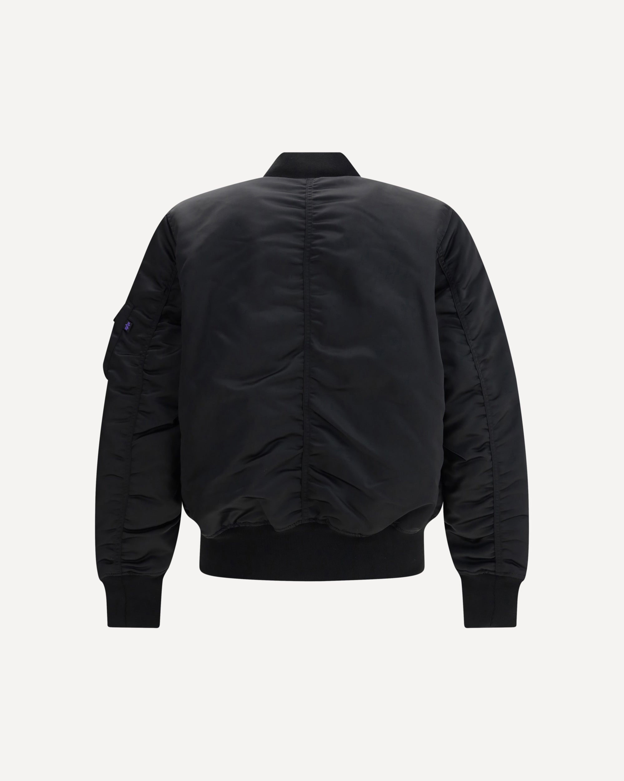 The MA-1 3M Flight Jacket by Alpha Industries reworks classic military silhouettes with modern design updates and premium materials. Part of the RECN line, it pays homage to the functionality and durability of the iconic original while integrating precision construction, advanced textiles, and luxury finishes. Insulated with 3M Thinsulate padding for lightweight warmth, it features a UV flag label on the left sleeve, two inner and two outer pockets with magnetic closure, and a utility pocket with carabiner and “Remove Before Flight” tag. A wider wind flap with Alpha logo embroidery, puckered back seams, and anti-pilling cuffs refine the design. Fully reversible, it reveals a puffer lining for versatile, contemporary styling.