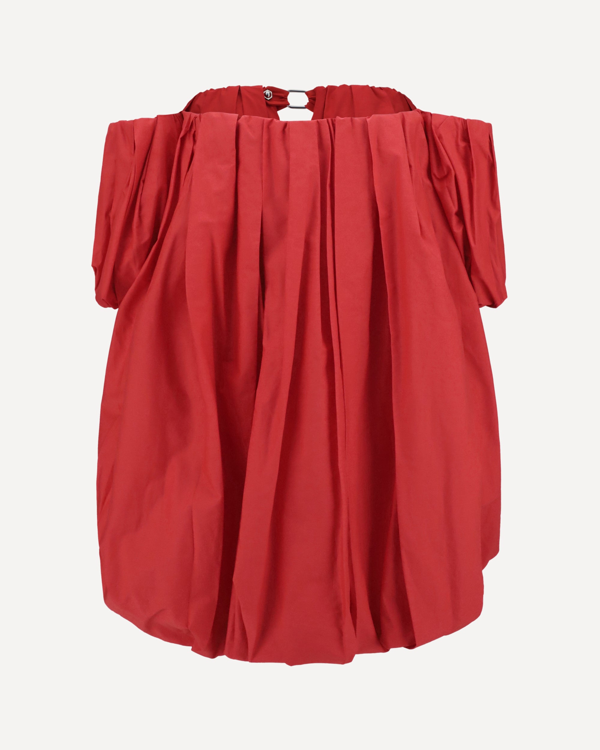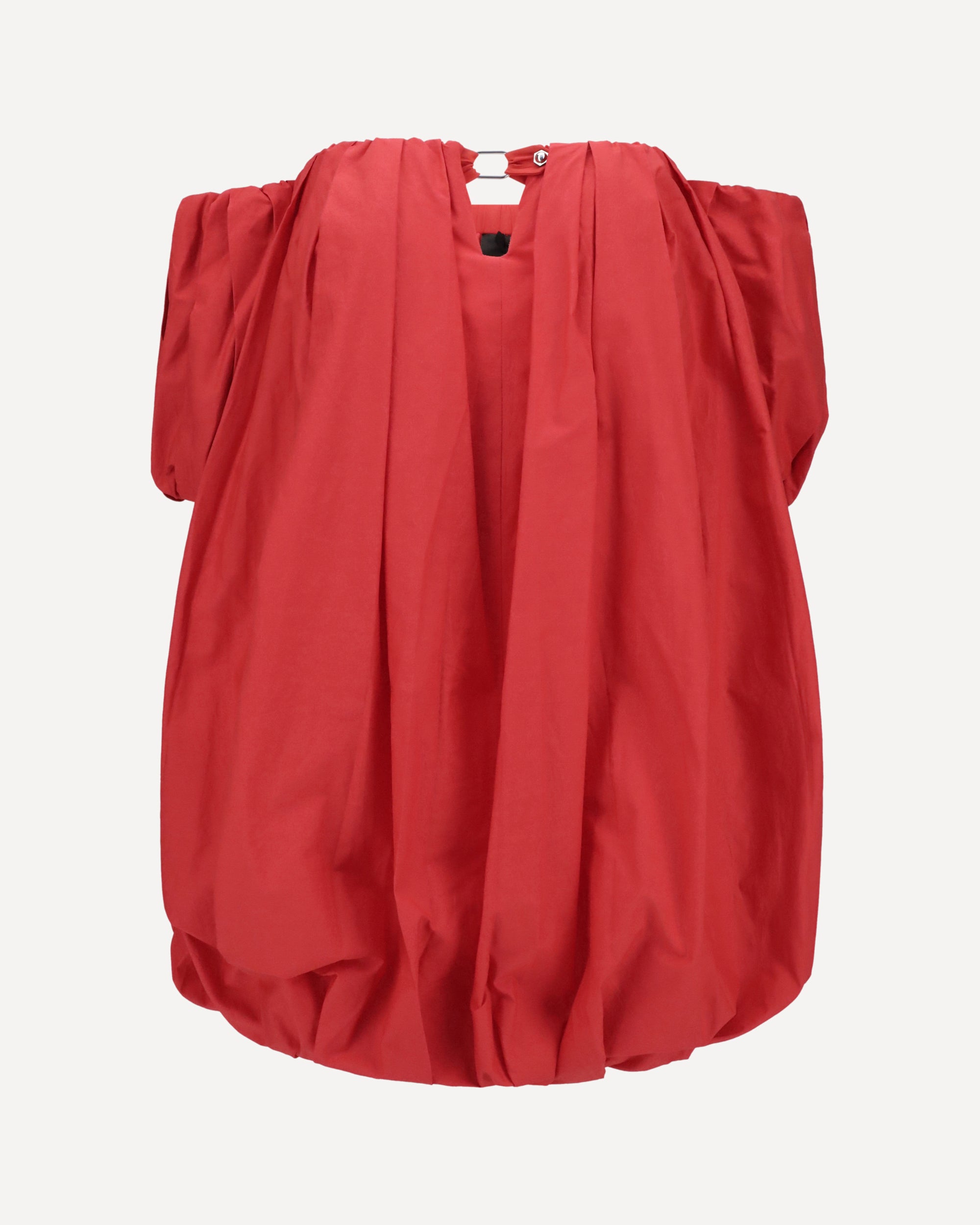 Pinko's short balloon Dress is a feminine and romantic garment designed to enhance the silhouette with a touch of originality. The design features exposed shoulders and short balloon sleeves that give volume and lightness to the upper part, while the sweetheart neckline enhances the décolleté with elegance. On the front, a decorative buckle adds a distinctive detail that catches the eye.