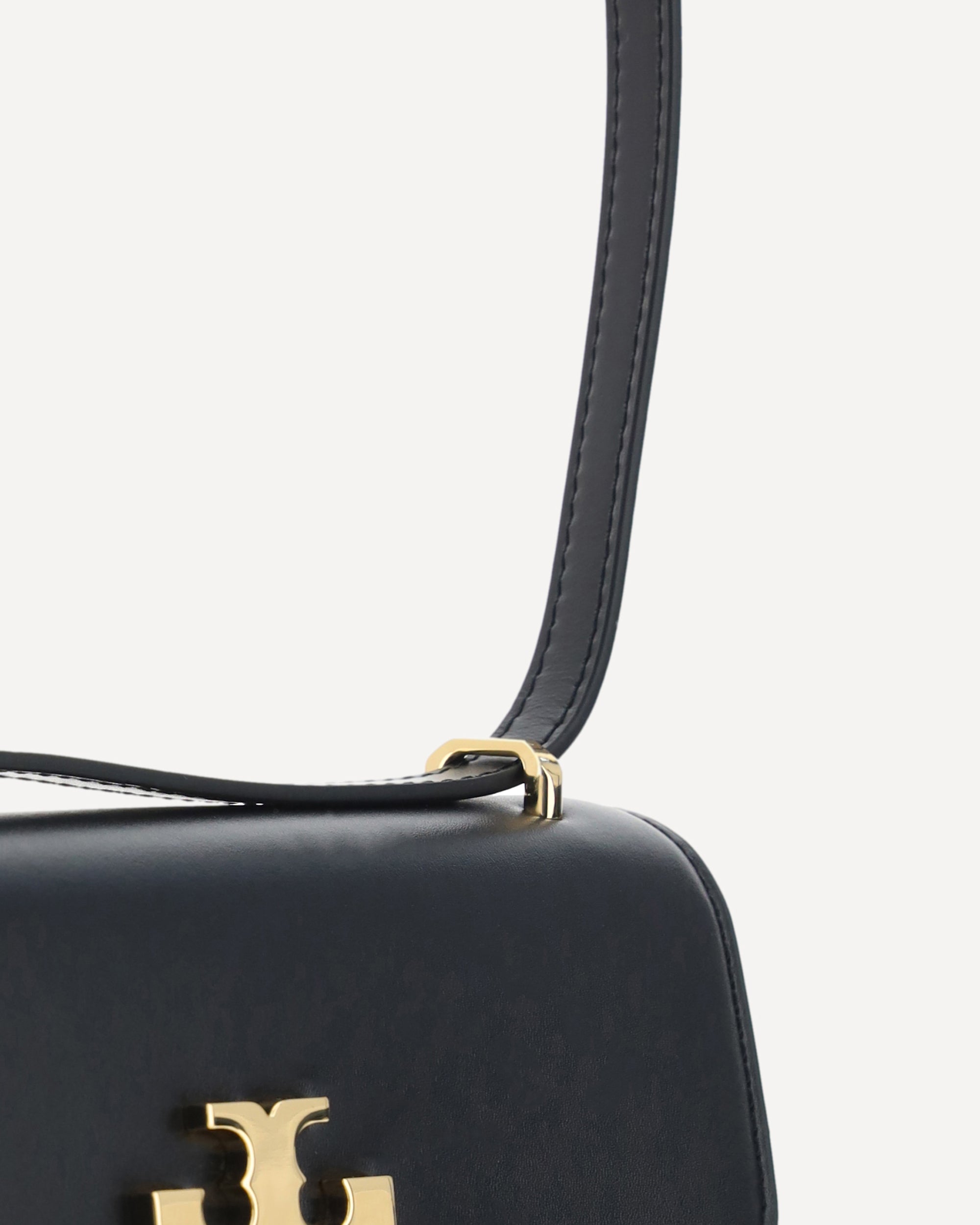 Tory Burch's Eleanor Small Shoulder Bag is crafted from high-quality leather and features the brand's iconic logo on the front, contrasted for a distinctive touch. The adjustable flat leather shoulder strap provides comfort and practicality. The magnetic opening on the front provides quick access, while the interior zippered slit pocket offers additional space for smaller items. The interior features single compartment, perfect for keeping personal belongings tidy in style. A stylish and functional accessory for any occasion.