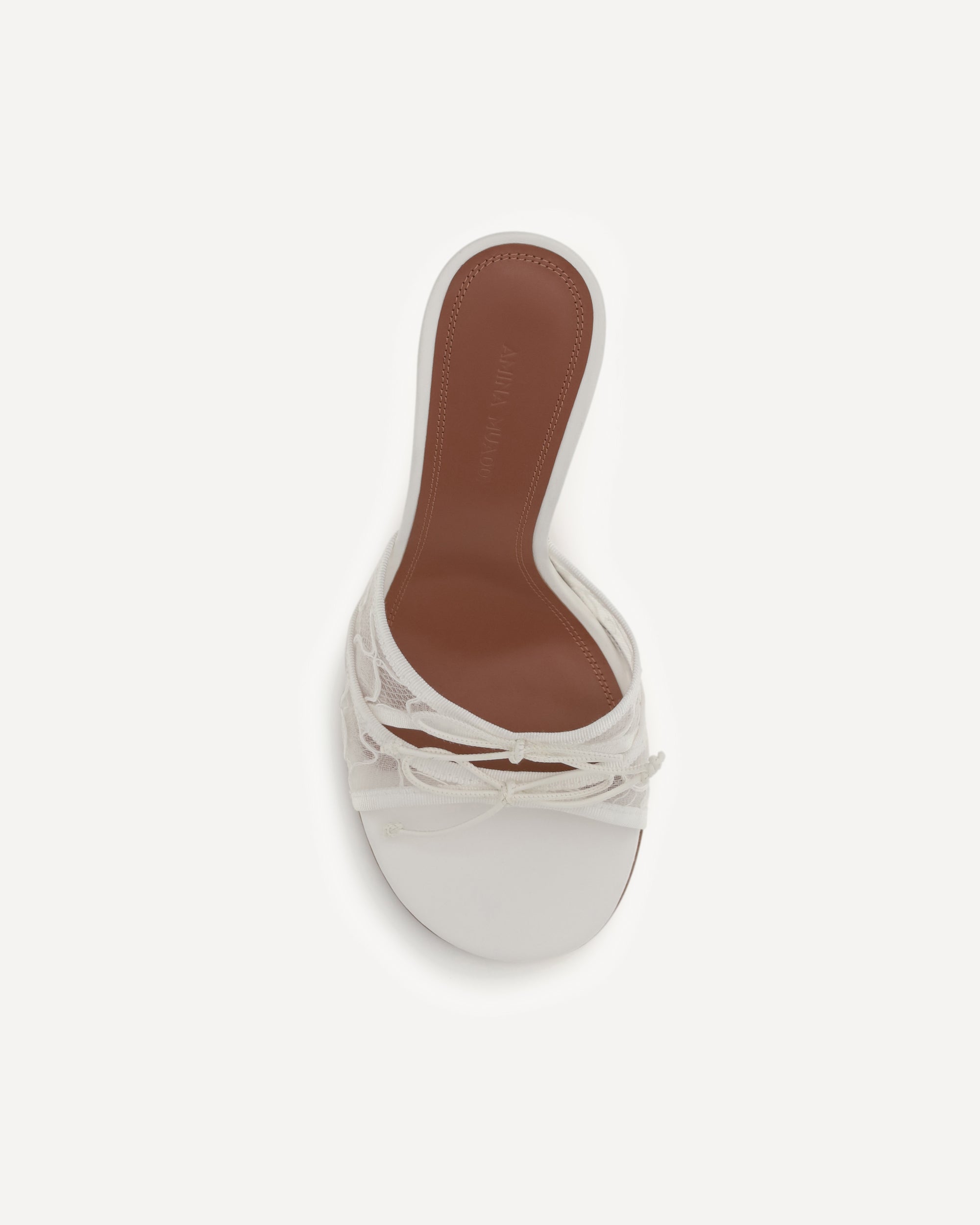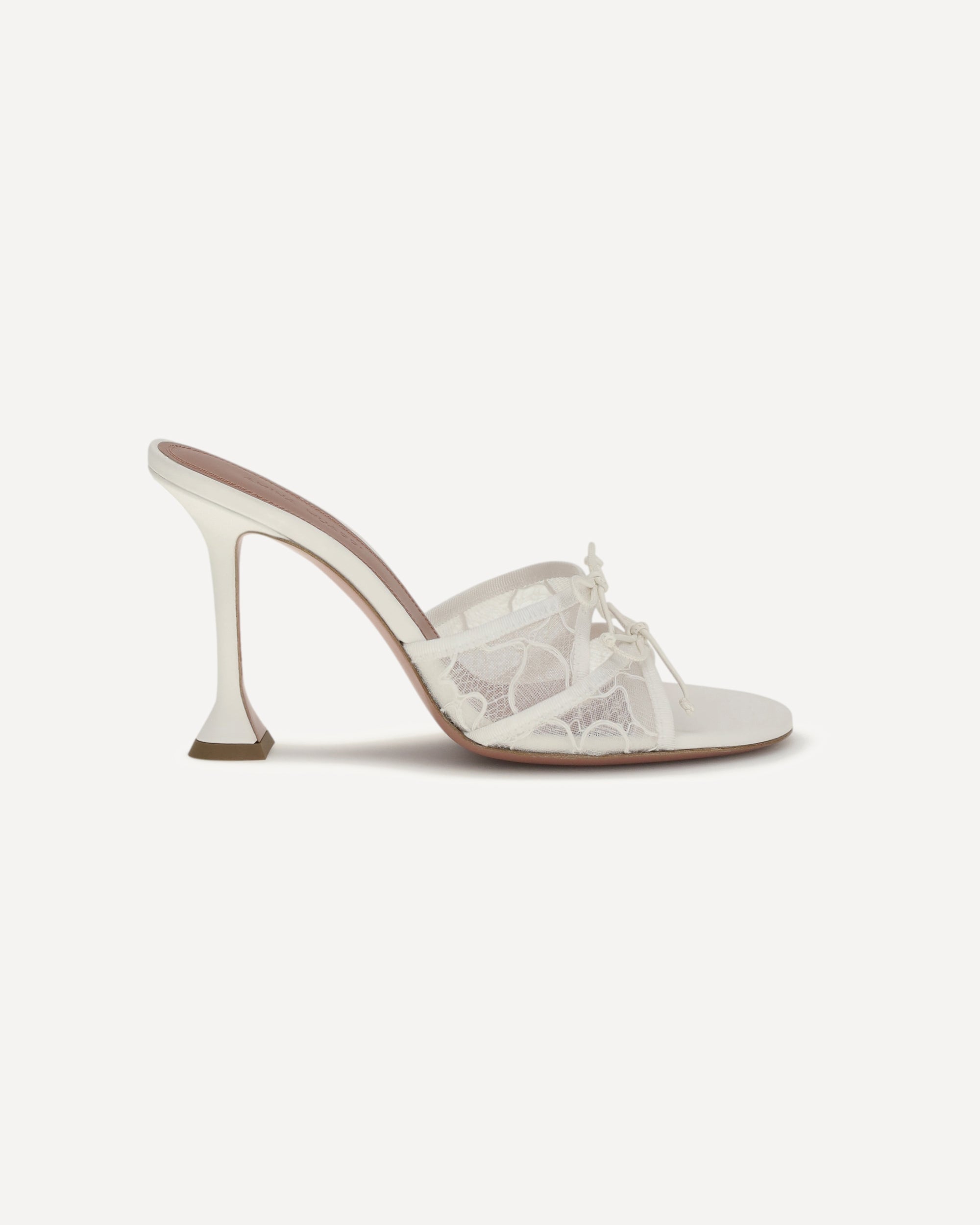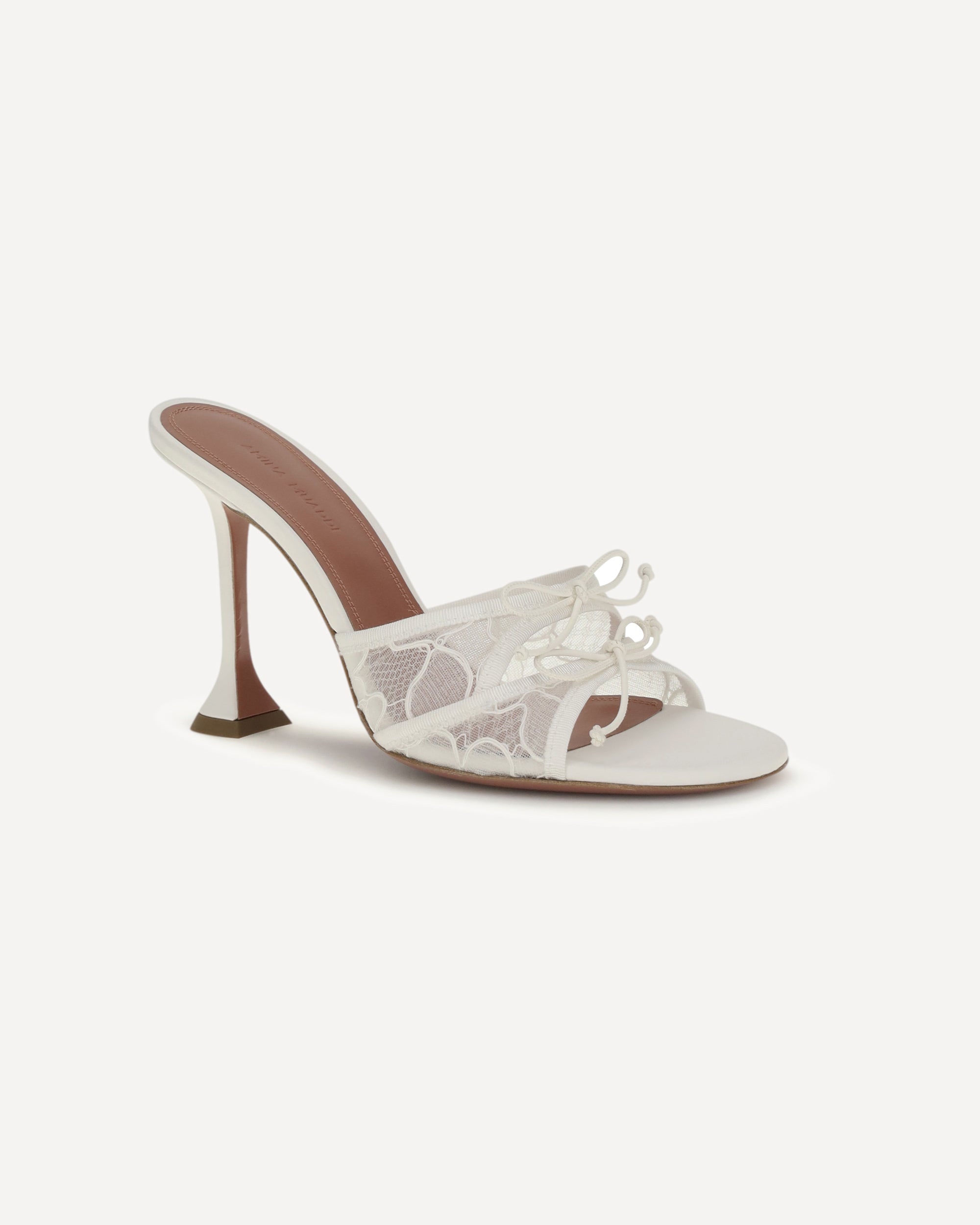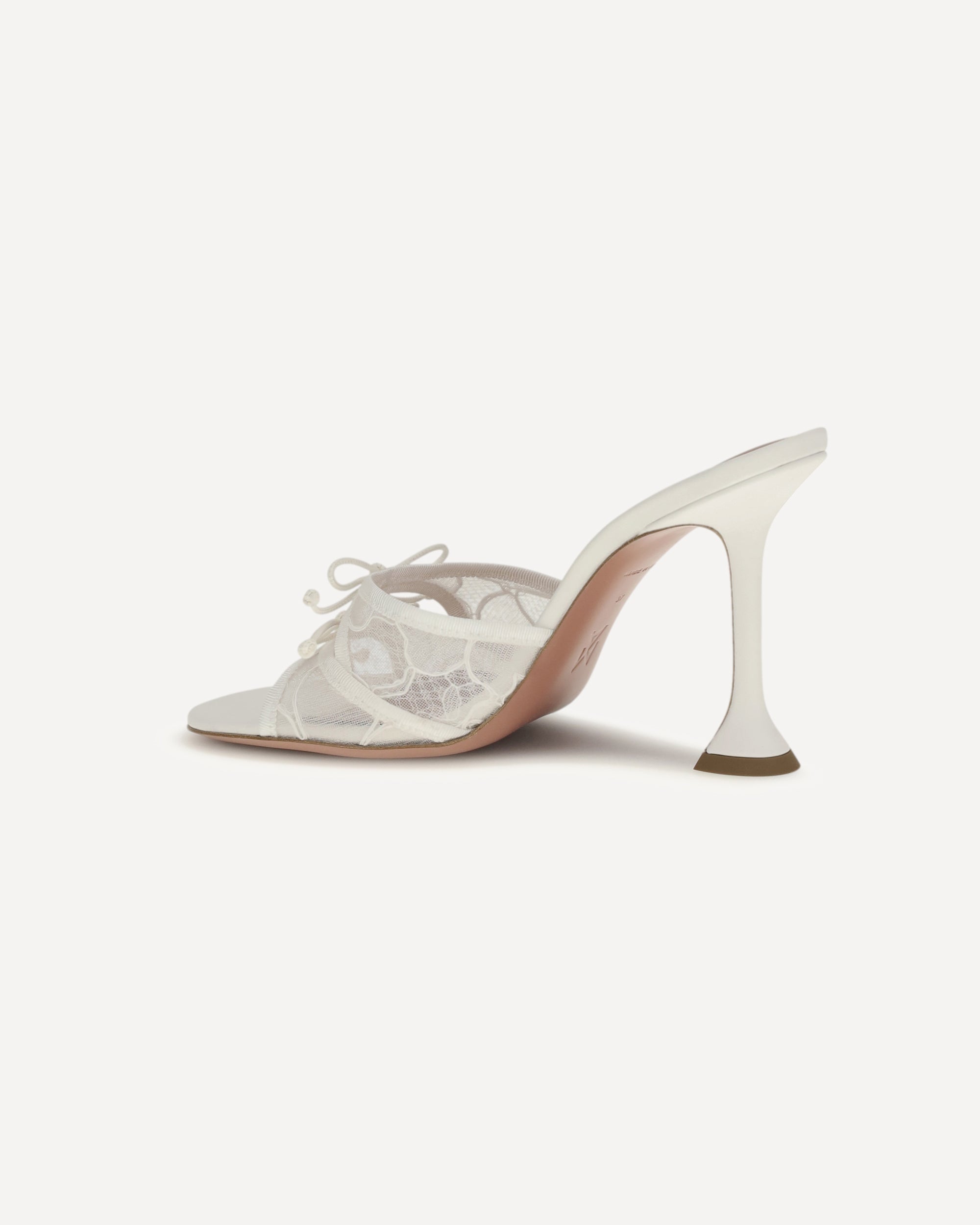 The Eleonora Slipper Sandals by Amina Muaddi are an explosion of elegance and originality. The iconic sculptural geometric heel gives them a unique, modern look, while the round toe adds a touch of timeless femininity. The lace upper, embellished with delicate bows, gives a romantic and sophisticated air, making these sandals perfect for those seeking style and comfort. A contemporary interpretation of class, ideal for special occasions or to elevate a casual-chic look.