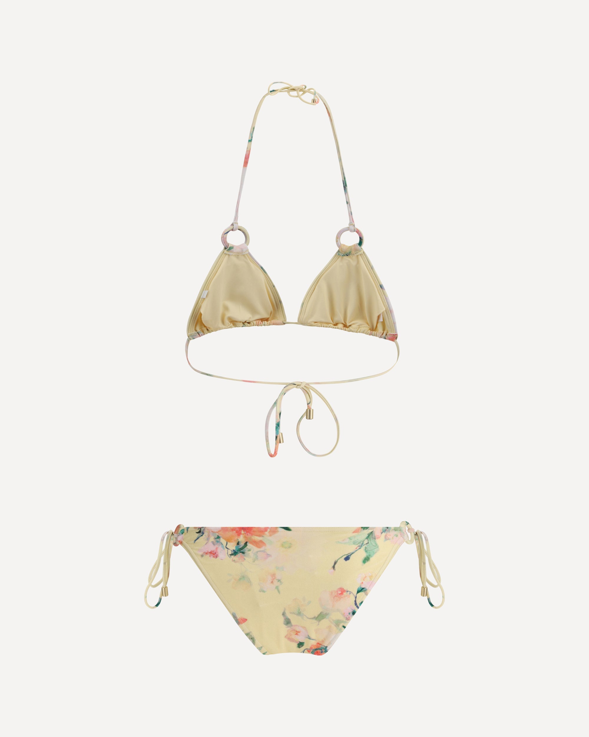Zimmermann's Everley Swimsuit stands out for its elegant and feminine design. Featuring an American neckline embellished with a decorative knot, it has knot closures on both the back and sides, allowing for an adjustable and comfortable fit. The floral pattern completes the look with a fresh and refined touch, perfect for days at the beach or pool.
