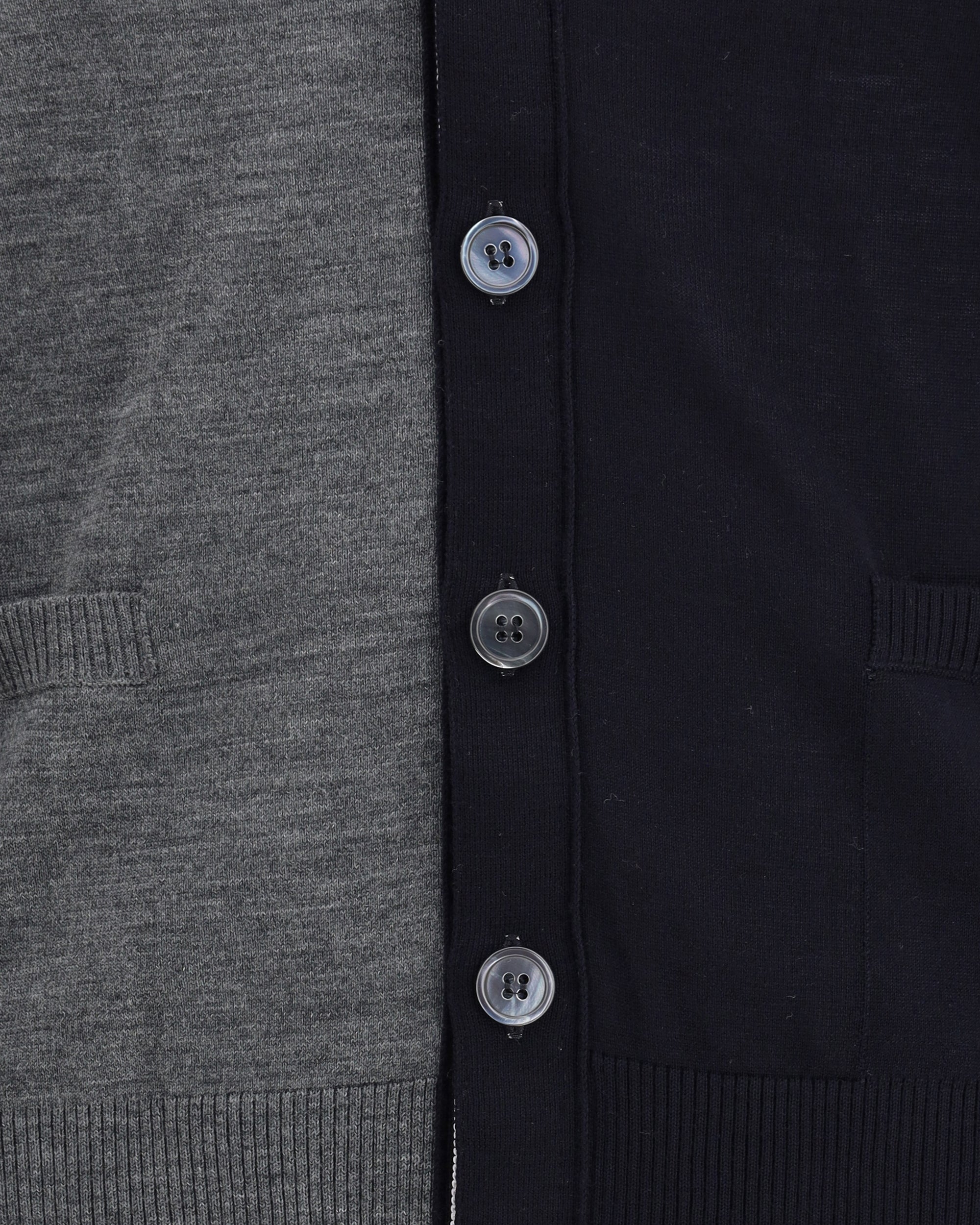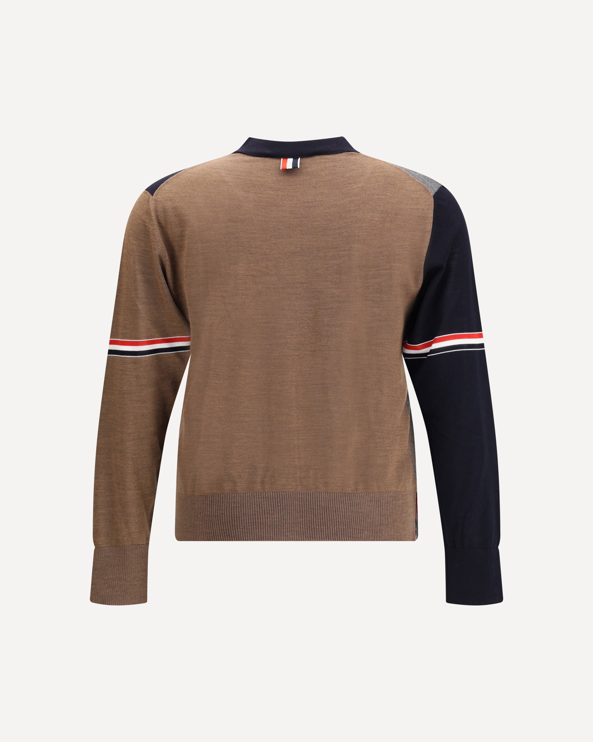 Fine virgin Wool Cardigan with V-neck front and button closure. It features two front welt pockets and side slits that can be adjusted with buttons. The ribbed cuffs are also adjustable with buttons and embellished with the iconic multicolored applique bands, a detail also found on the ribbed hem and multicolored panels. The sleeves feature multicolored horizontal bands, a distinctive symbol of the brand.