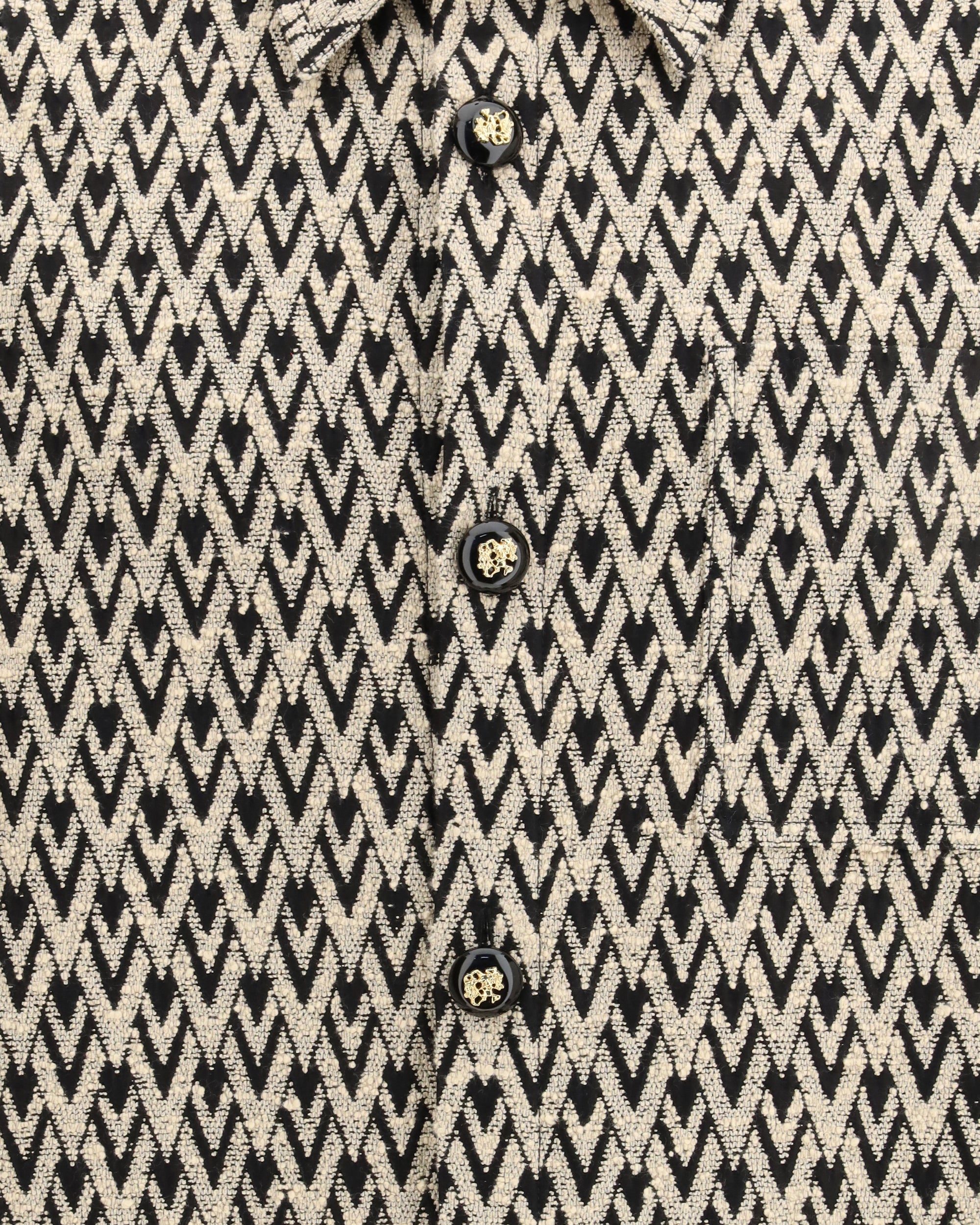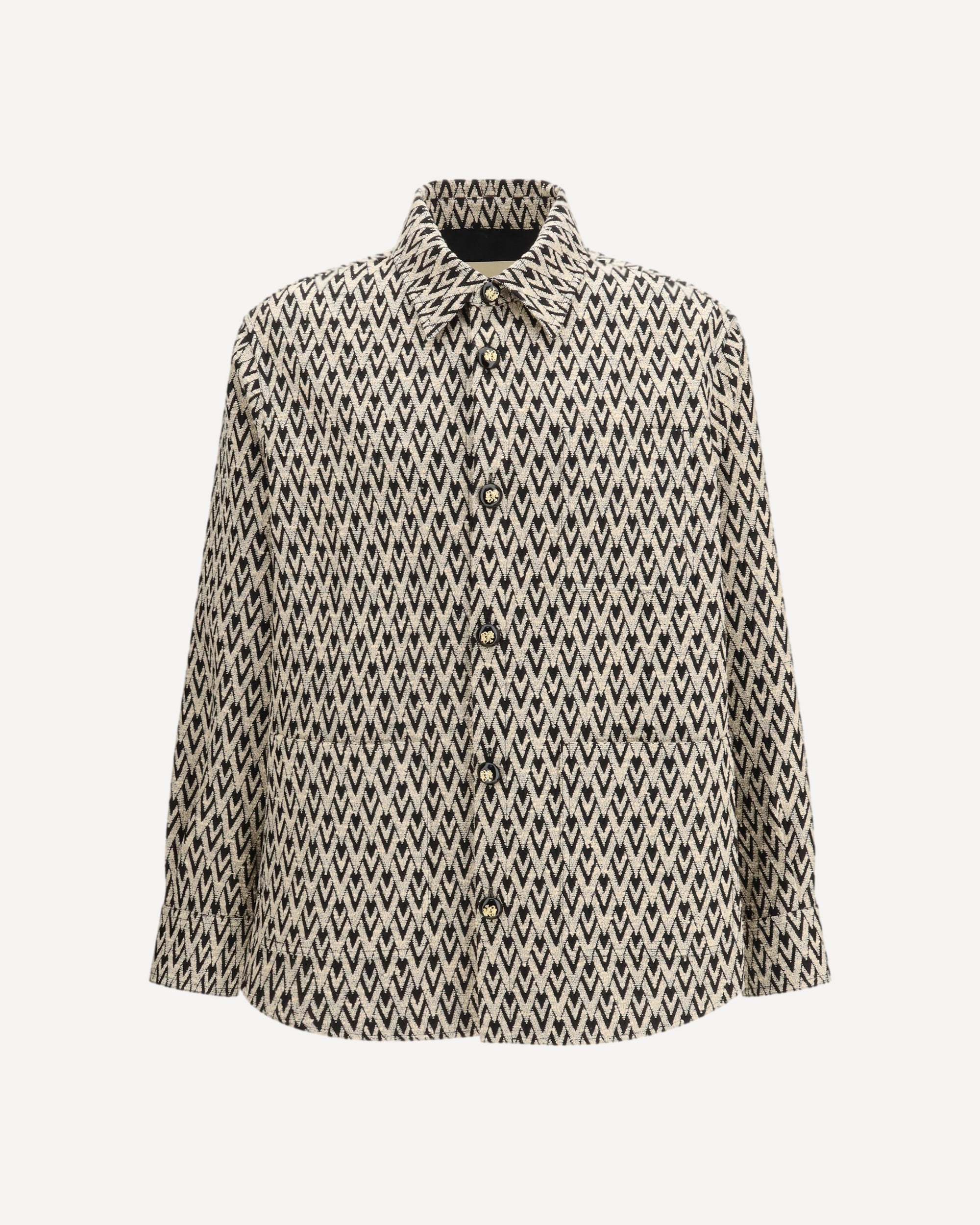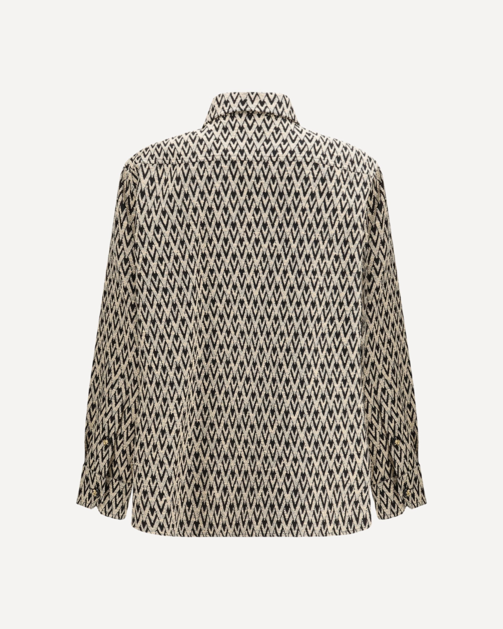 The mixed cotton jacquard Toute La V Jacket by Valentino Garavani expresses the Maison’s elegance through refined craftsmanship and a timeless design. The jacquard texture enriches the fabric with a sophisticated pattern, while the classic collar and full front button fastening create a clean, balanced silhouette. Buttoned cuffs complete the piece with a tailored detail that reflects Valentino Garavani’s distinctive style.