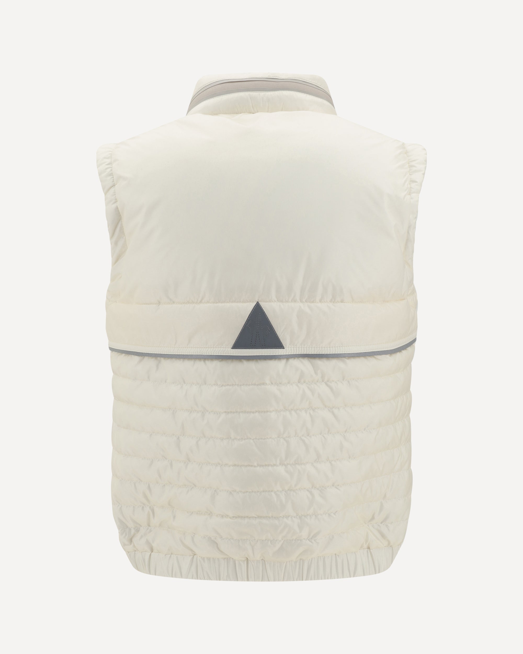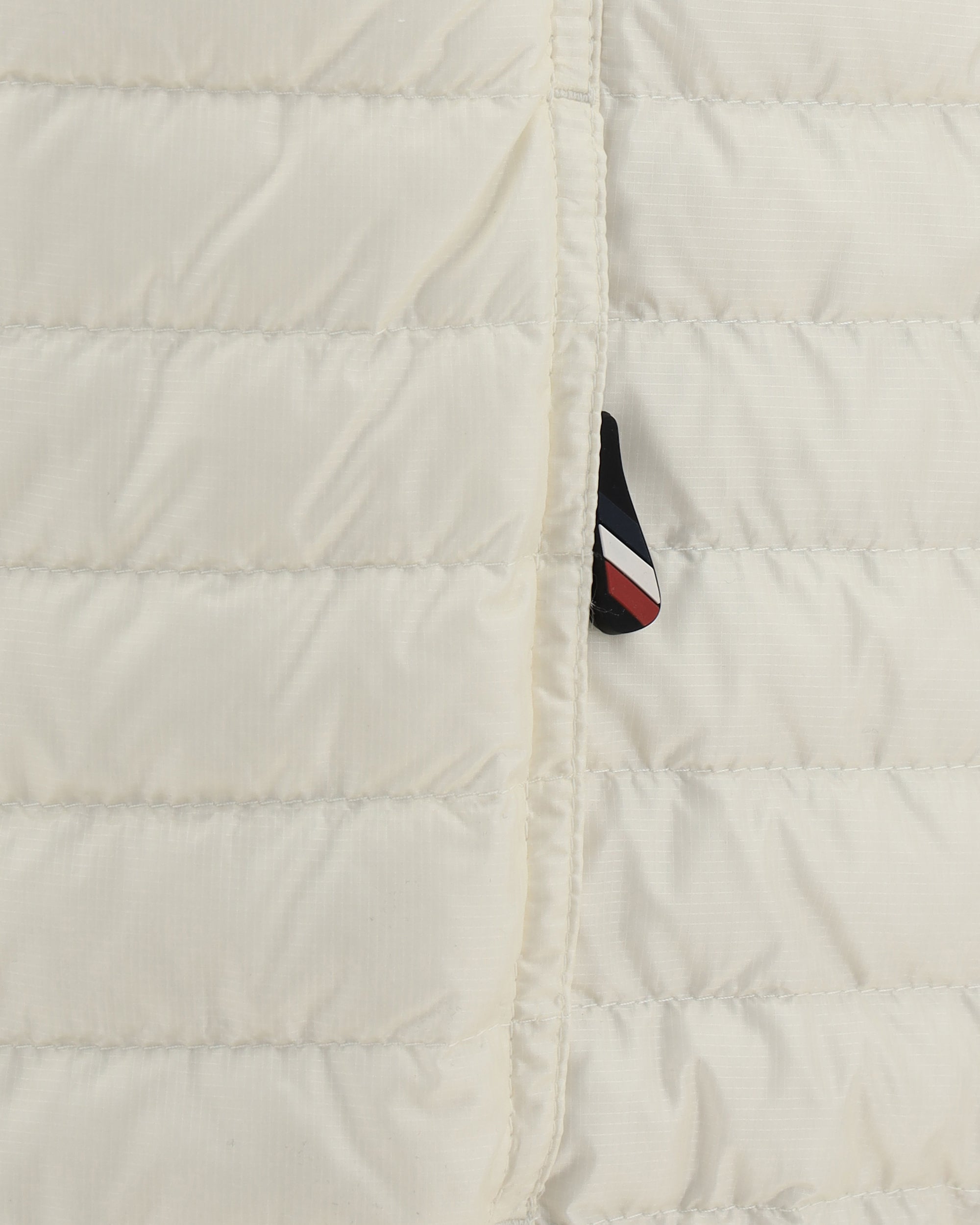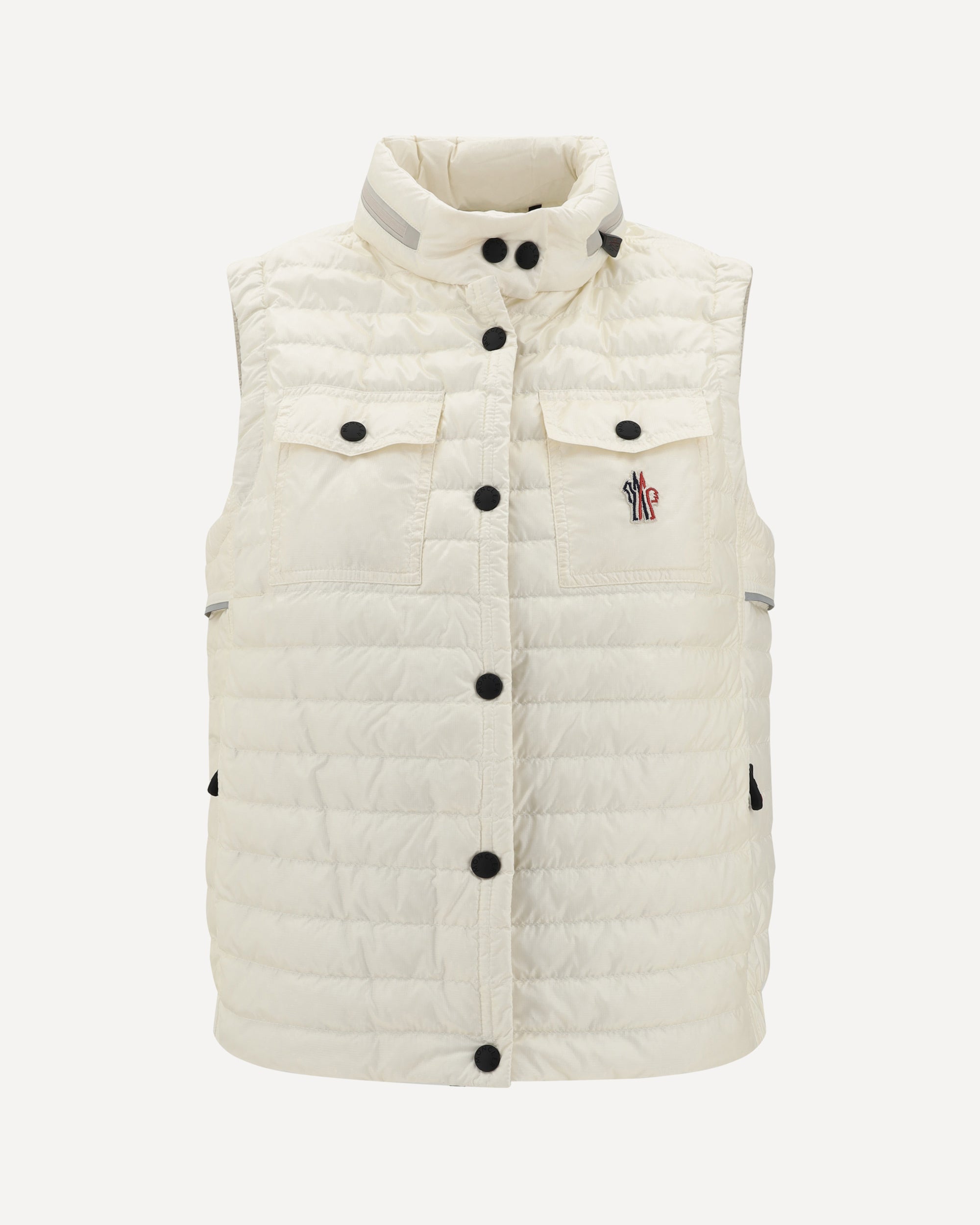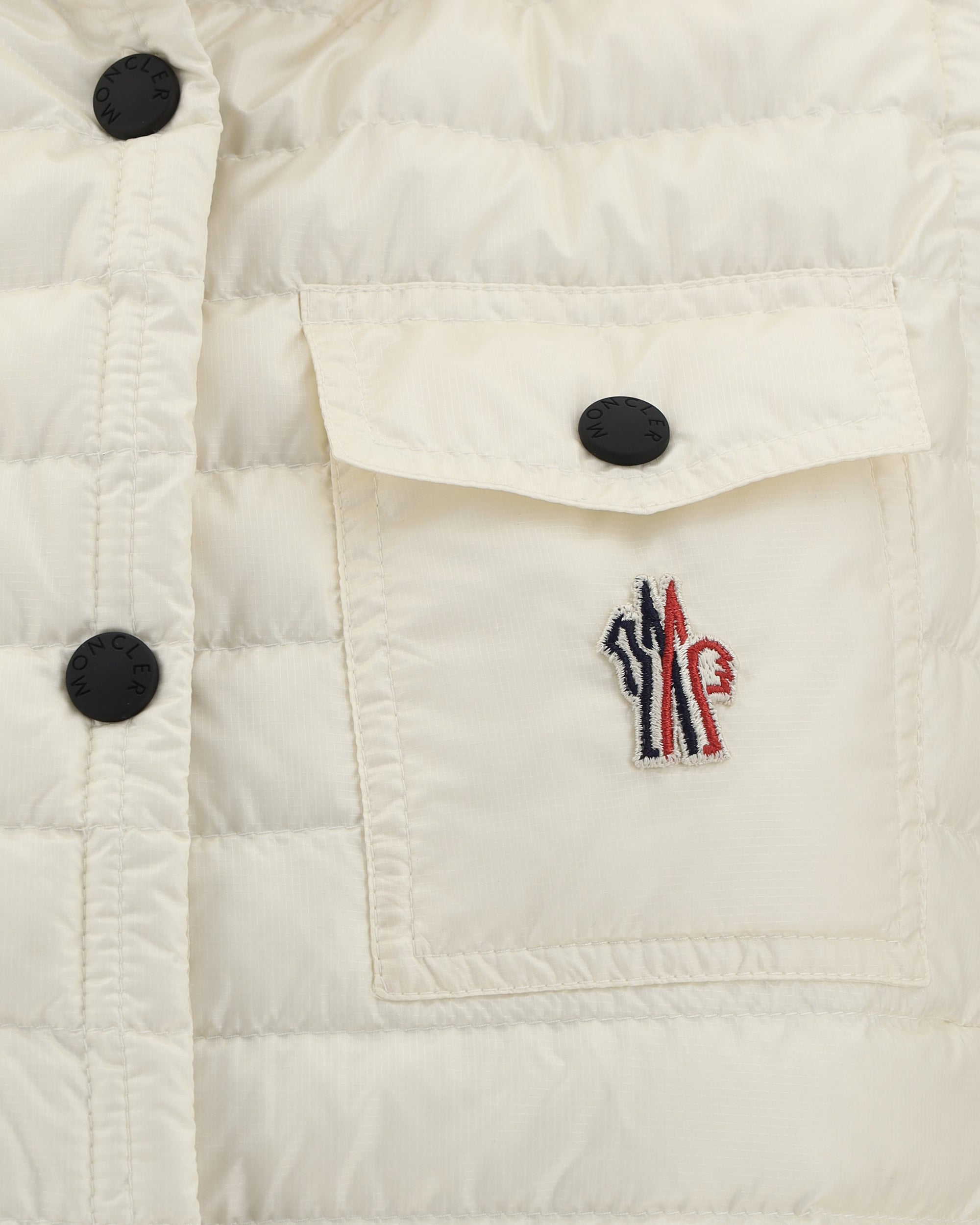 The Gumiane down Gilet by Moncler Grenoble is a practical and trendy garment ideal for cooler days. The front snap closure offers a secure and comfortable fit, while the two patch pockets on the front add functionality. The padded, quilted design provides warmth without sacrificing elegant style. The brand's iconic logo patch stitched on the front adds a distinctive and recognizable touch. Perfect for a sporty-chic look, this vest is a must-have for those seeking quality and style.