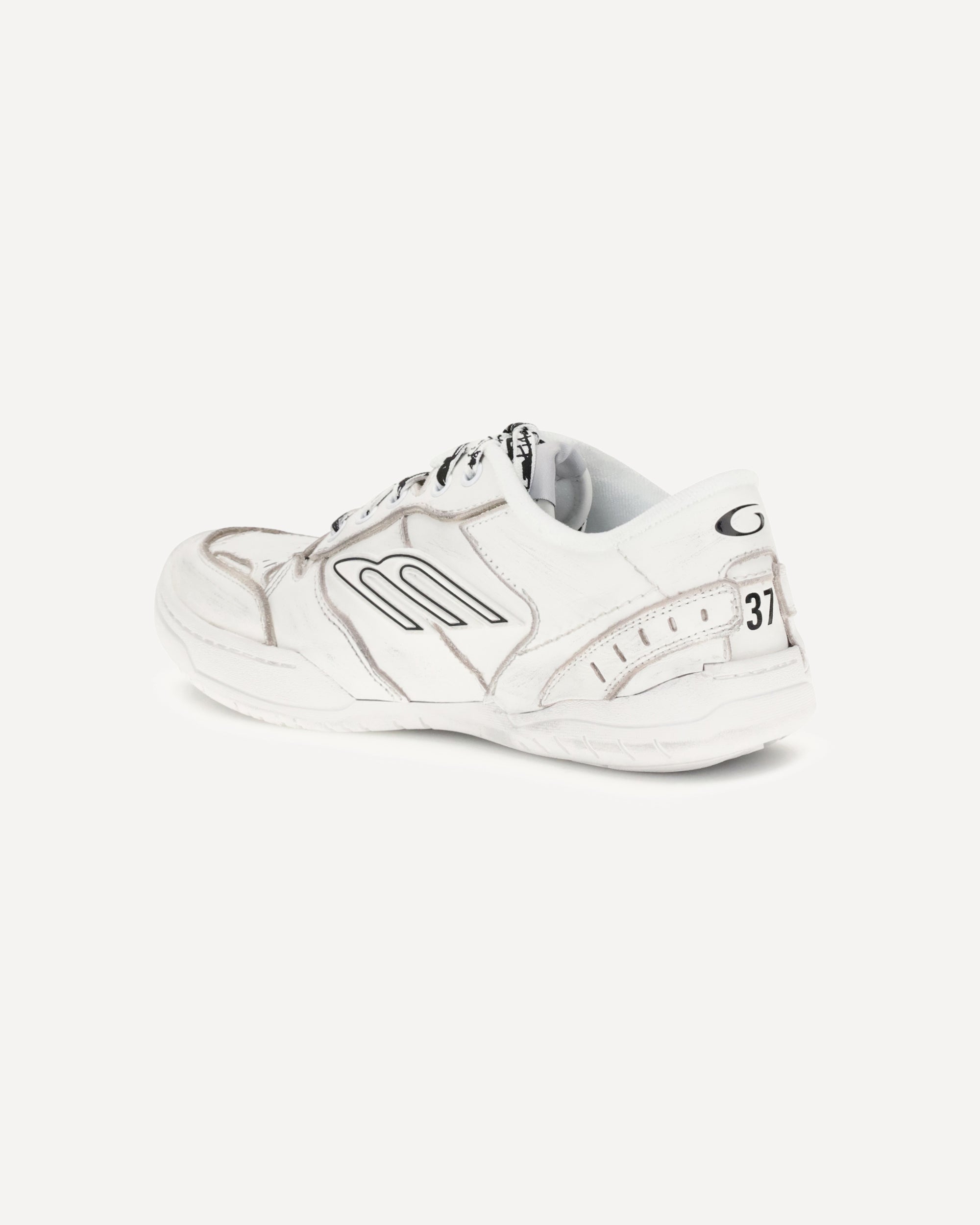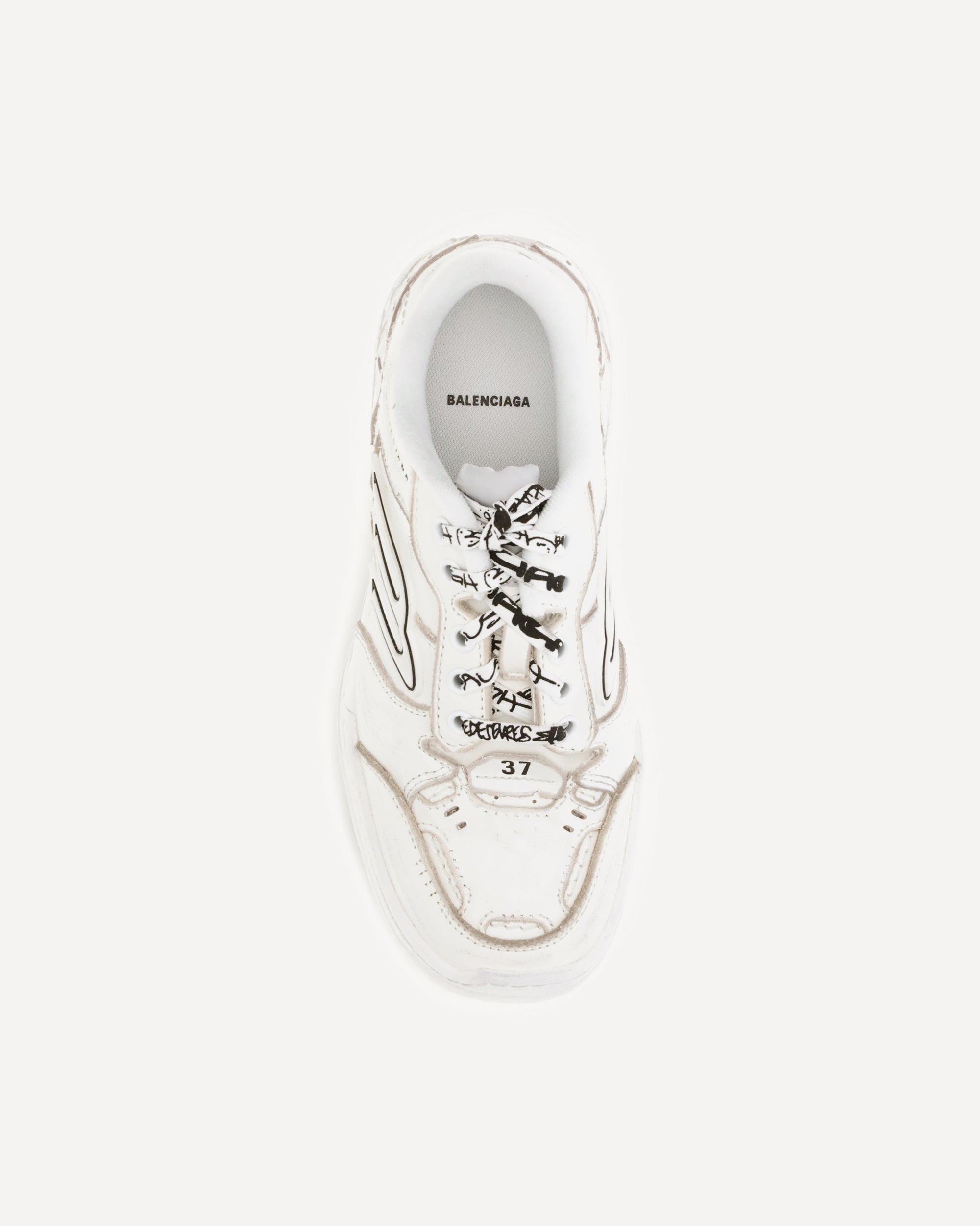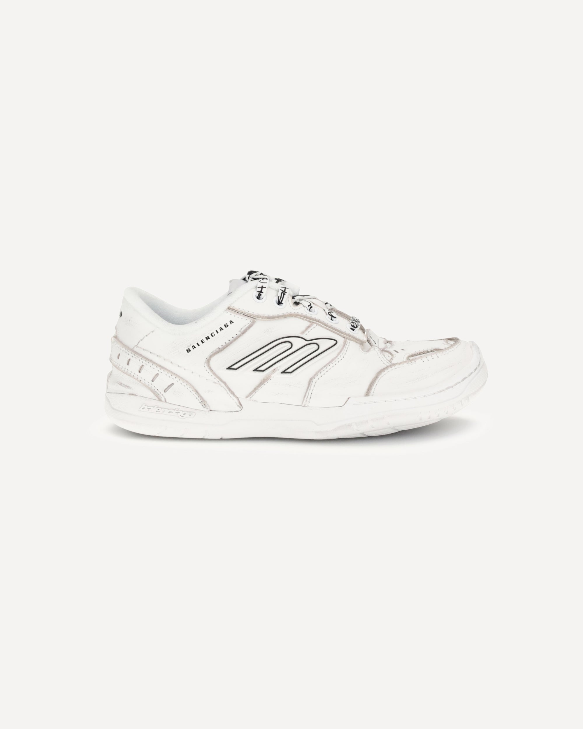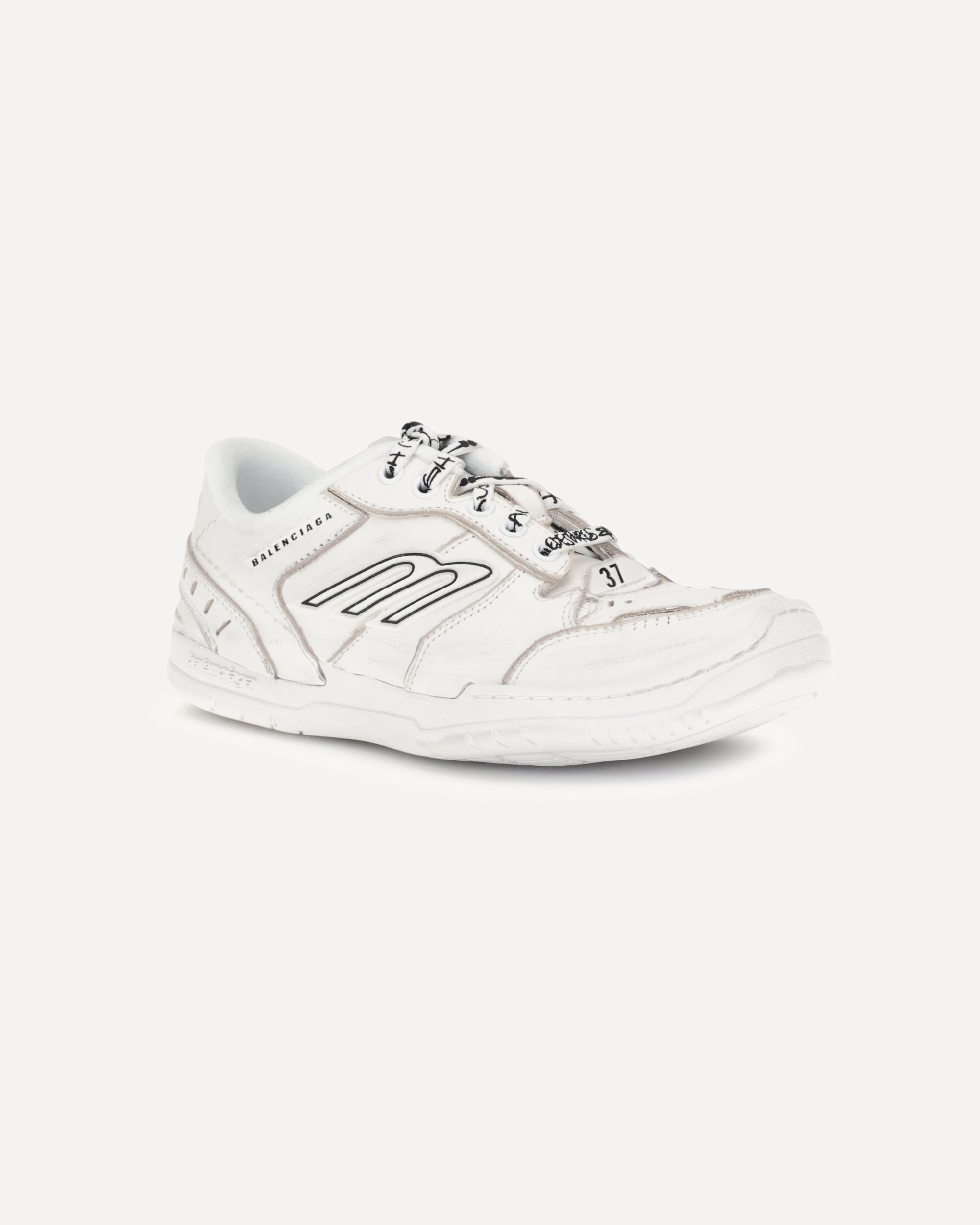 Hamptons Worn-out Sneakers by Balenciaga reinterpret streetwear style with a medium-worn effect that lends character and originality. Twisted laces, exposed topstitching and raw-cut edges enhance the intentionally lived-in aesthetic. Iconic details such as the Balenciaga logo embossed on the upper and embossed on the sole, along with the 3B motif and sports icon loops, complete a bold and recognizable design.