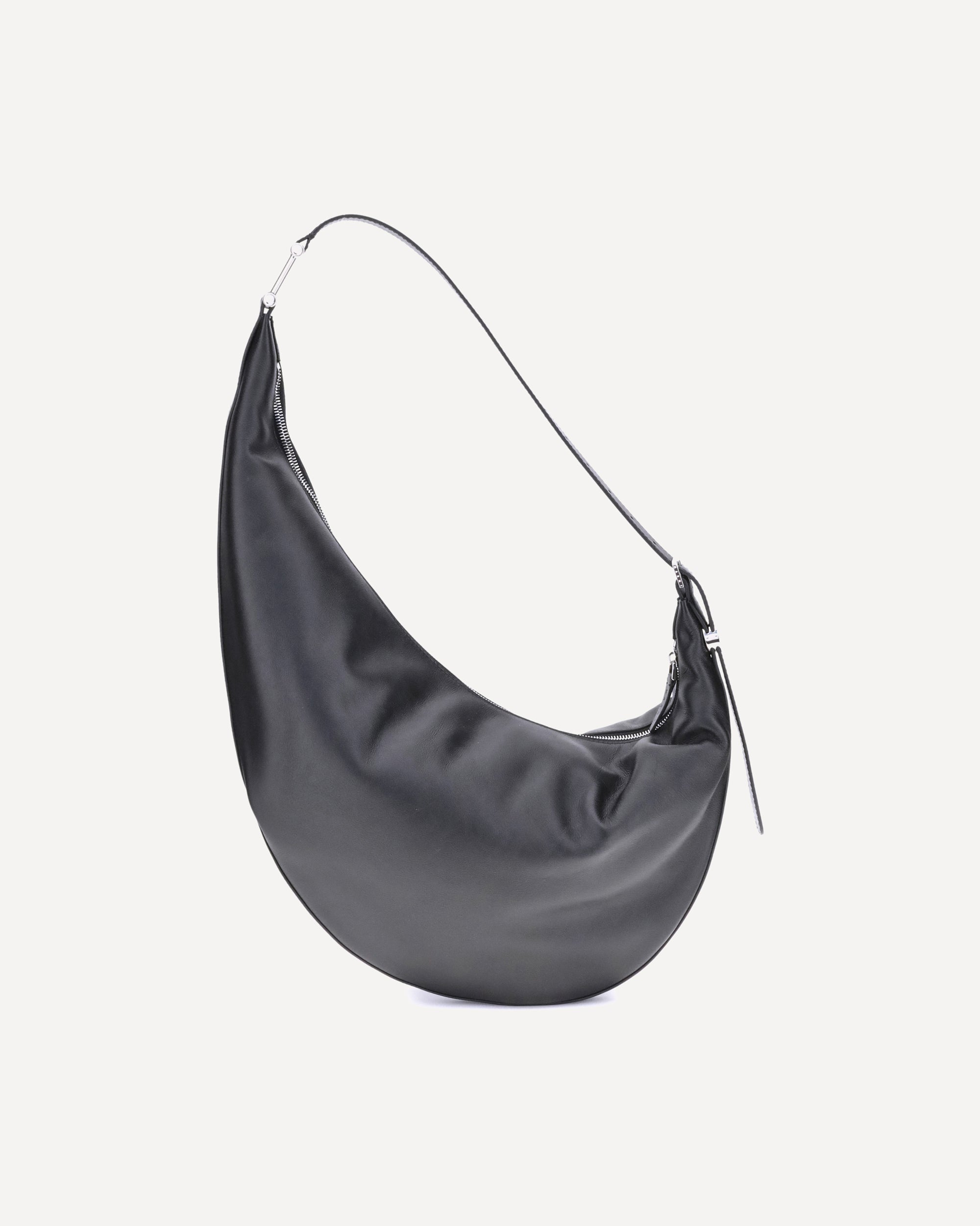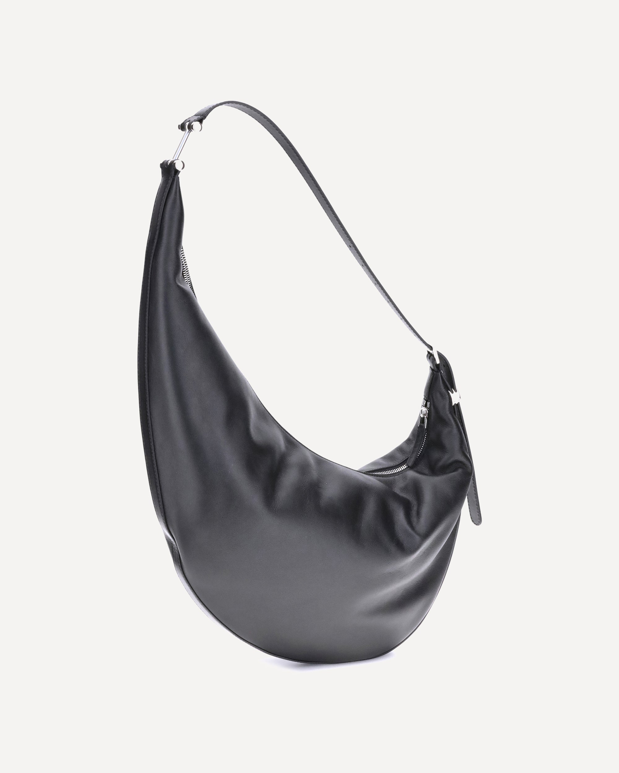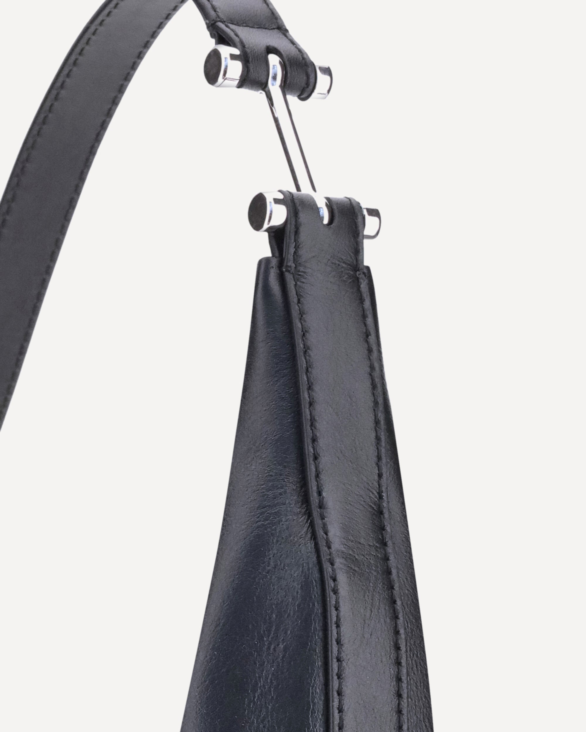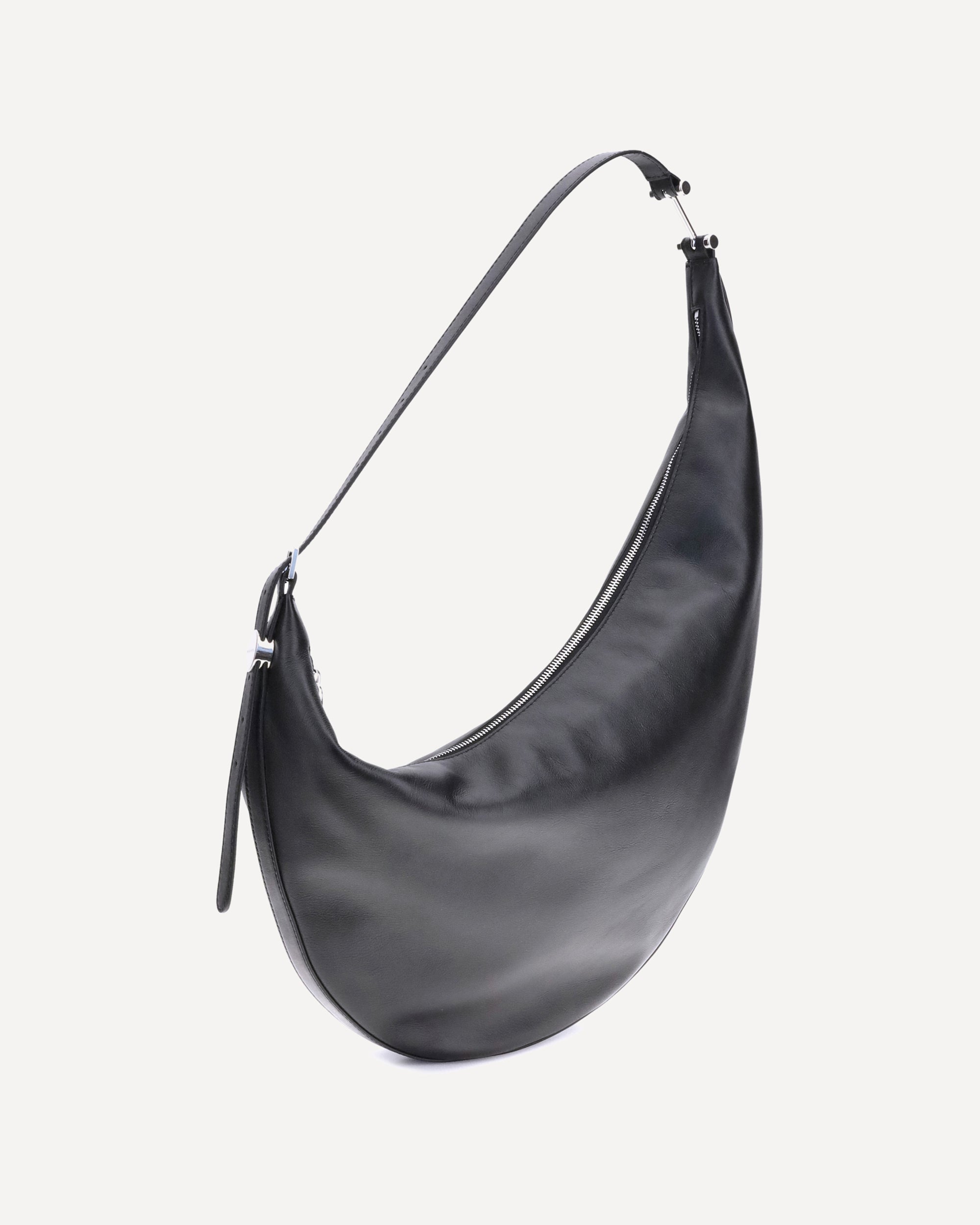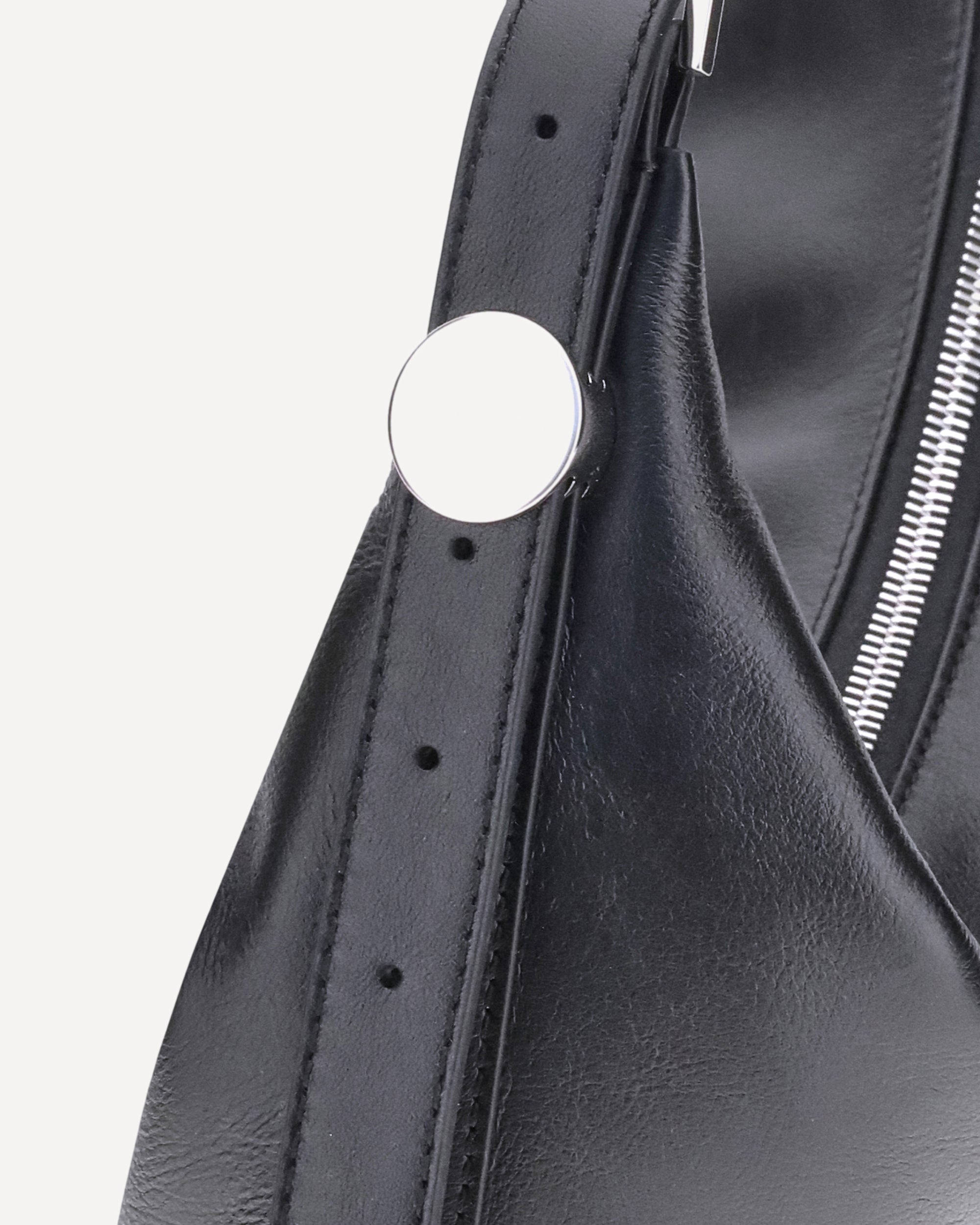 Marni's small Dot Hobo Shoulder Bag stands out for its semi-gloss finish that enhances its natural texture. It is a crossbody model with an asymmetrical and soft silhouette, perfect for a contemporary look. The handle, adjustable with a buckle, features a distinctive metal clamp that creates a charming suspended effect, embellished with a round rivet with engraved Marni logo. The bag closes with a zipper and includes an interior zippered pocket to better organize your belongings.
