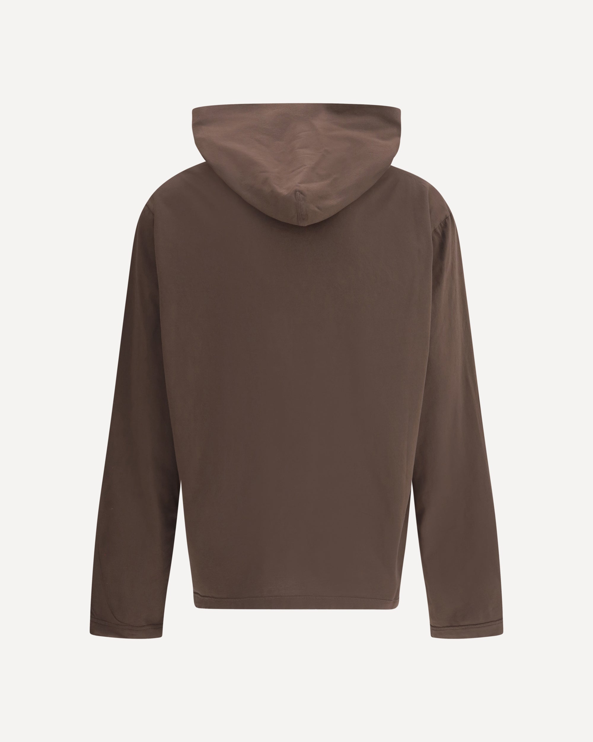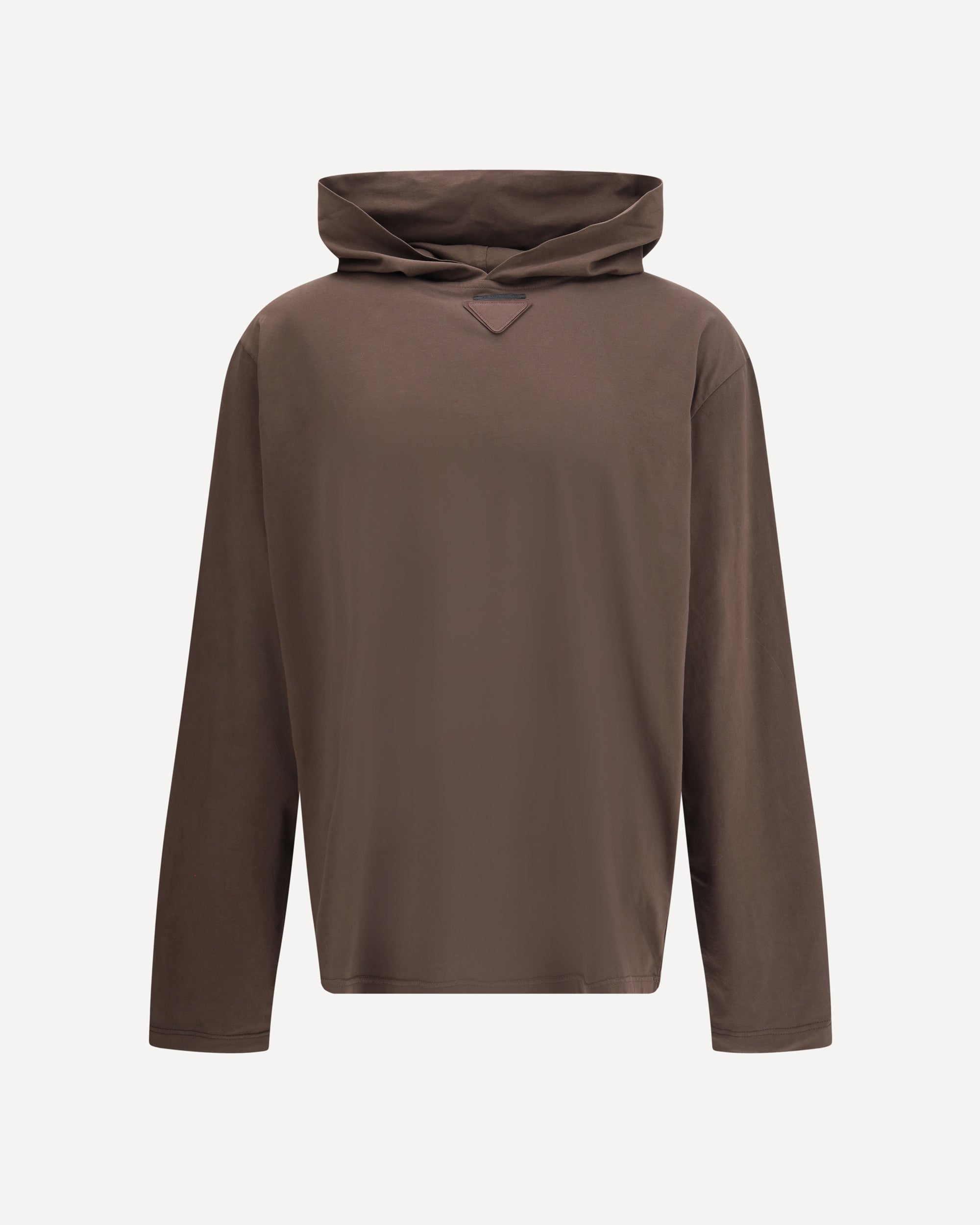 Prada's lightweight Hoodie is a garment with a modern, minimalist allure. The triangular logo patch on the front adds an iconic and recognizable detail, while the lightweight fabric ensures comfort and versatility, ideal for a casual yet sophisticated look.