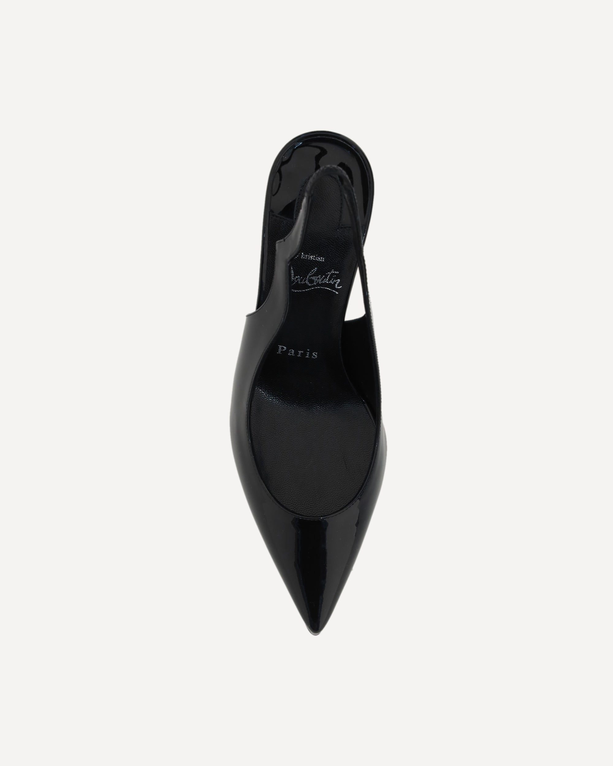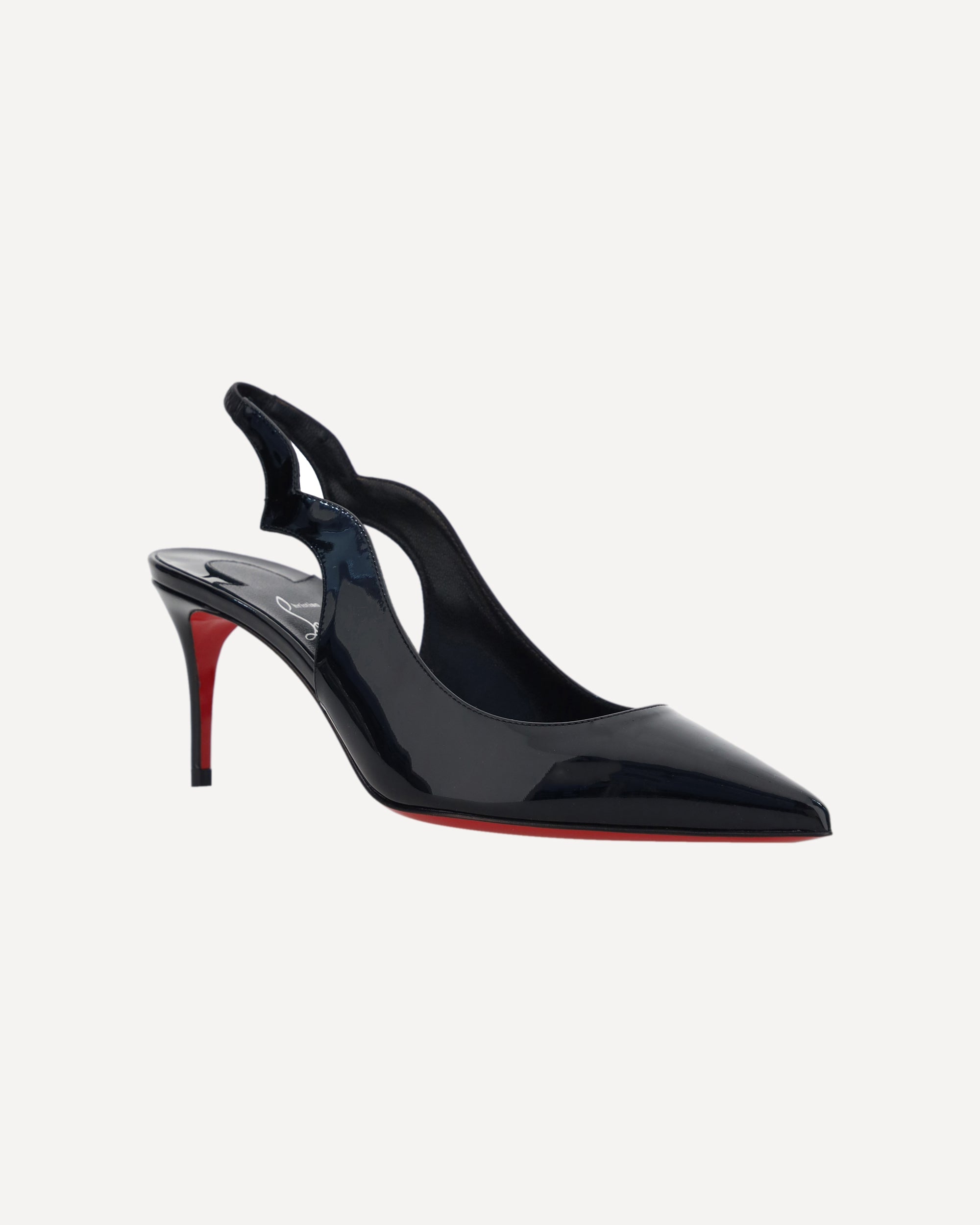 The leather Hot Chick Pumps by Christian Louboutin embody bold, sensual elegance. The shiny leather design highlights the tapered silhouette, enhanced by a geometric toe and a figure-flattering leather stiletto heel. On the back, the geometrically shaped slingback detail adds a refined touch, while the contrasting logoed insole completes the ensemble with a distinctive detail. Unmissable, the iconic red sole signs the unmistakable Louboutin style,