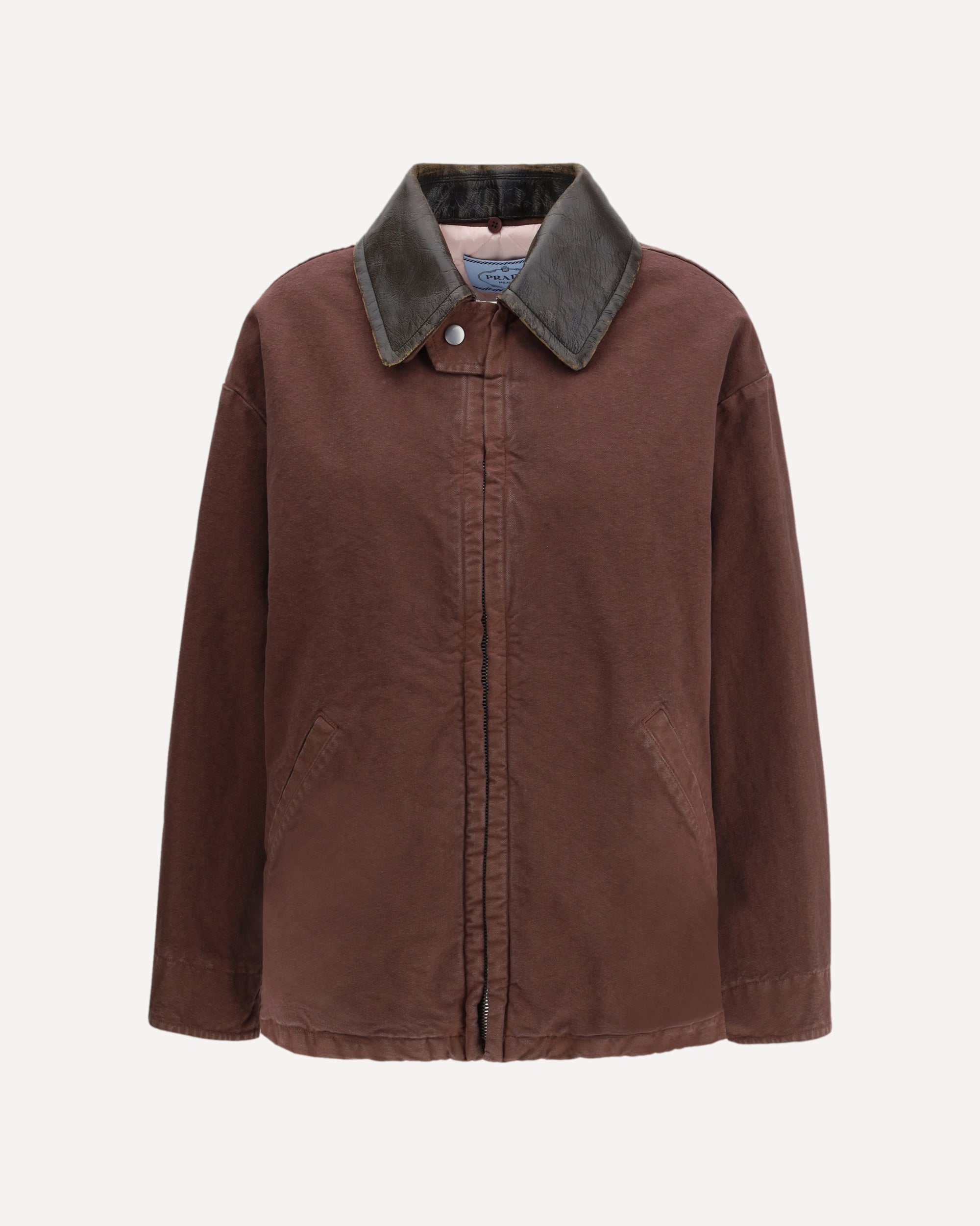 The Canvas Old Peacoat by Prada revisits an iconic silhouette from the Maison’s wardrobe with utility-inspired details and a refined lived-in aesthetic. Crafted from aged-finish canvas, achieved through artisanal treatments that create a natural worn effect, the piece features a spacious, structured design completed by a warm quilted lining. The contrasting leather collar adds a sophisticated touch, enhancing the bold character of the coat.