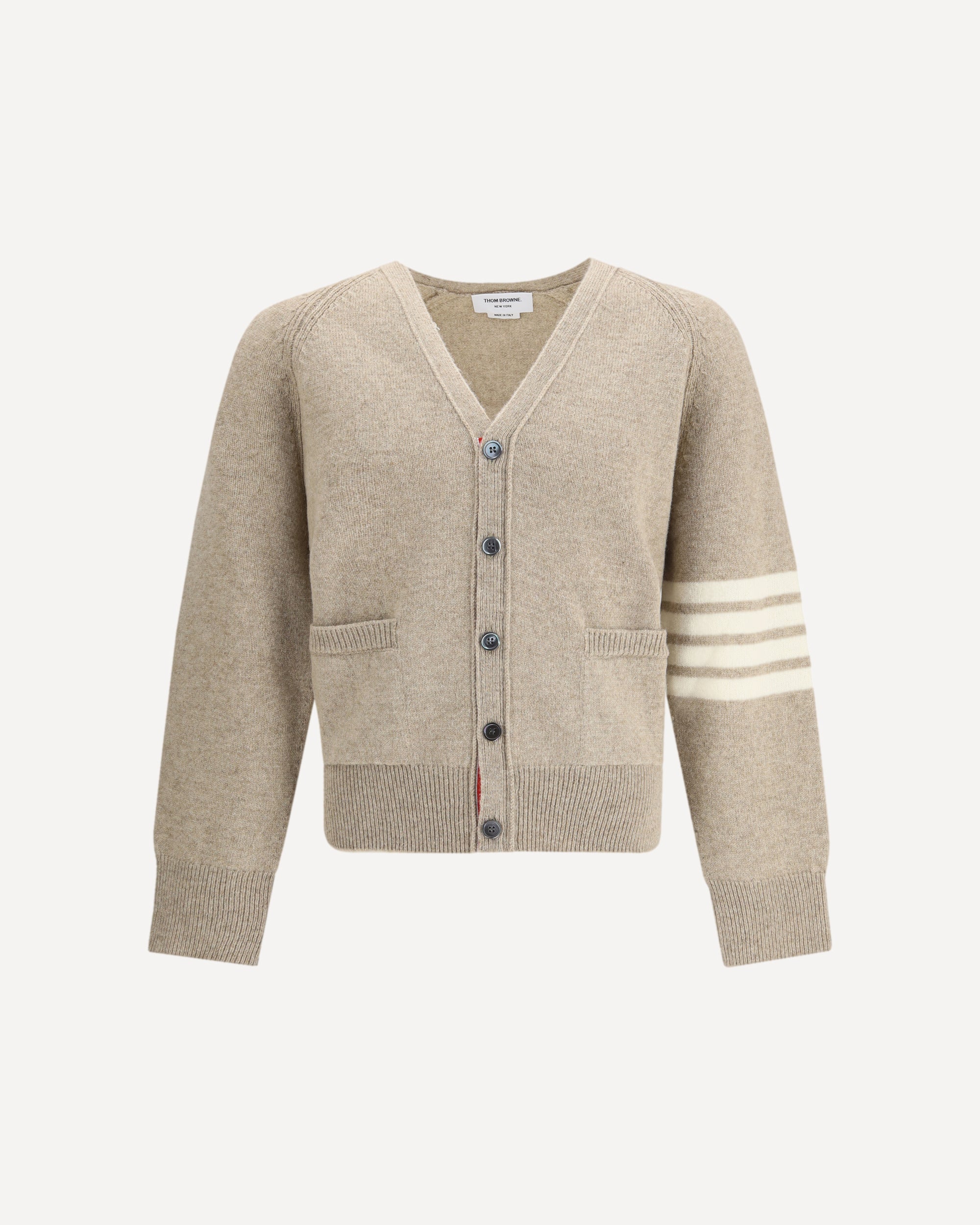 THOM BROWNEShetland Wool 4-Bar Relaxed Fit V-Neck Cardigan