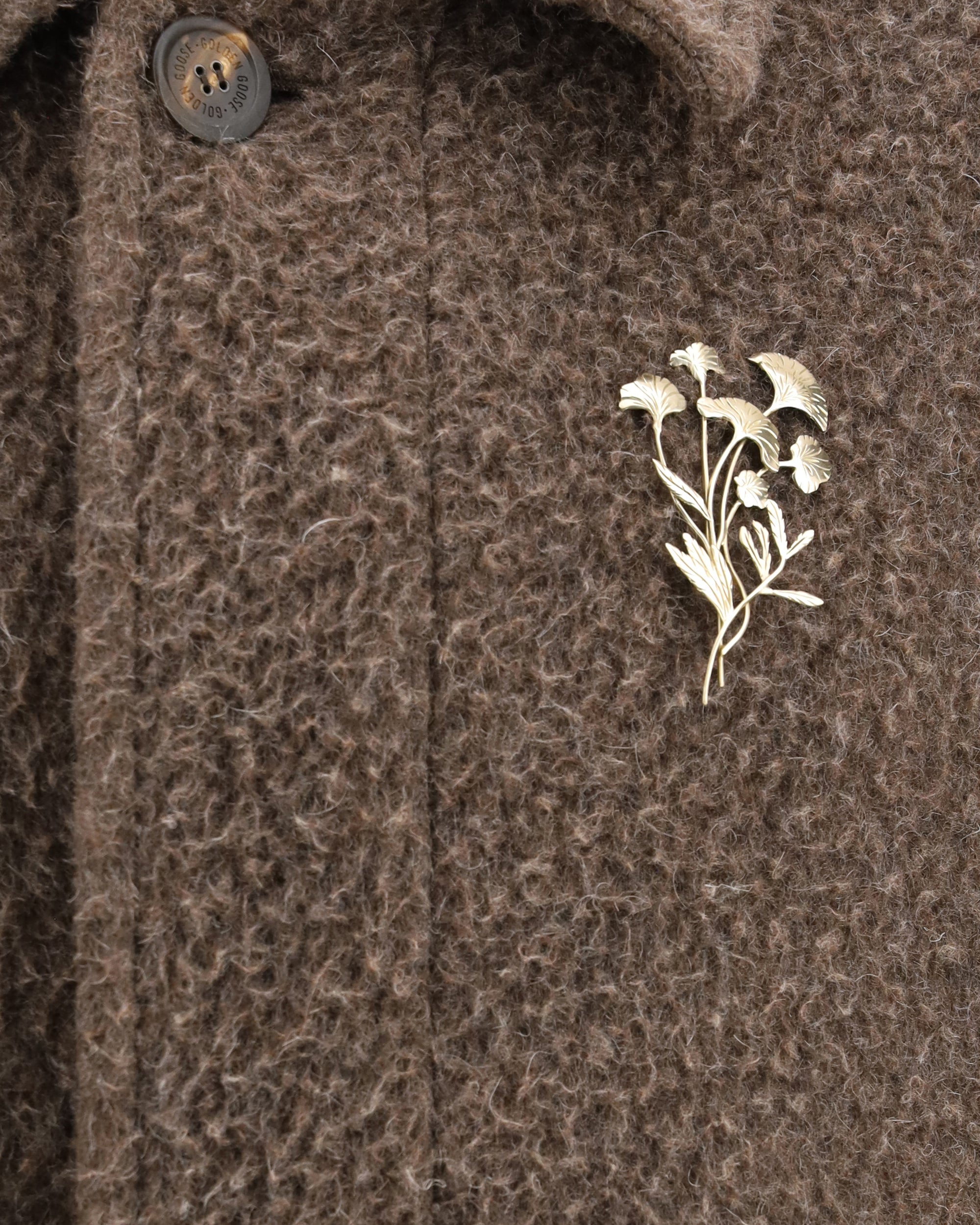 The Journey Single-breasted Coat by Golden Goose in wrinkle-effect Wool blend offers a contemporary take on a timeless classic. Featuring a front button closure and a decorative bronze floral pin on the chest, it combines sophisticated elegance with distinctive details for a refined, modern look.