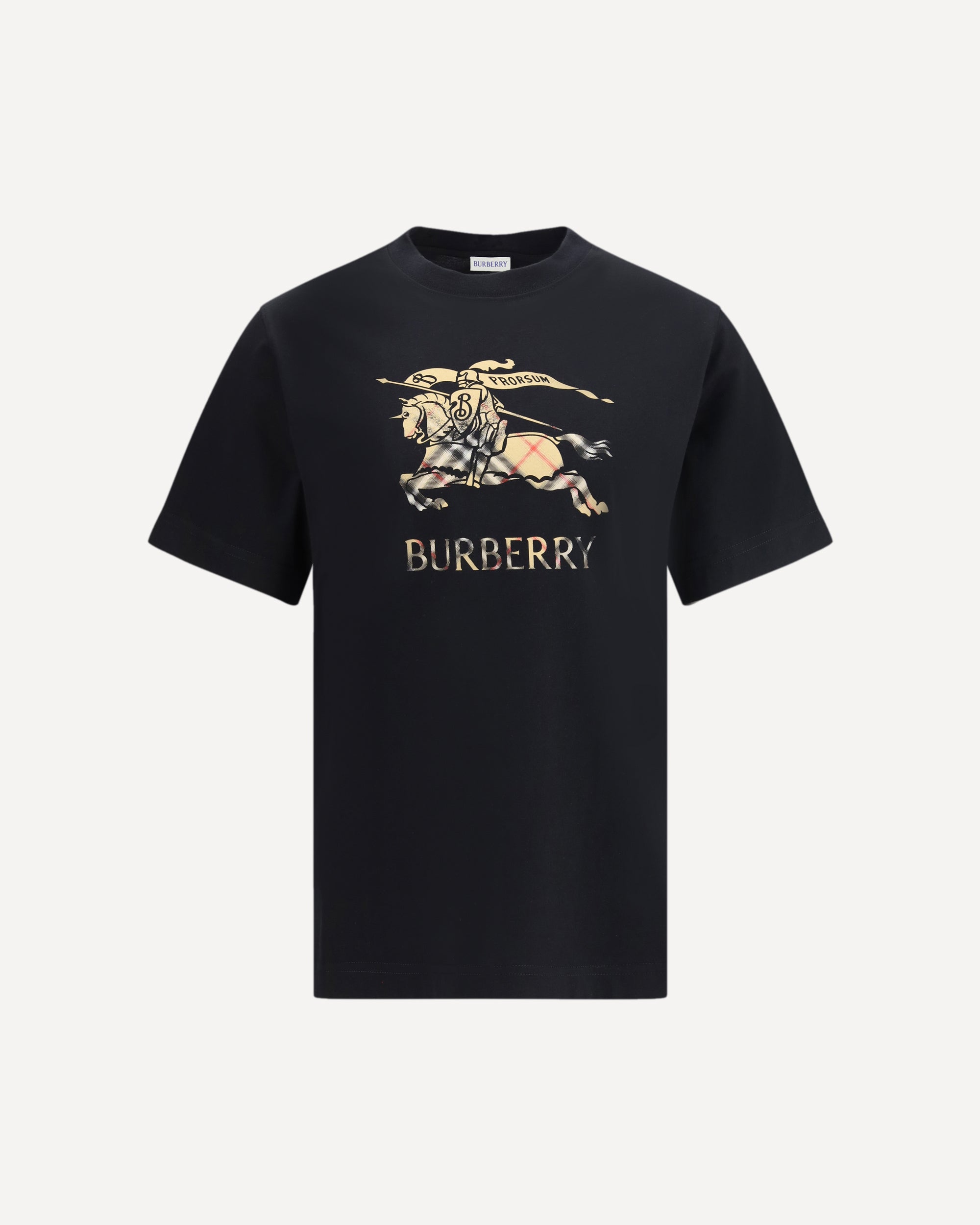 The cotton T-shirt with faded EKD by Burberry is crafted from lightweight cotton jersey in a slim fit, offering a clean and refined look. The crew-neck design is enhanced by a printed logo and Equestrian Knight Design, detailed with a blended Burberry Check effect, while the ribbed neckline and Burberry lettering on the chest complete the modern, essential style.