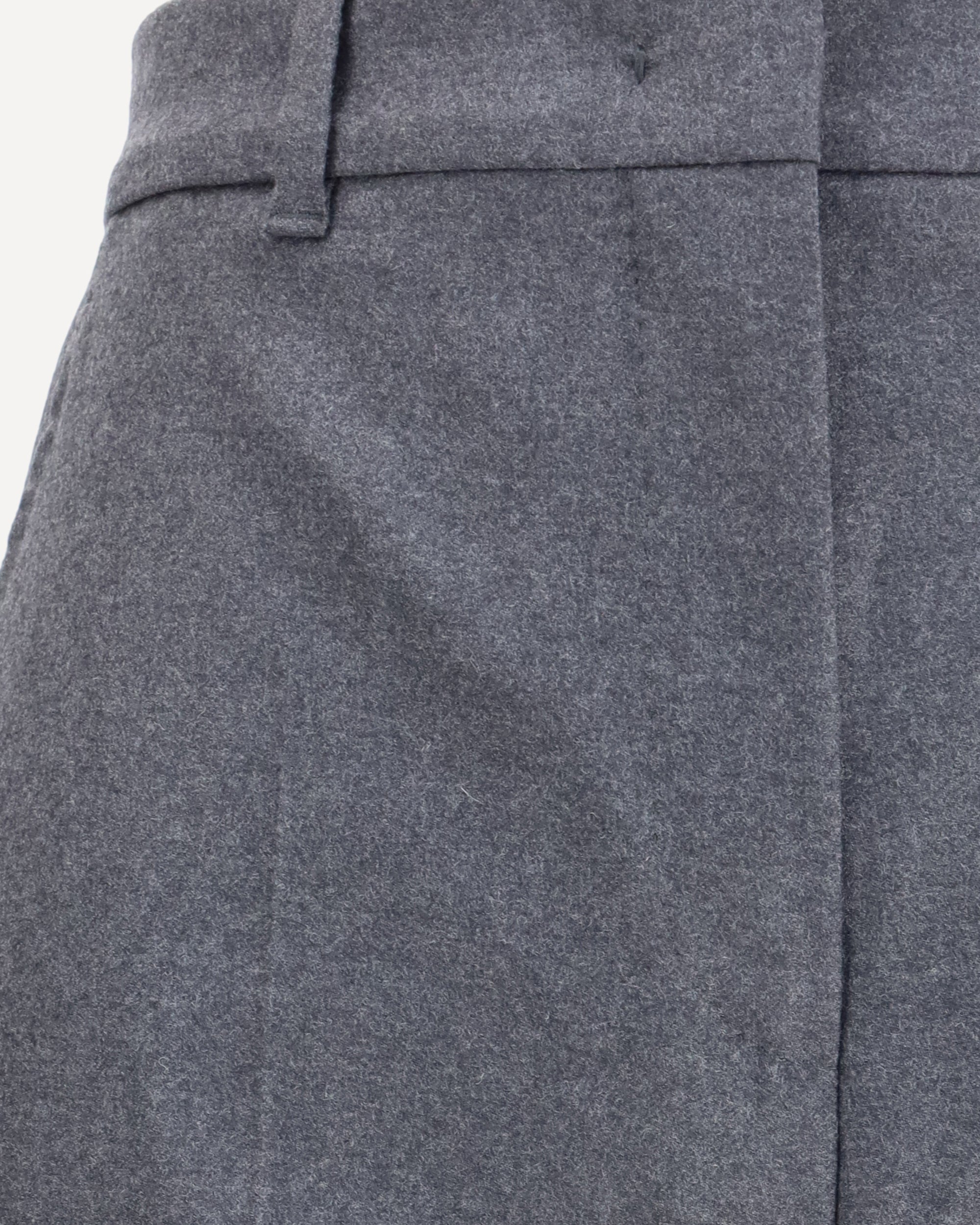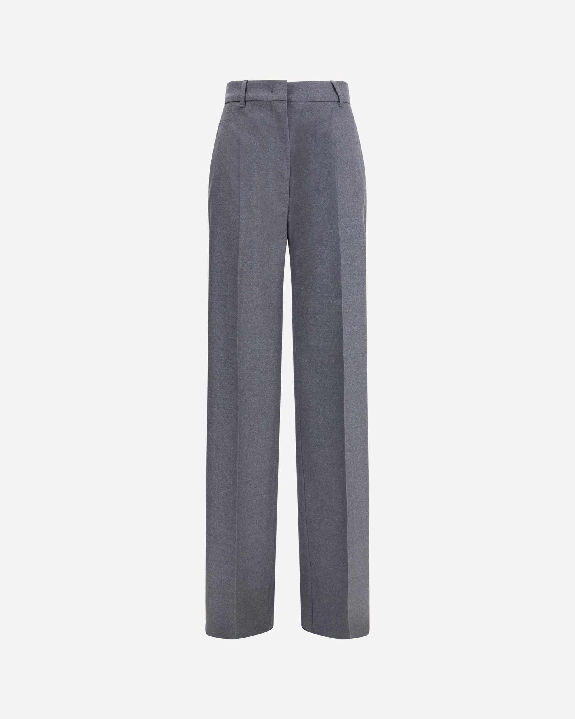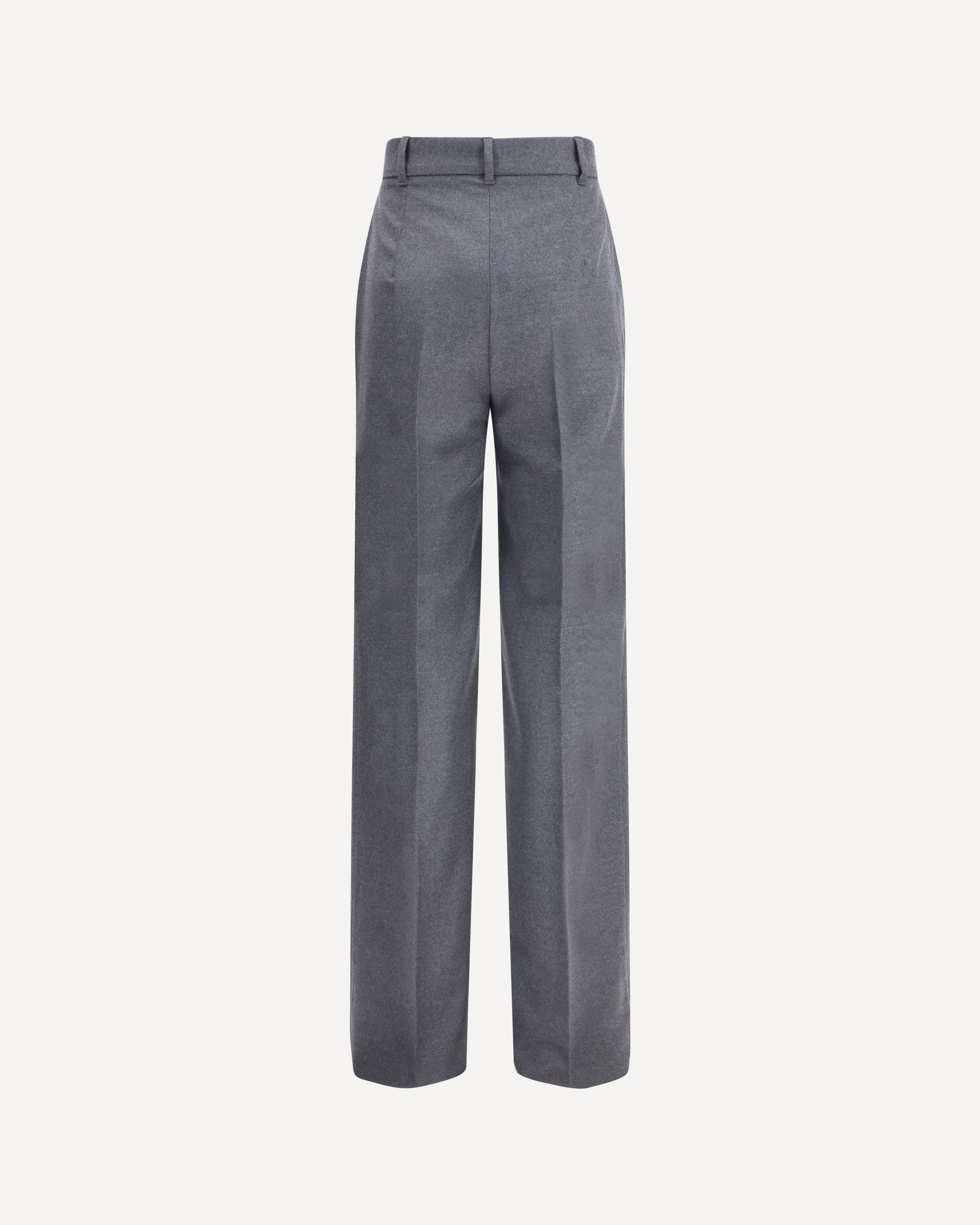 The Lambro Pants by Max Mara Studio embody timeless elegance, combining comfort and sophistication through soft, stretch wool flannel. Their tailored cut and straight silhouette create a clean, contemporary aesthetic, ideal for both office wear and refined everyday looks. A mid-rise waist with a structured waistband and concealed zip closure ensures a regular, comfortable fit, while slanted pockets and belt loops add discreet functionality. The pressed front crease enhances the streamlined shape, highlighting the piece’s refined simplicity. Effortlessly versatile, these trousers pair beautifully with classic shirts, structured blazers or fine knitwear, completing a modern and polished wardrobe.