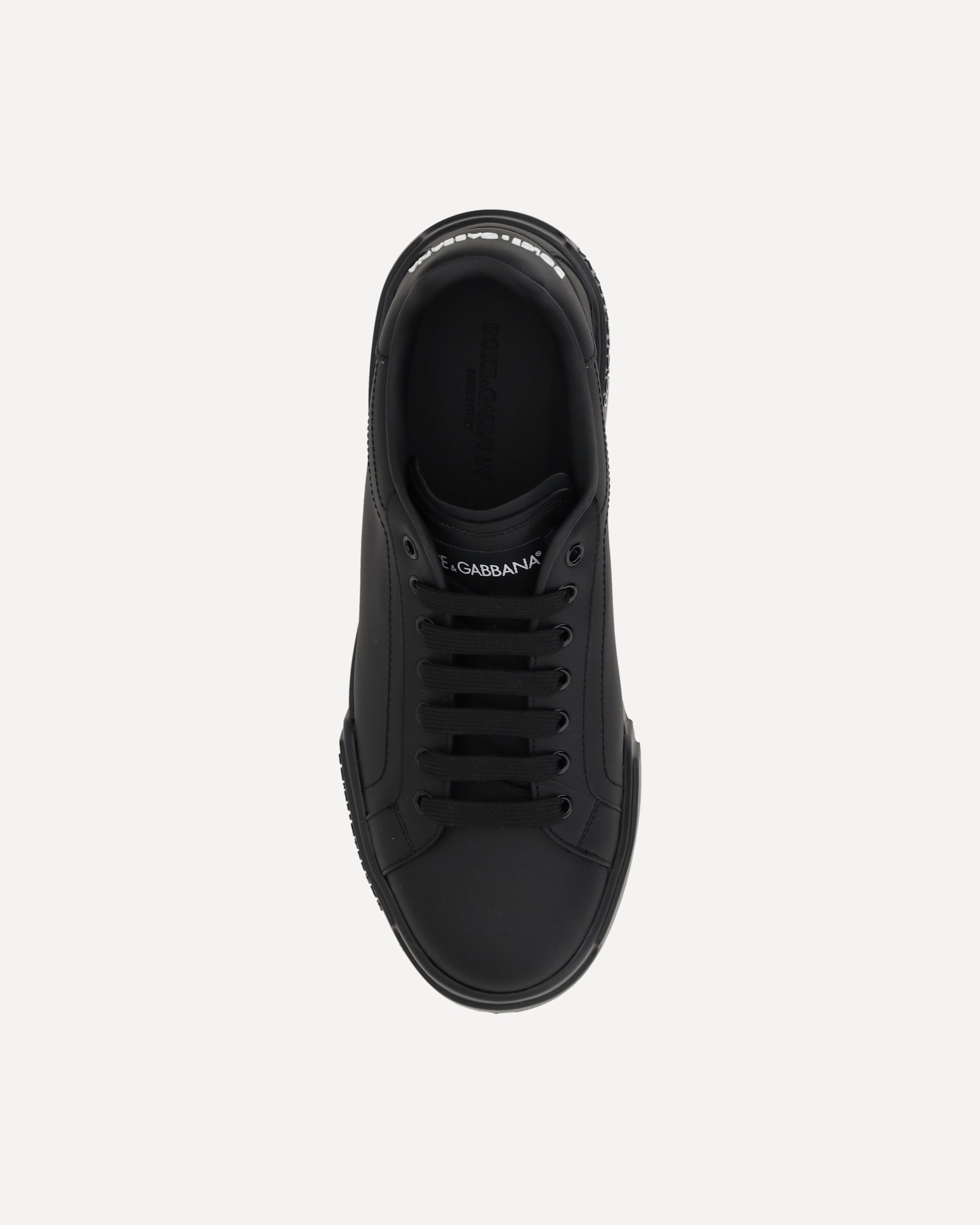 Dolce&Gabbana leather Sneakers with lace-up front closure for an adjustable and comfortable fit. The iconic contrasting monogram is featured on the heel and flat sole, adding a distinctive and luxurious touch. The logoed insole completes the design, giving an additional exclusive detail. An elegant and versatile model, perfect for casual-chic style.