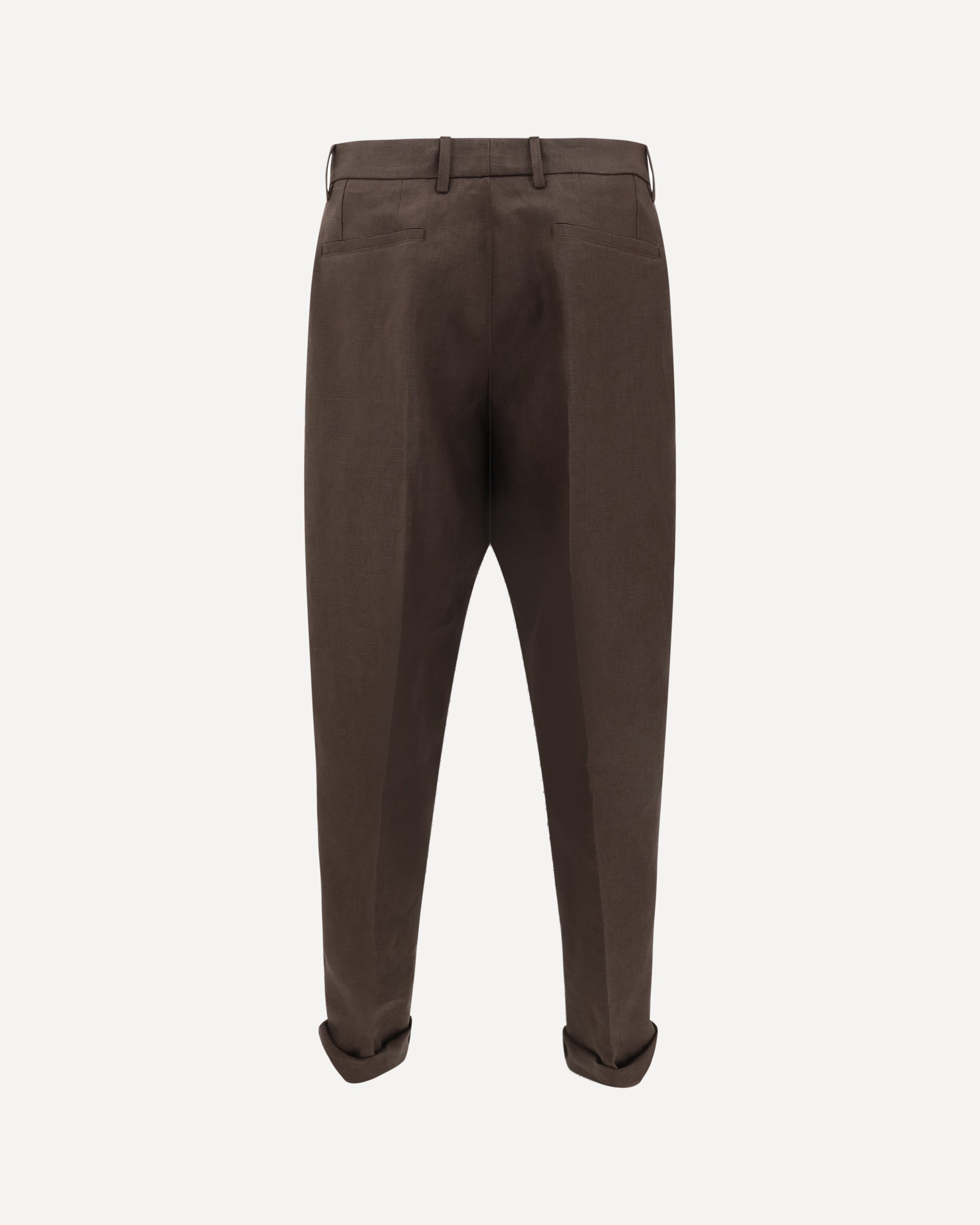 Dolce&Gabbana's linen Pants is a garment that combines the sophistication of tailored design with the lightness of linen, ideal for the warmer season. The slightly balloon leg adds a touch of originality and modernity, giving the pants a fluid and comfortable silhouette. The front zipper and button closure ensures a perfect fit, while the two side welt pockets offer practicality without sacrificing aesthetics. The back welt pockets, also stylish, complete the design, while the waistband with belt loops allows you to add a belt to further customize the fit.