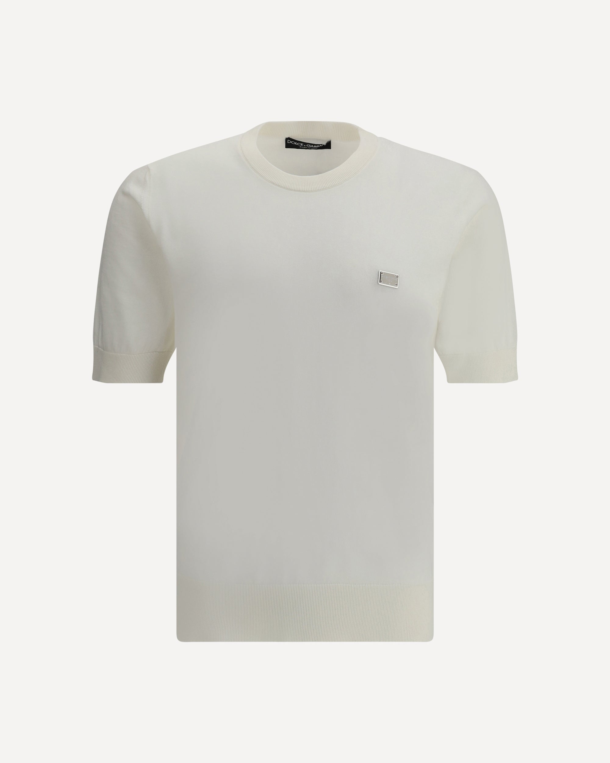 Dolce&Gabbana's cotton T-Shirt features a ribbed crew neck and hem for a comfortable, defined fit. On the front, an engraved hardware detail with the brand's iconic monogram adds a touch of understated luxury. The monochrome pattern makes the garment versatile and easy to mix and match while maintaining a sleek, modern look.