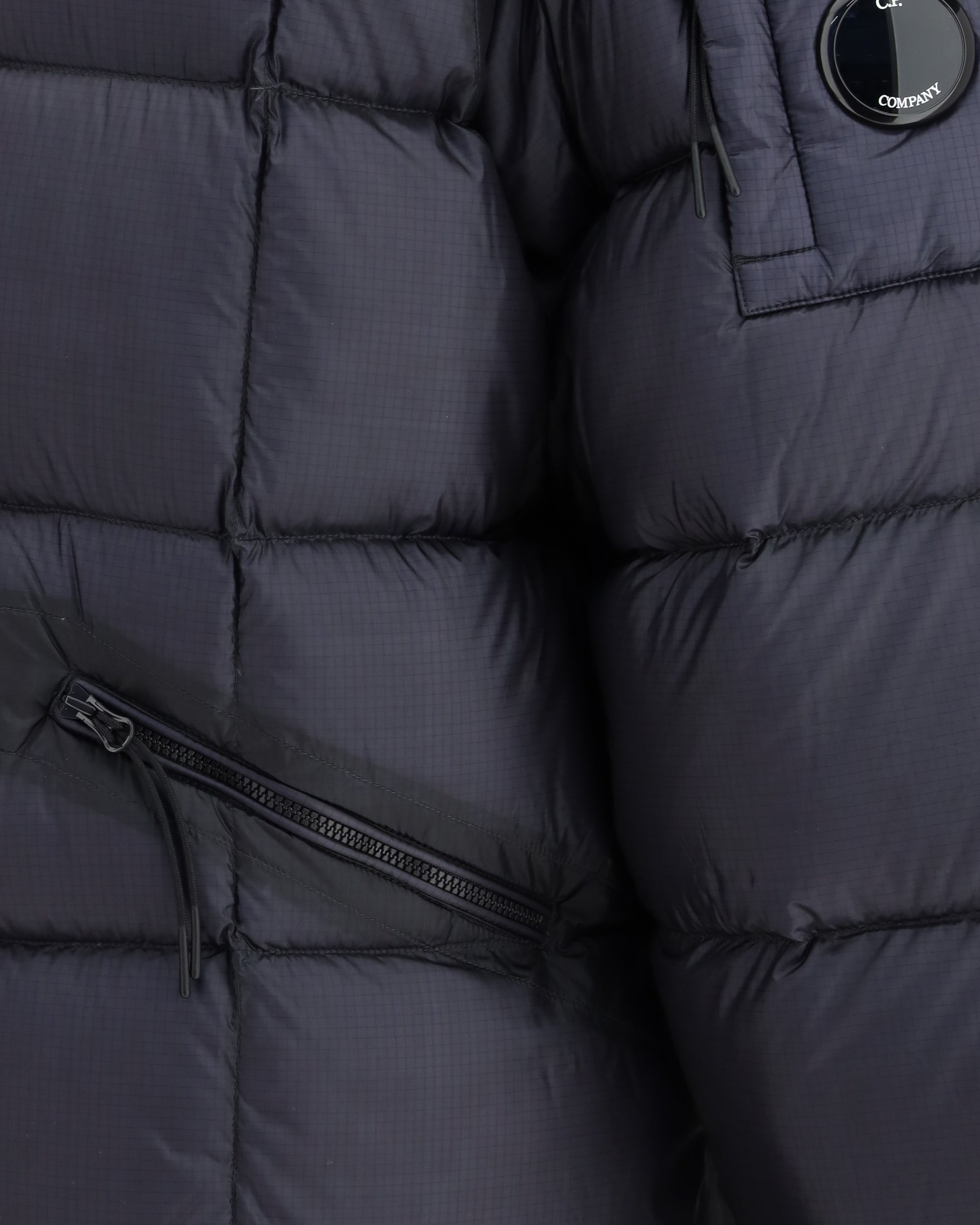 The CP Company hooded Down Jacket perfectly combines elegance and functionality. Created by the renowned Italian brand known for its innovation and contemporary design, it is ideal for facing colder days with both style and comfort. The black hue adds a refined touch, making it easy to pair with any outfit, while the padding ensures warmth and lightness. With the CP Company down jacket, every look gains a modern and sophisticated appeal.