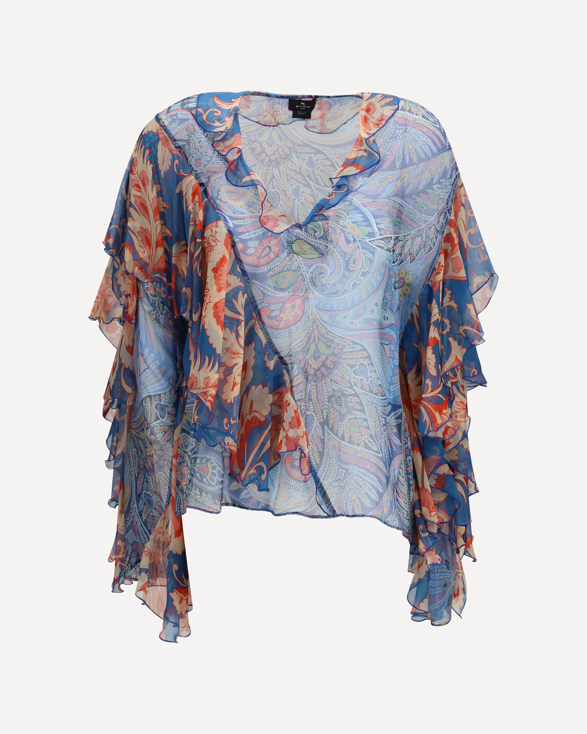 ETROLong-sleeve silk Shirt with ruffles and floral motif