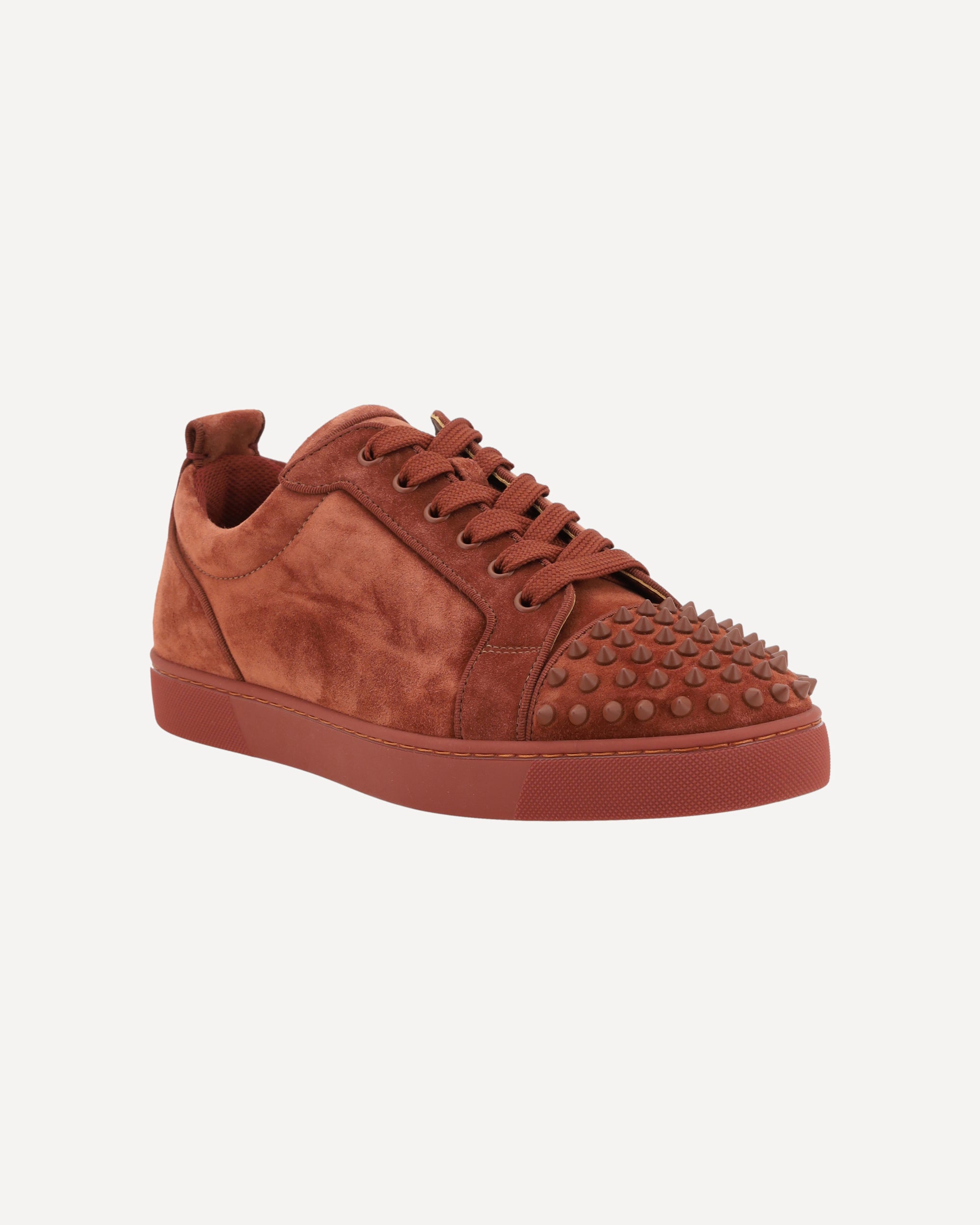 The Louis Junior Spikes Orlato leather Sneakers by Christian Louboutin combine boldness and luxury. The suede design is embellished with tone-on-tone studs on the toe, lending a touch of character and originality. The lace-up front closure and flat sole ensure comfort and practicality, while the round toe offers a comfortable and versatile fit. The branded insole adds a distinctive detail. Perfect for those seeking a casual yet sophisticated look, these sneakers embody the spirit of Christian Louboutin with a rock-chic accent.