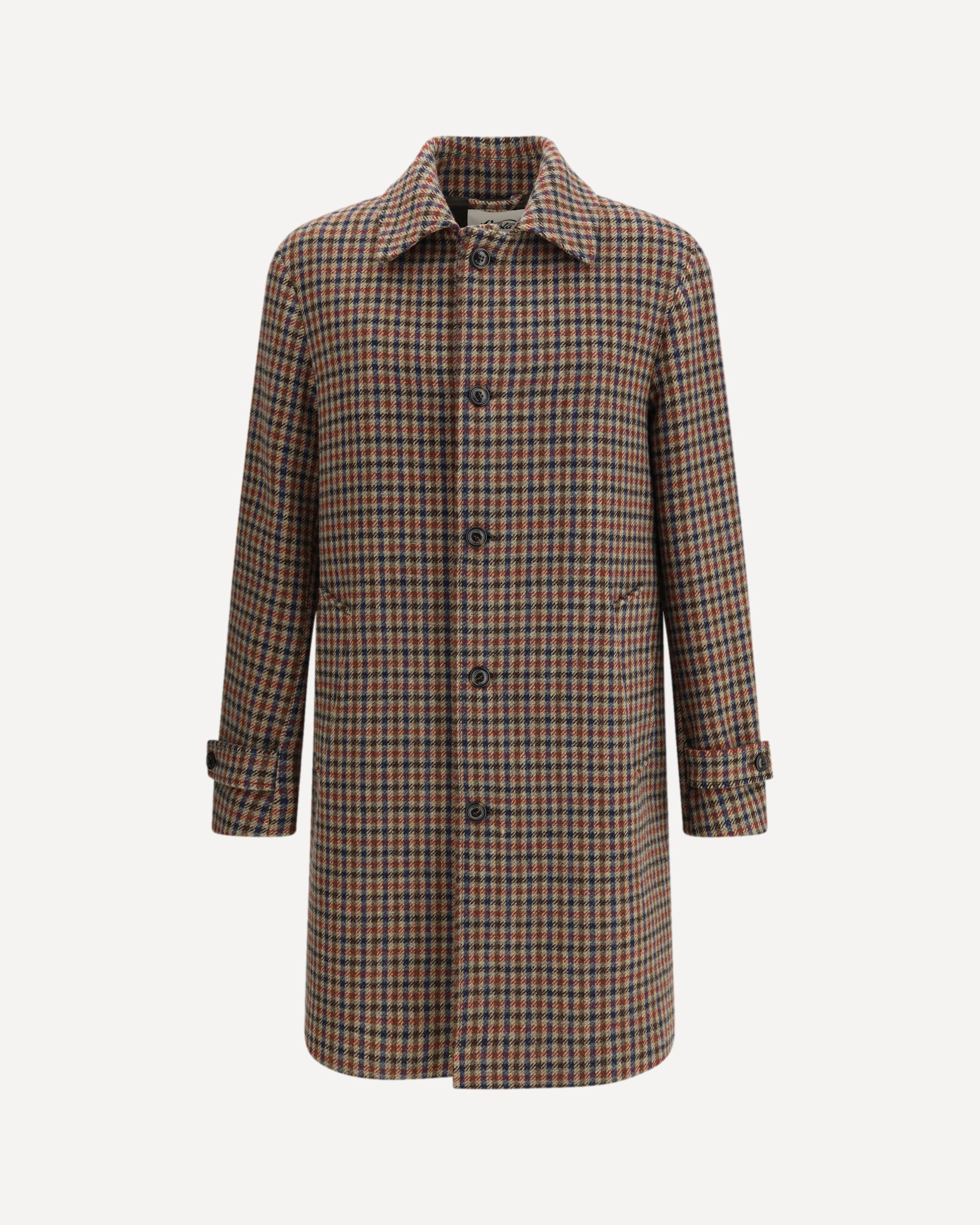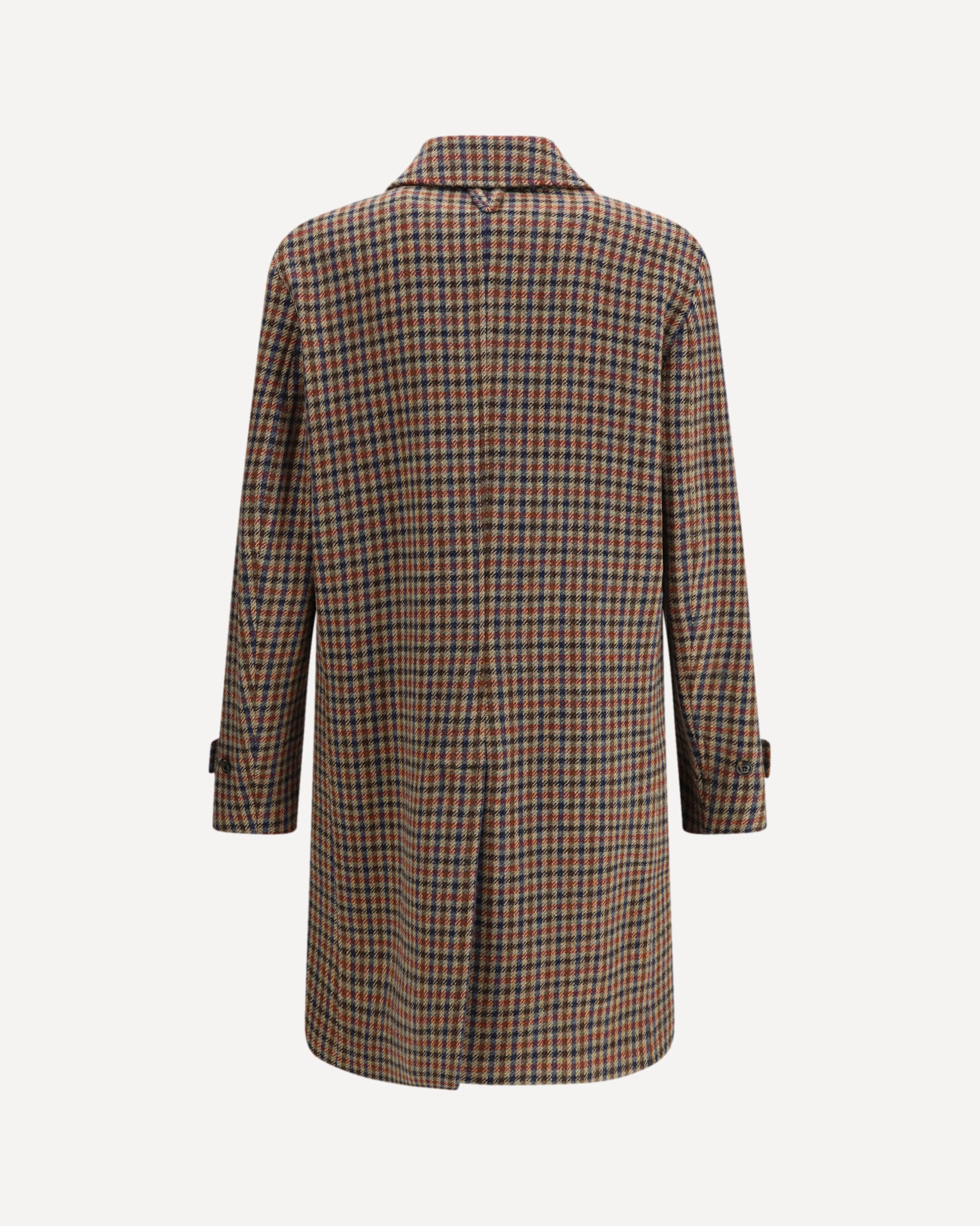 The Marcello Overcoat by Valstar combines elegance and practicality with its classic collar and refined houndstooth pattern. The front button closure lends a touch of style, while the two side welt flap pockets add functionality without sacrificing aesthetics. With its mid-length and cutaway back, this coat offers a comfortable and sophisticated fit, ideal for a formal or casual-chic look.
