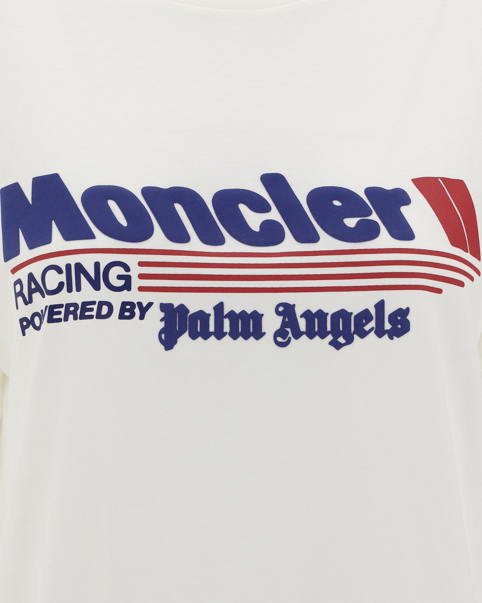 The Moncler x Palm Angels maxi-print T-Shirt is a bold, modern piece designed for those who love a luxe streetwear look. The ribbed crew neck offers a comfortable and defined fit, while the maxi print with the brands iconic monograms printed in contrast on the front creates a strong and recognizable visual impact.