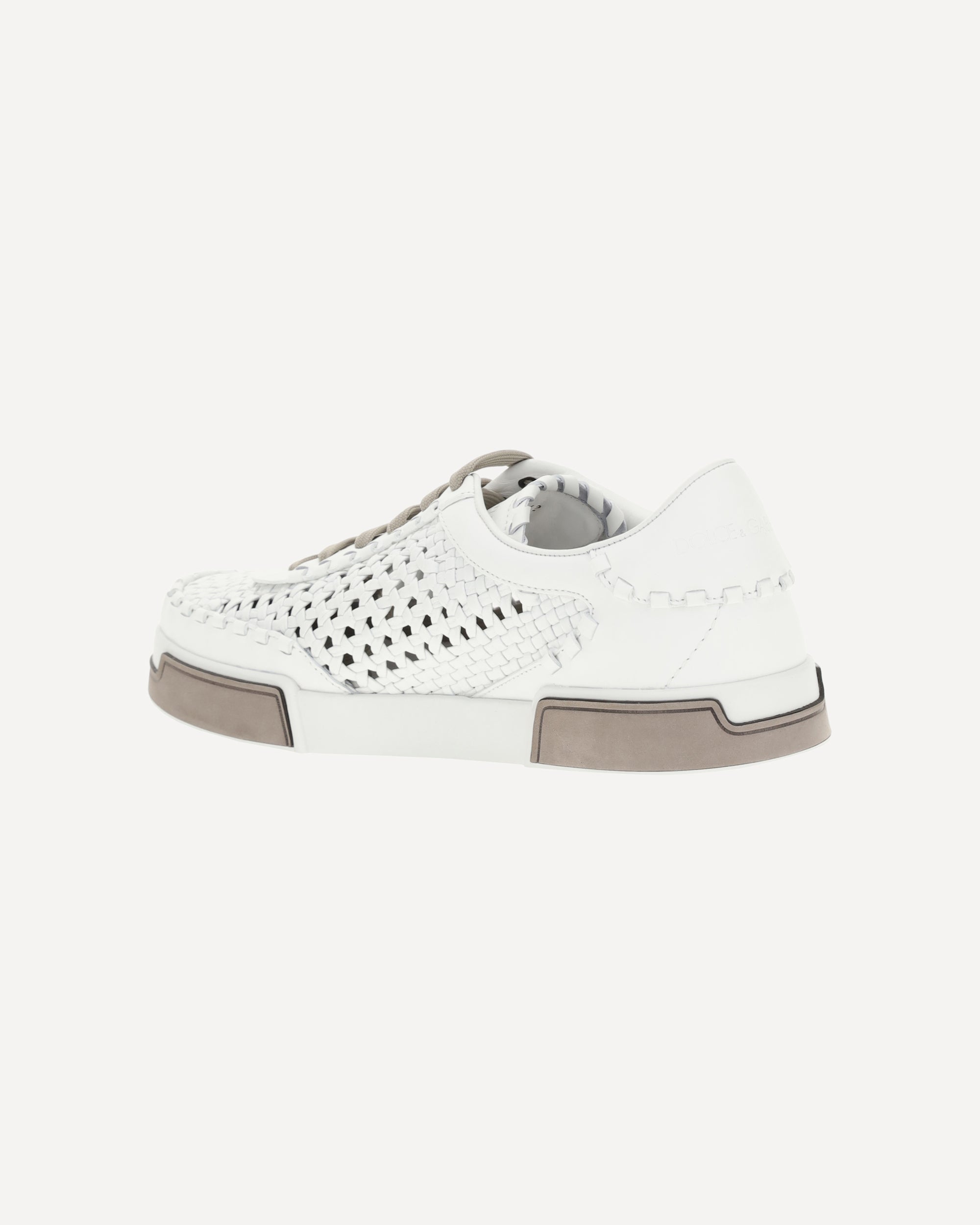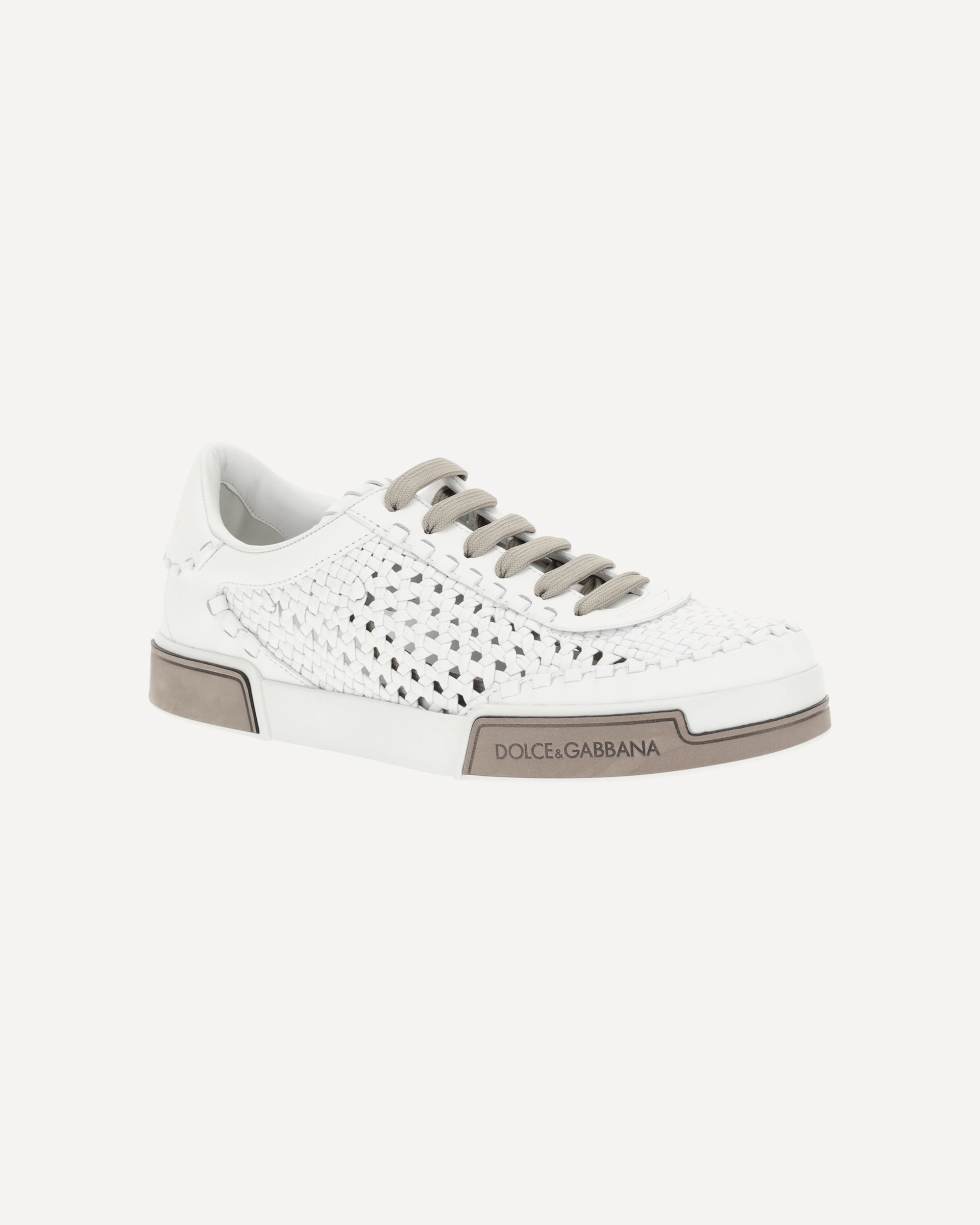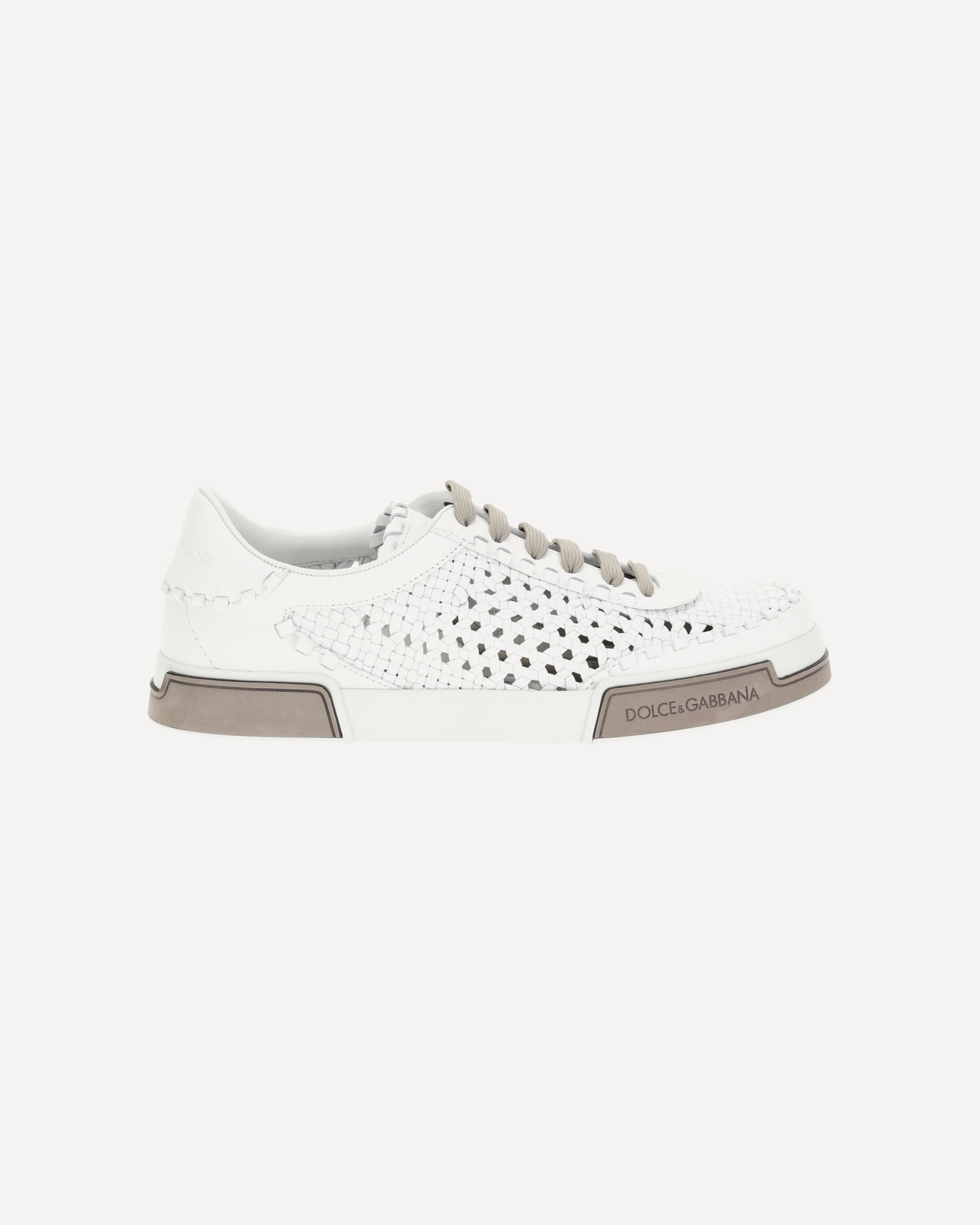 Dolce&Gabbana's Mesh Panel Sneakers offer a modern, dynamic design featuring a lace-up front and woven panels that add a distinctive touch. The flat rubber sole, with the logo imprinted on the bottom, provides comfort and stability. The round toe completes the casual and sporty look, making these sneakers ideal for an everyday outfit with style.