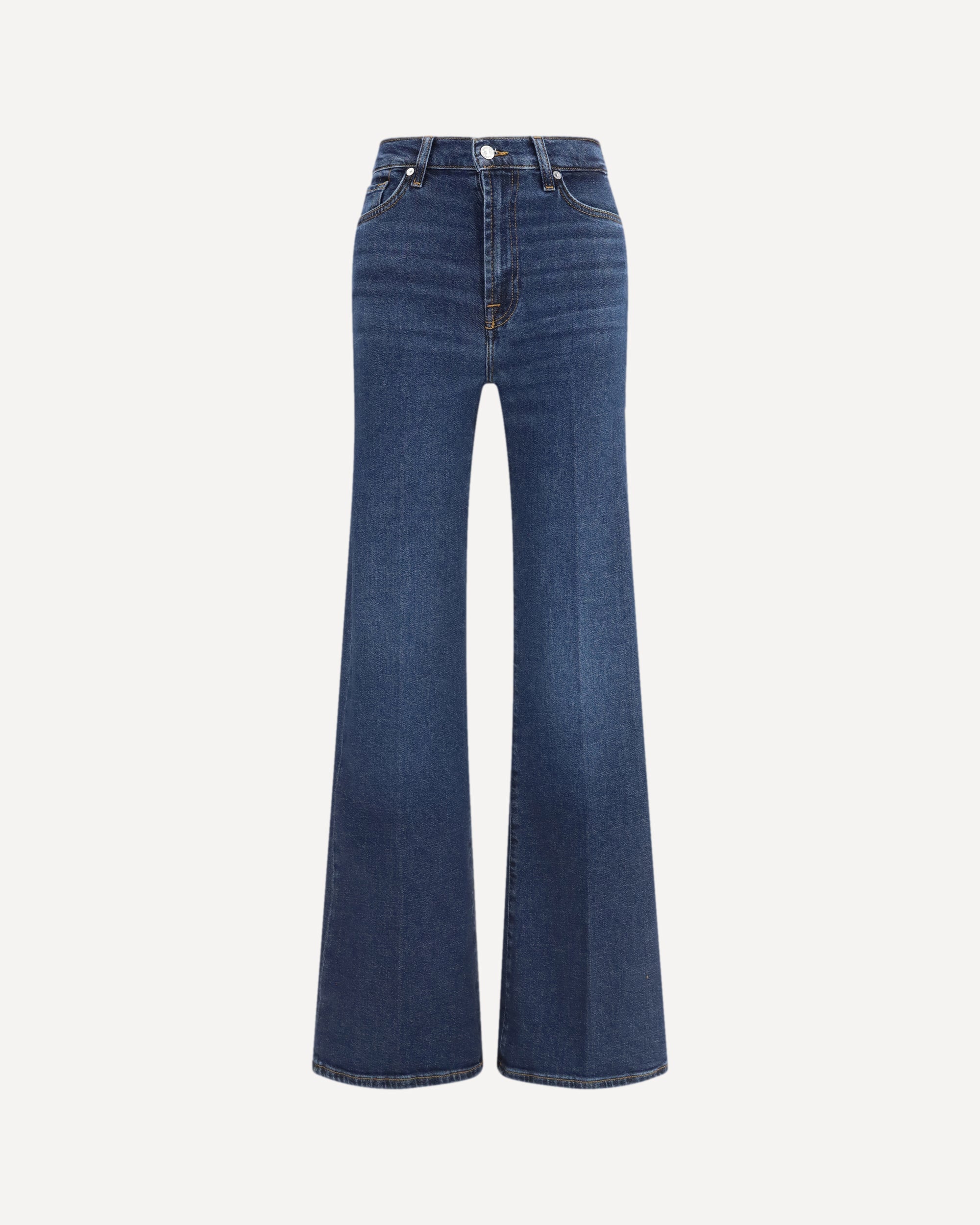 The Modern Dojo Jeans by 7 For All Mankind revive the brand’s early-2000s flare icon through a modern, elevated lens. The high-rise waist elongates the silhouette, while the wide, flared leg moves with a graceful fluidity, enhanced by the sculpting and flexible Slim Illusion denim. The deep rinse and signature embroidered pockets lend a refined, unmistakable character, making this style a true essential in a contemporary wardrobe. Crafted from premium-quality fabrics, these jeans offer a polished take on everyday dressing while maintaining the effortless allure of a timeless classic.