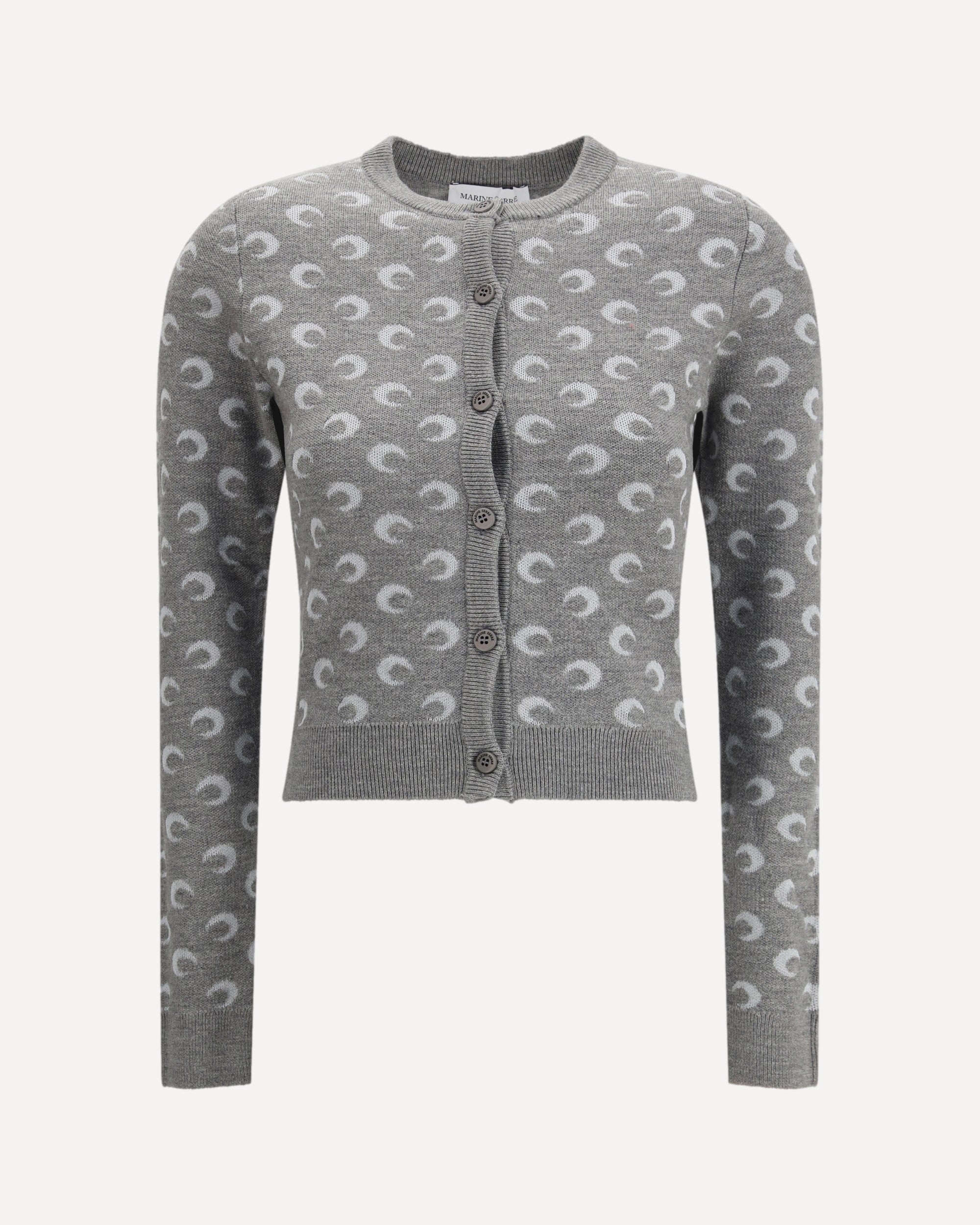 The Moon Wool Cardigan By Marine Serre brings the brand’s iconic universe to life through a clean, modern silhouette. The straight cut lends effortless structure, while the button-up closure adds a subtle classic note that contrasts beautifully with the contemporary Moon print. Long sleeves and ribbed trims offer a soft, grounding finish, creating a piece that blends comfort, precision and the unmistakable signature of Marine Serre.