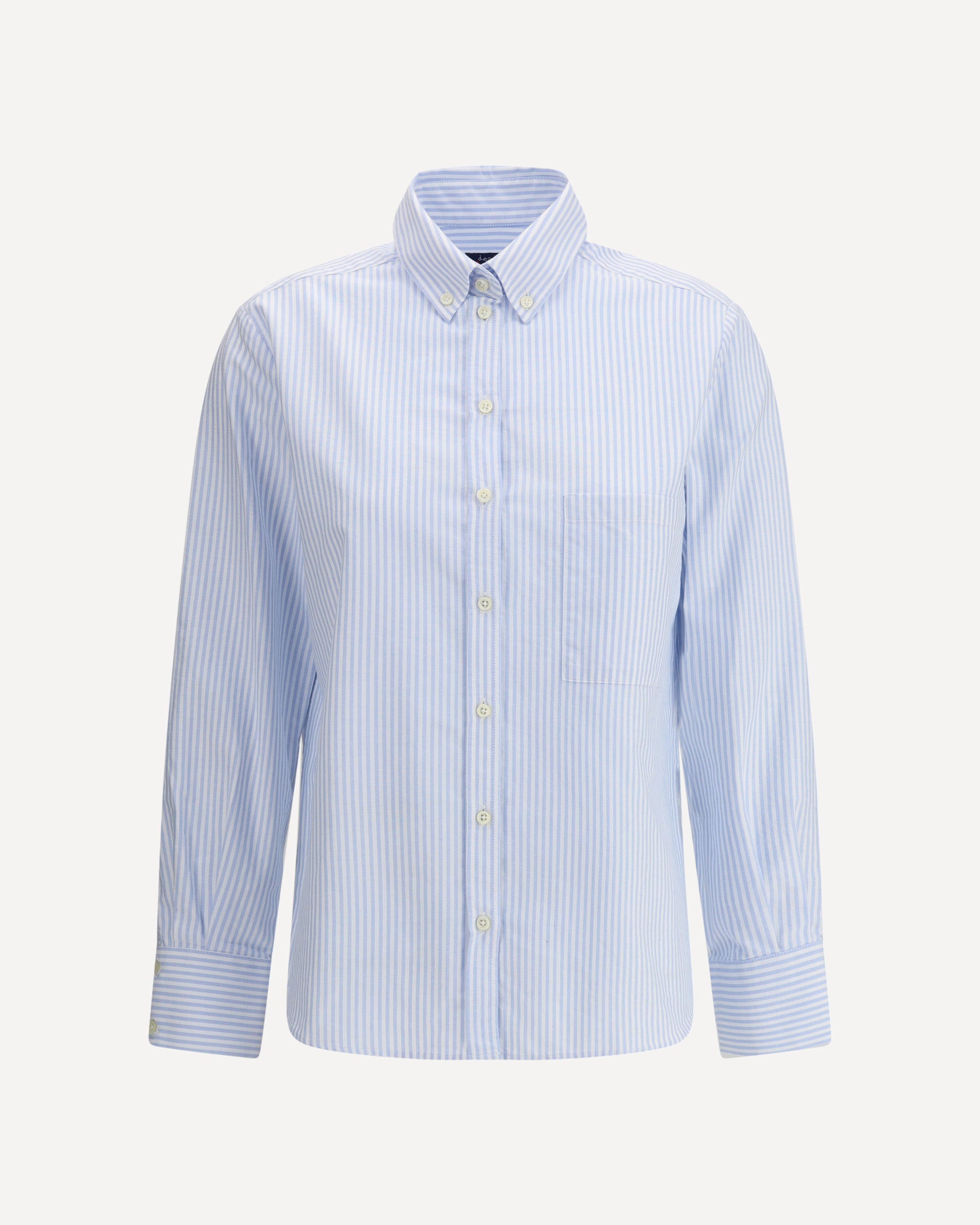 Deperlu's cotton Oxford Shirt is a versatile and sophisticated garment made of high-quality cotton to provide comfort and freshness. The classic collar lends a touch of elegance, while the front button closure makes the shirt practical and easy to wear. The appliquéd welt pocket on the front adds a functional and stylish element, while the adjustable button cuffs allow you to adjust the fit. The striped pattern gives the garment a dynamic and modern look, making it perfect for a formal or casual-chic look.