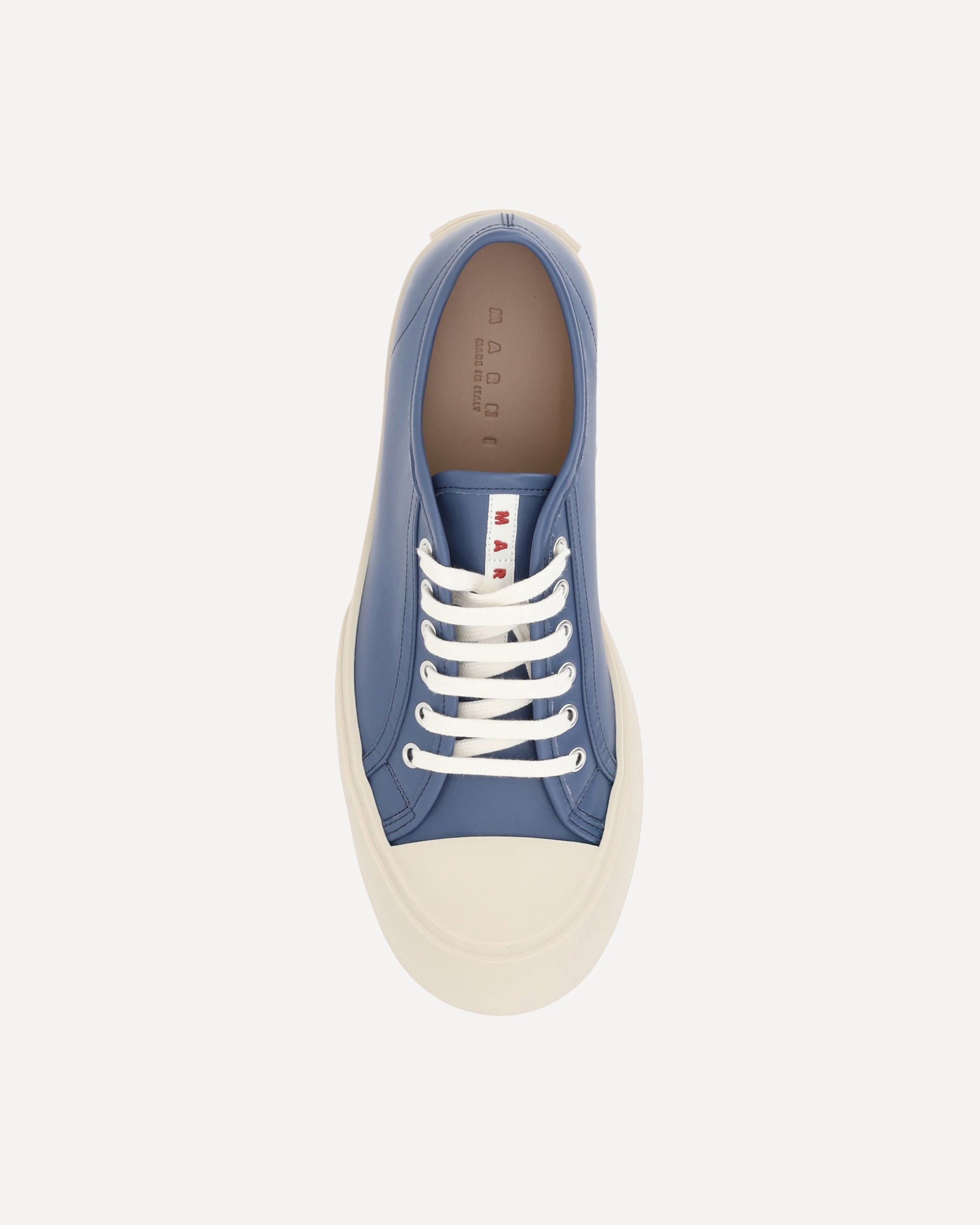 The napa leather Pablo Sneakers by Marni combine elegance and comfort with a modern twist. Featuring a contrasting embossed logo on the heel and a logo label on the tongue, these shoes stand out for unique details. The round toe is reinforced and the closure is with contrasting laces, while the oversized sole adds a bold touch to the design. The insole also features the pressure-printed logo, making these sneakers a perfect example of contemporary and functional style.
