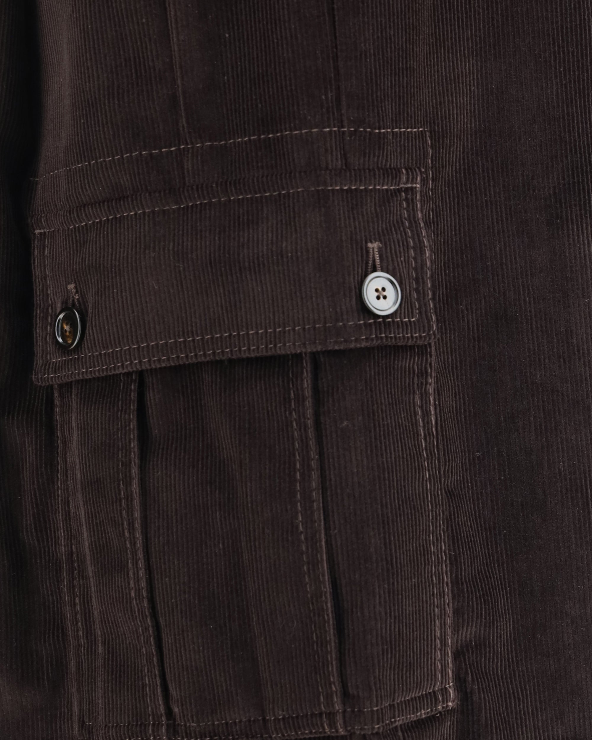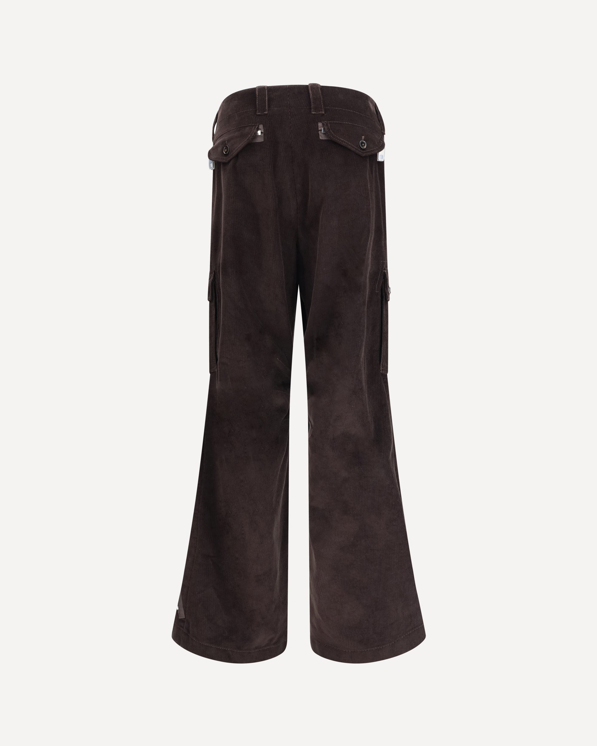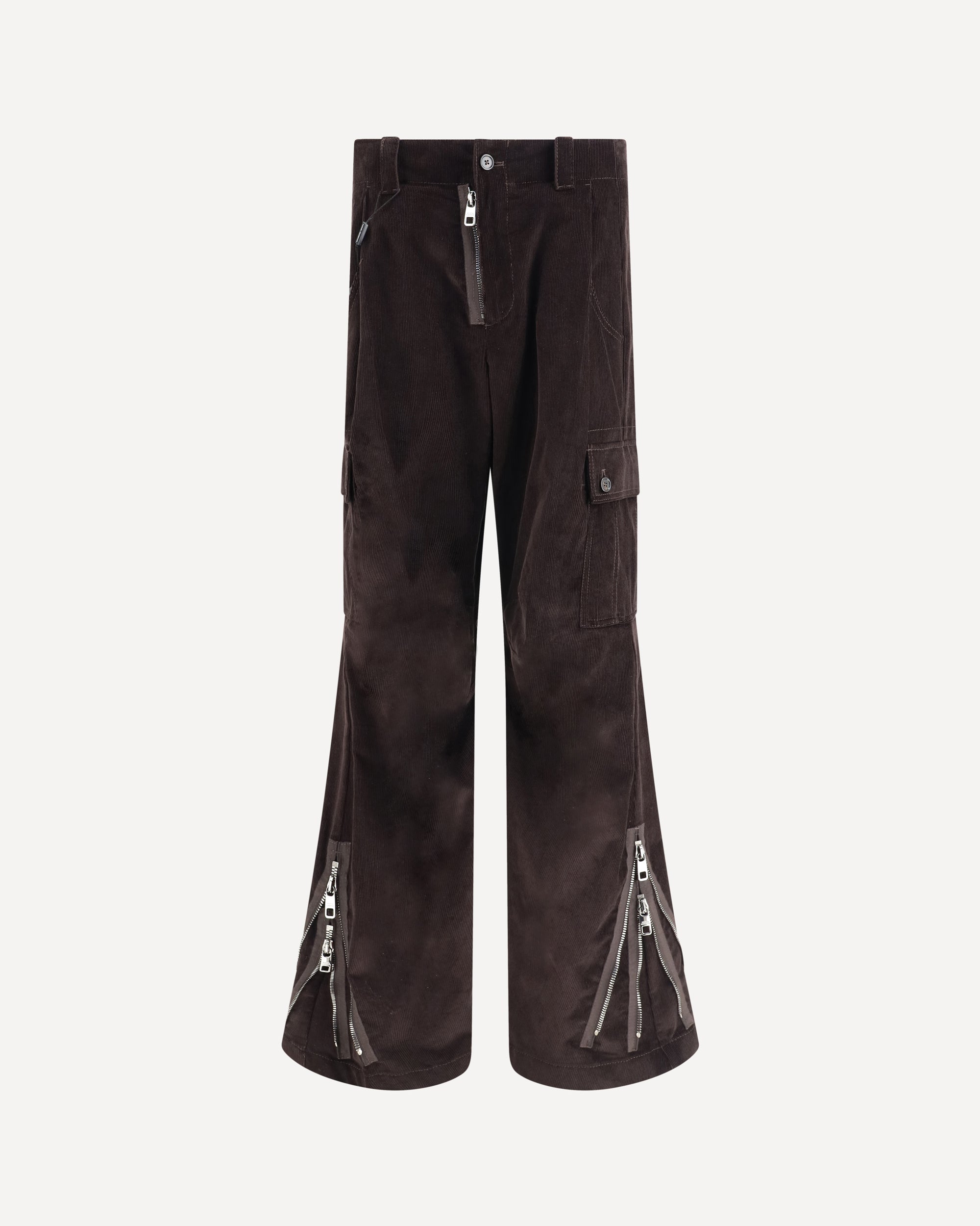 The Corduroy cargo Pants combine practicality and style in a design with a modern edge. The timeless, tactile texture of corduroy brings depth and character, while the utility-inspired structure enhances their urban attitude. A bold exposed zip closure defines the front, complemented by side pockets with buttoned flaps for added versatility. Distinctive double zips at the hem on both legs allow for adjustable fit and a dynamic play of proportions. A perfect piece to interpret casualwear with a refined, contemporary twist.