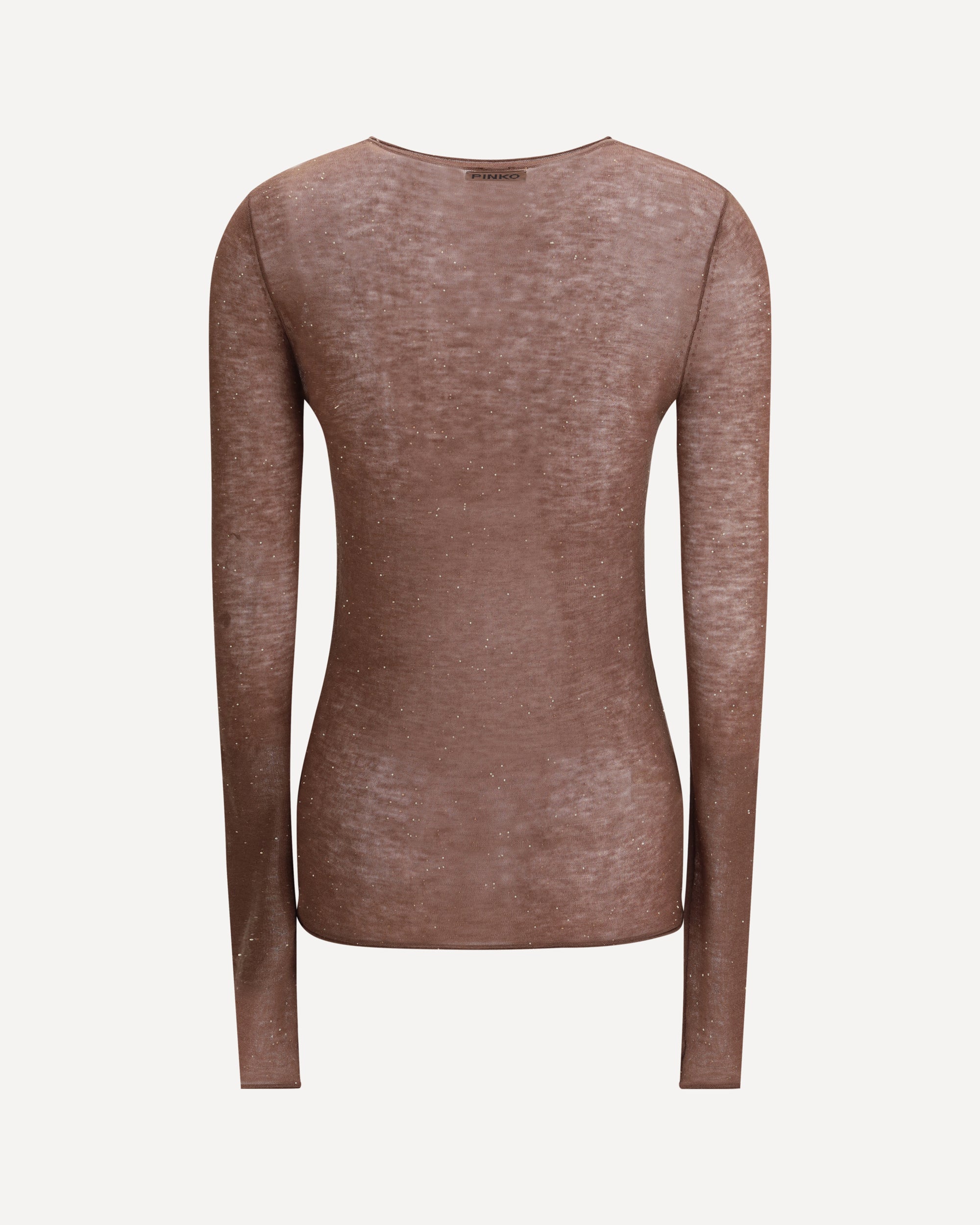 The Micropaillette Sweater by Pinko is a fitted garment with a semi-transparent design that adds a touch of understated luminosity. The simple crew neck balances the shimmering effect of the micropaillettes, creating an elegant and contemporary look, perfect for special evenings or to add character to a casual outfit.