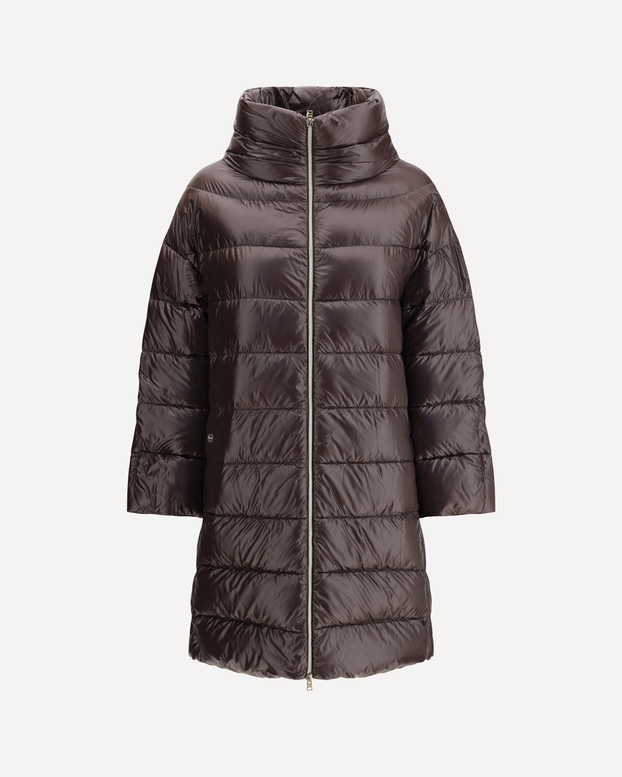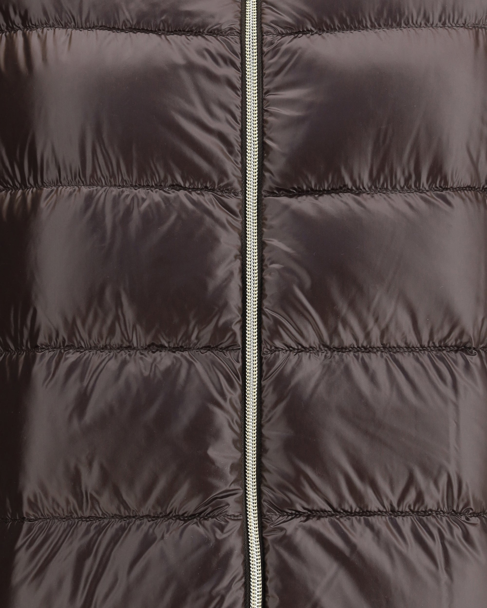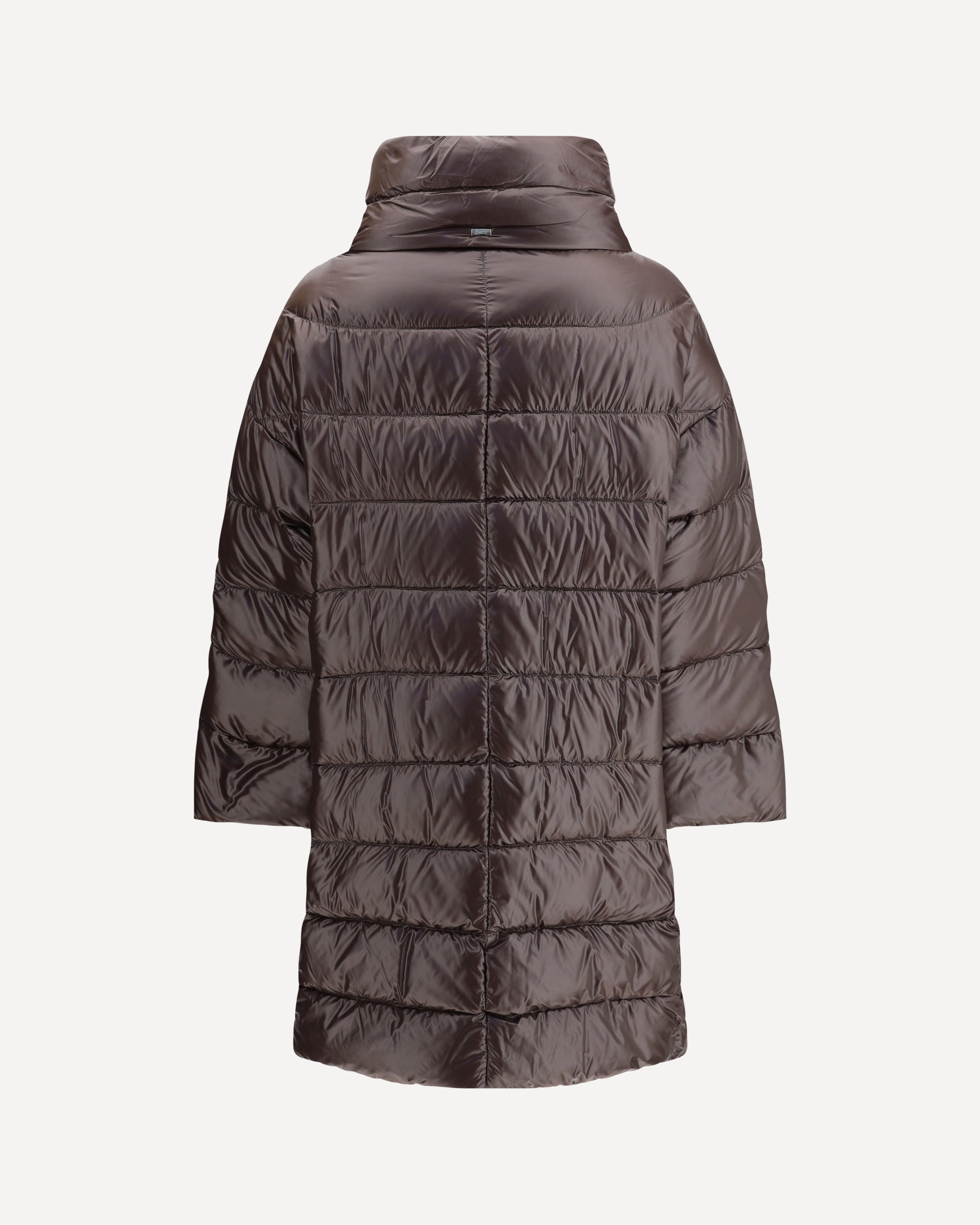 The Midi Down Jacket by Herno is a stylish and functional outerwear designed to face the cold months in style. Featuring a midi model with a high collar and front closure with a double-slider zipper, it provides protection and practicality. The all-over quilted and padded design, combined with the monochrome pattern, gives a clean and sophisticated aesthetic. Two side welt pockets and a loose fit complete the garment, ideal for snug comfort without sacrificing elegance.