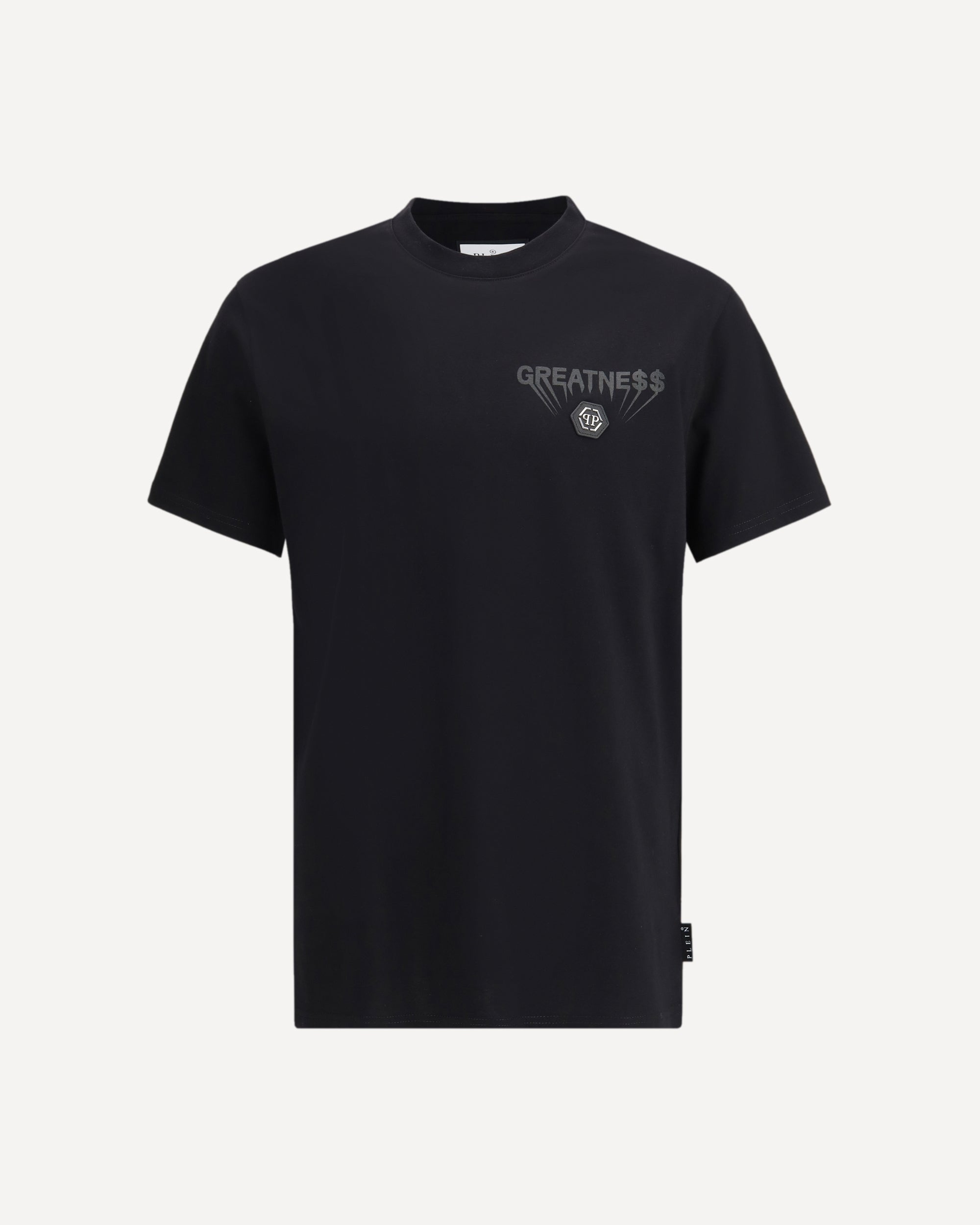 The crew-neck T-shirt by Philipp Plein is crafted from soft cotton, featuring a clean yet distinctive design. The piece is embellished with the brand emblem and the “Grateness” inscription embroidered on the upper left chest. Short sleeves and a regular fit complete the look with a bold, modern touch.