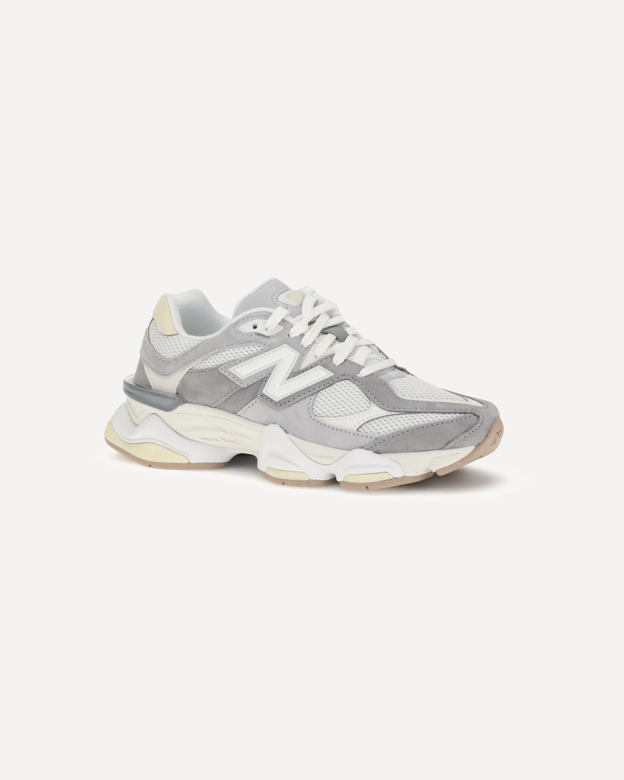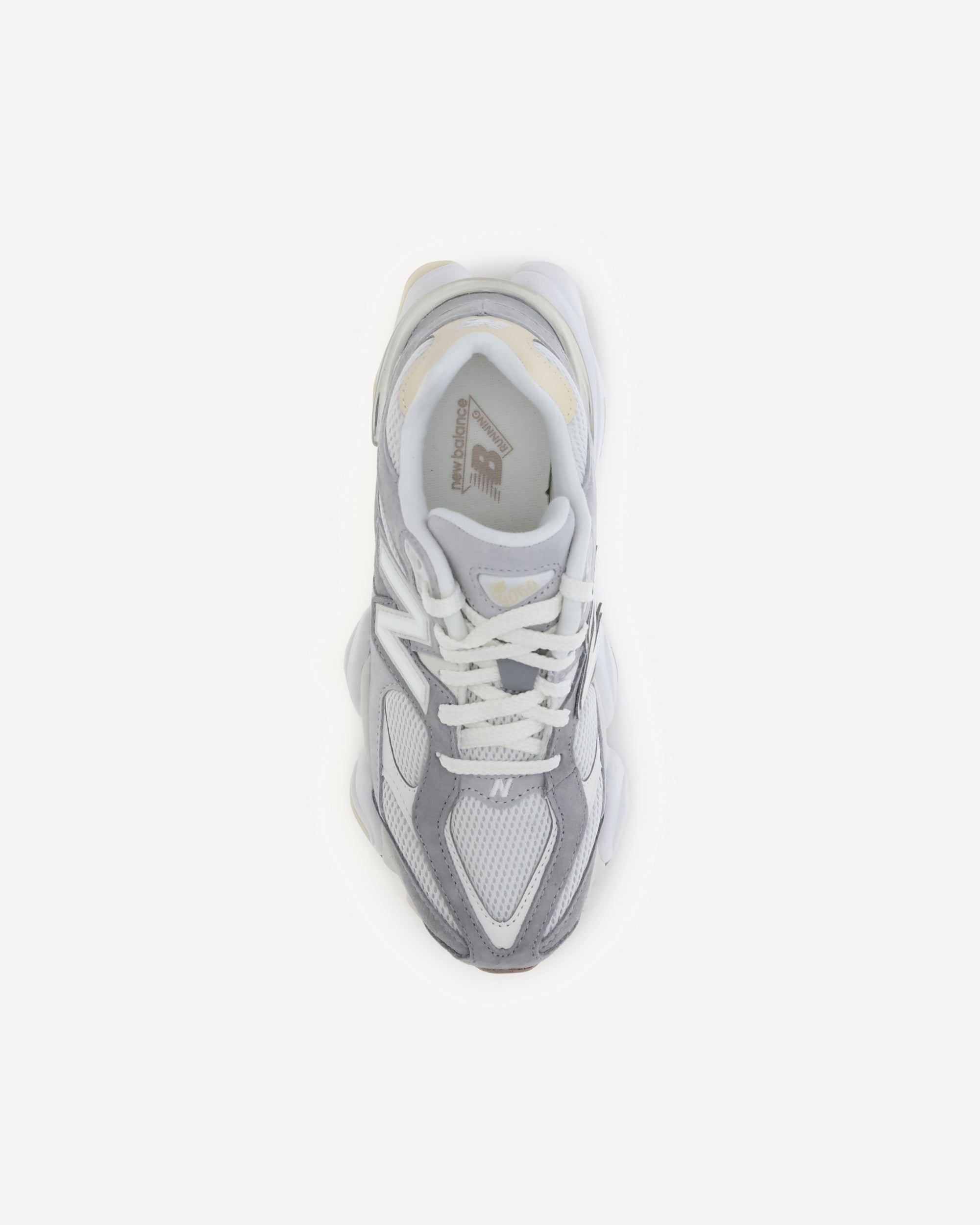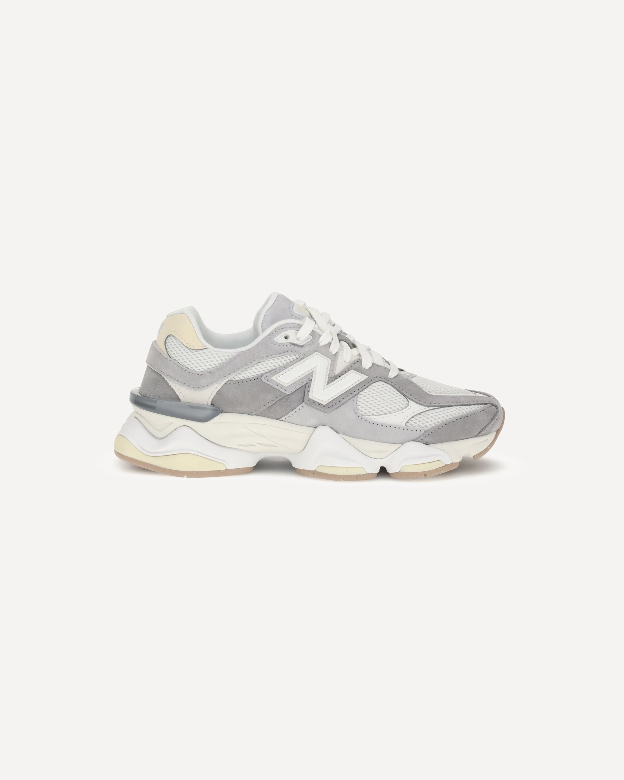 New Balance's 9060 Sneakers combine contemporary style and comfort. The mesh upper with suede details ensures breathability and durability. The lace-up front closure ensures a stable fit, while the extended toe box gives a dynamic look. Raised, reinforced rubber outsole provides cushioning and support. The iconic contrasting monogram on the side panels and the branded front tab complete the design with a distinctive touch.