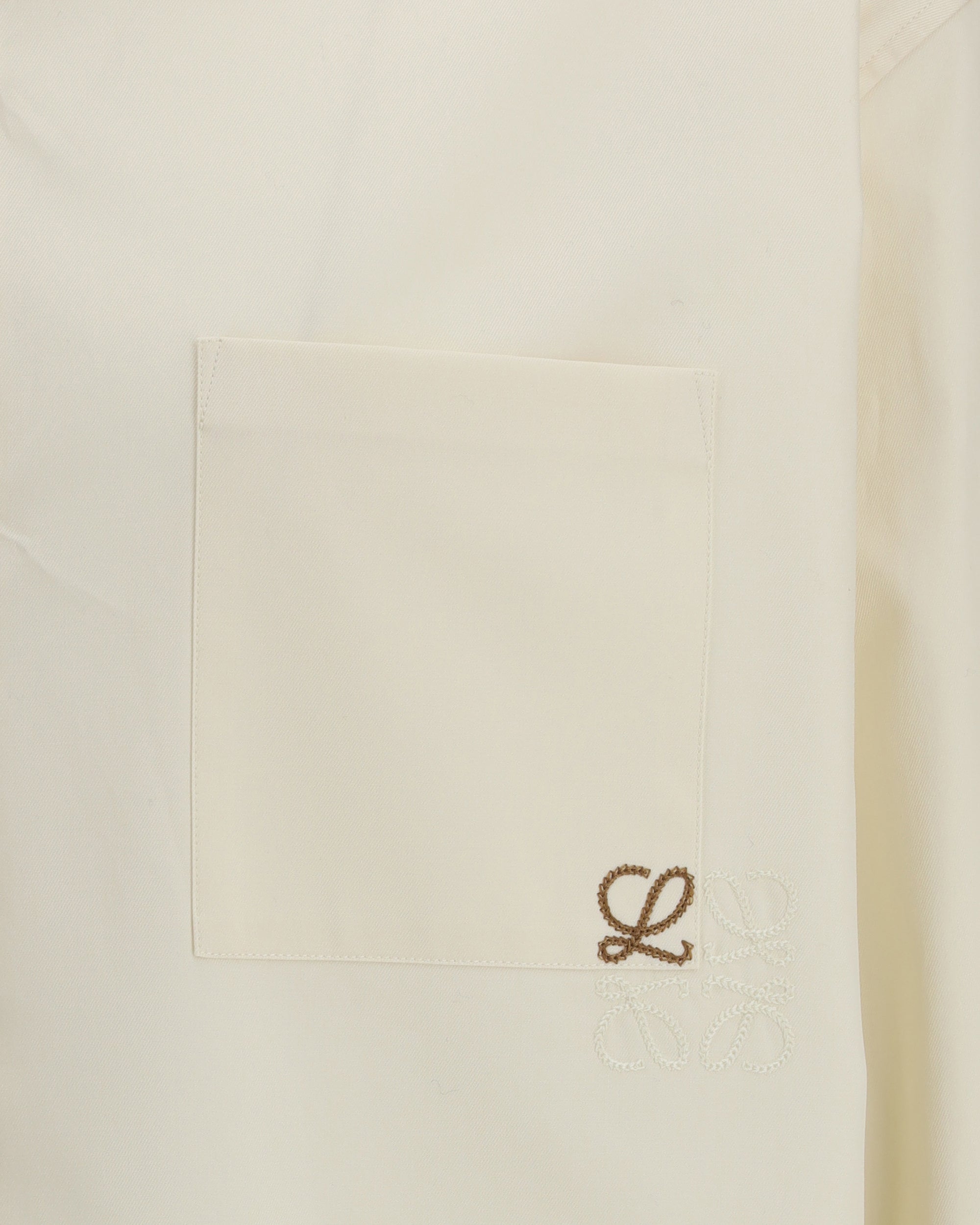 The Cotton Shirt by Loewe is crafted from woven cotton and features long sleeves, a chest pocket adorned with an embroidered Anagram logo, and a front button closure. Its relaxed fit and refined construction make it a timeless wardrobe essential.