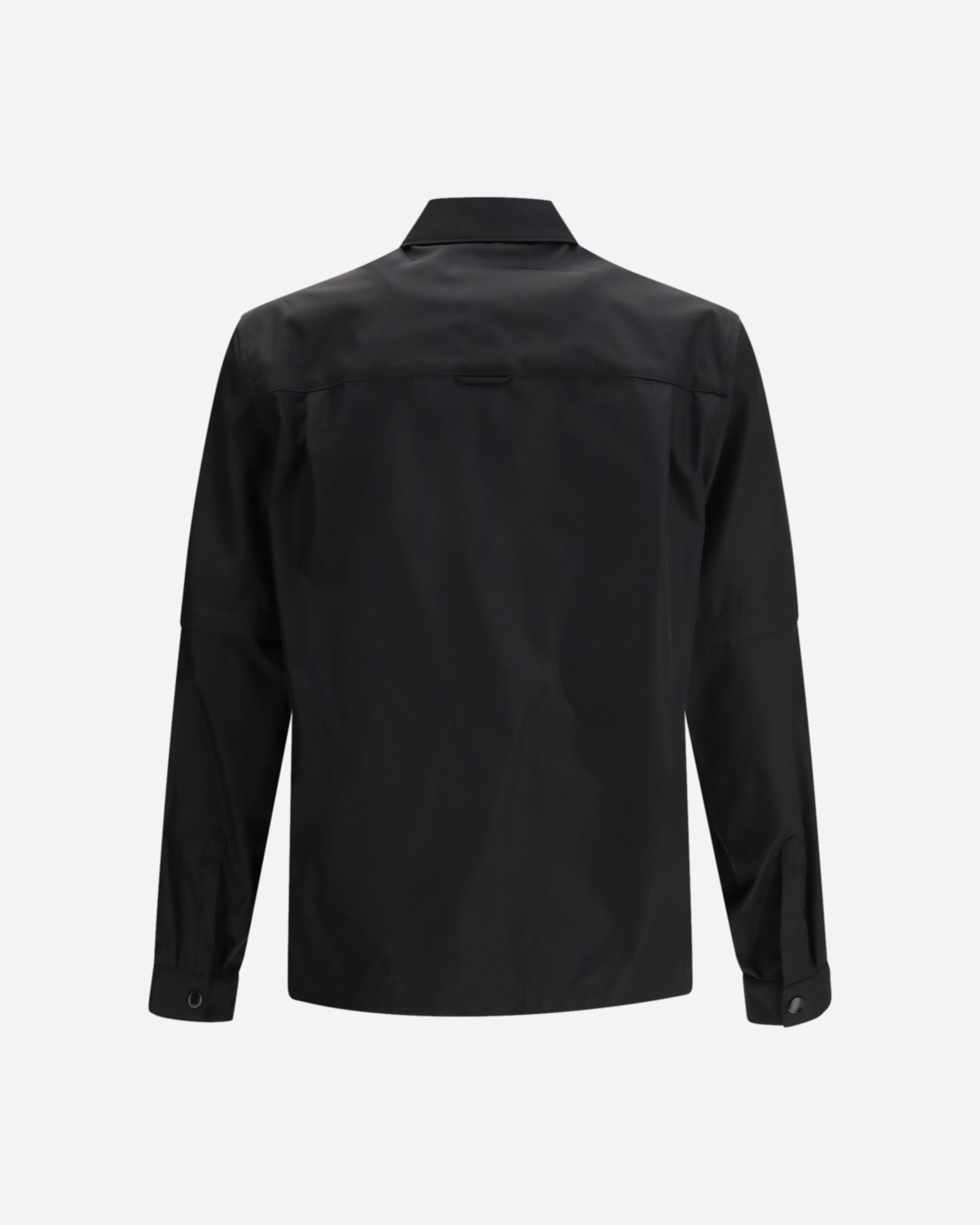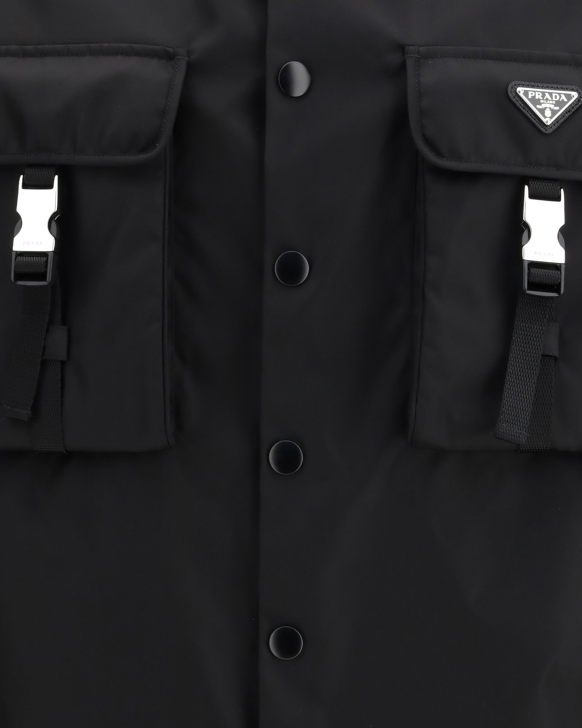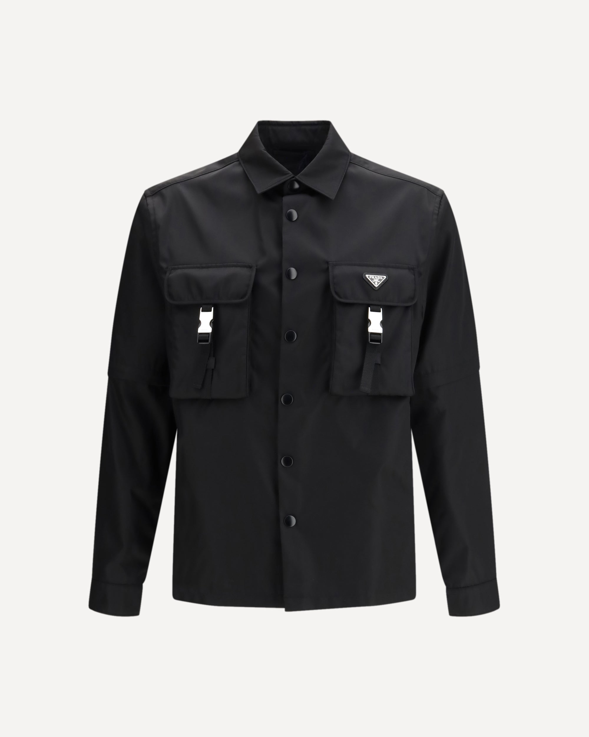 The Re-Nylon Shirt by Prada, defined by an oversized fit and a large patch pocket with strap, is crafted from Re-Nylon: a regenerated nylon yarn (ECONYL®) produced from recycled and purified plastic waste recovered from the ocean, fishing nets, and textile fiber scraps. The design features a classic collar, straight hem, snap cuffs, and a front snap closure, while the iconic enameled metal triangle logo accents the piece with Prada’s unmistakable aesthetic.